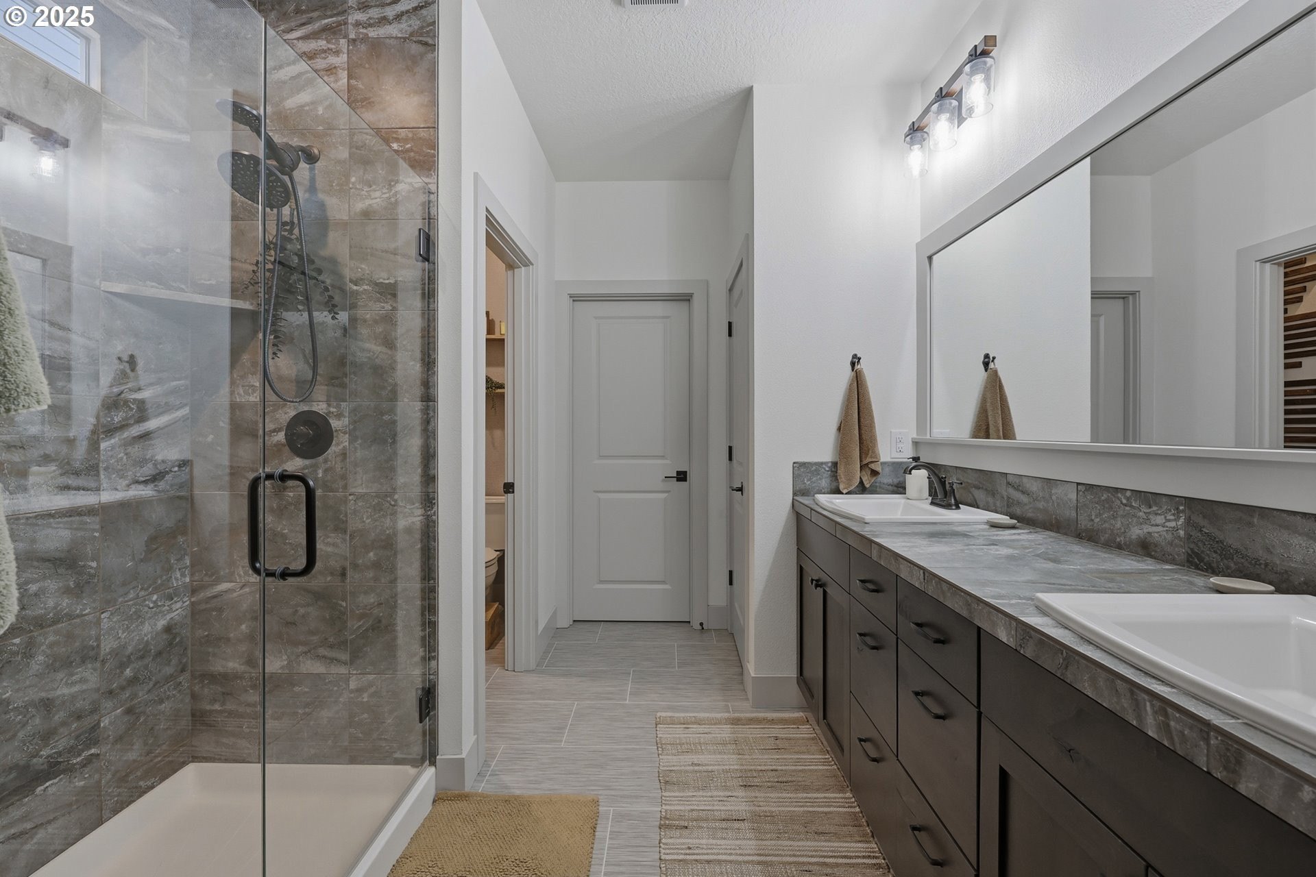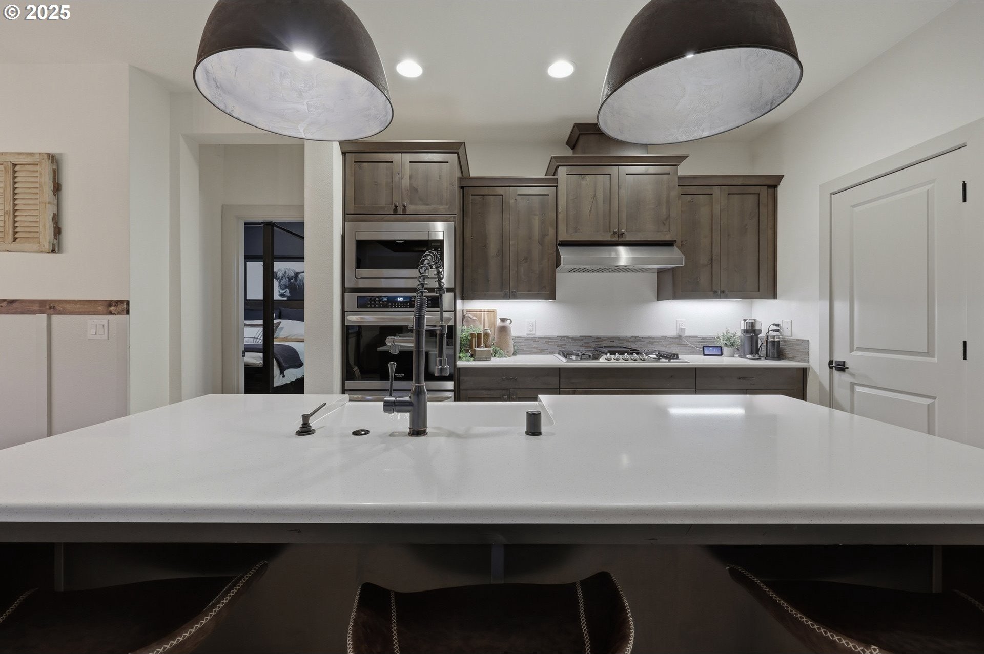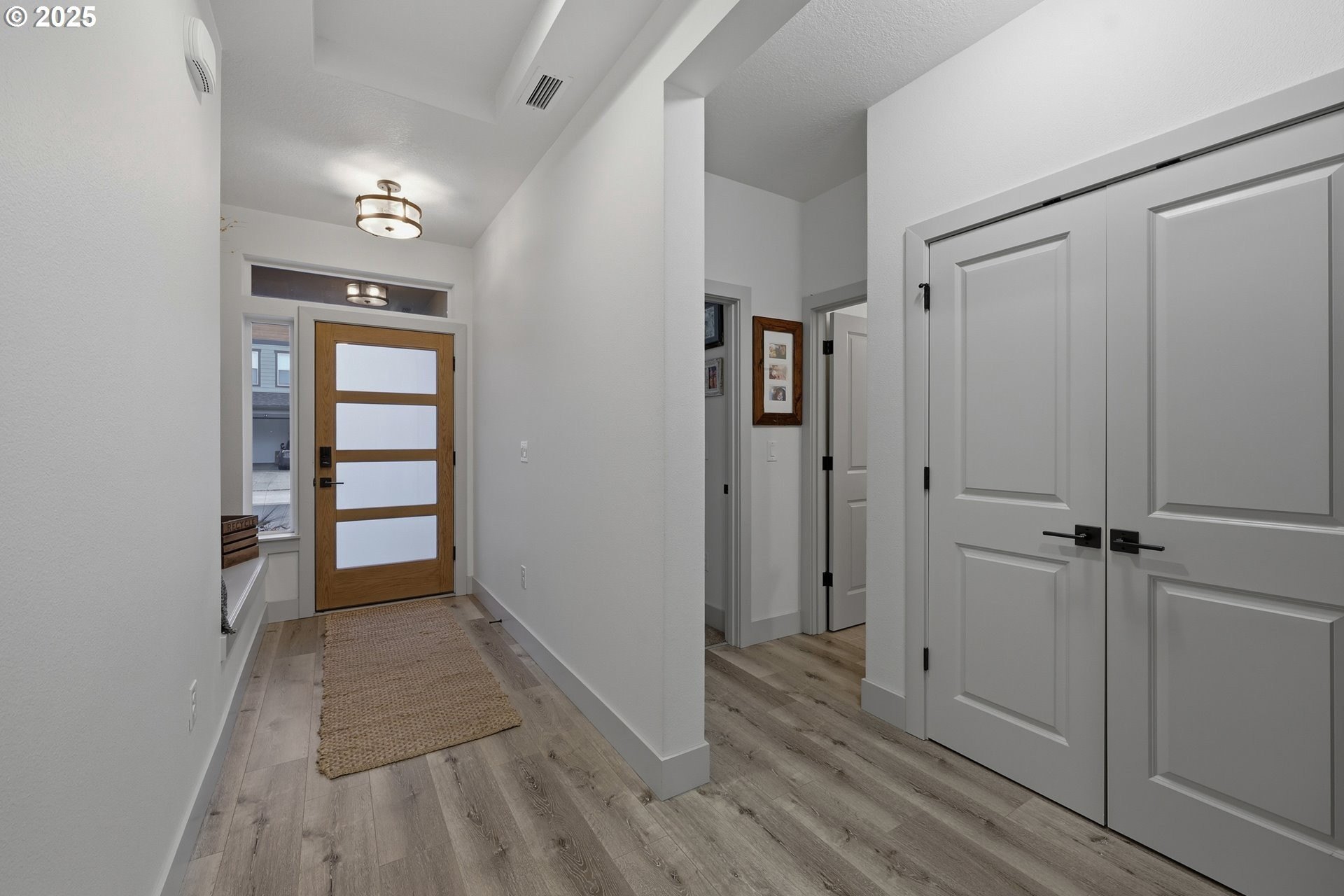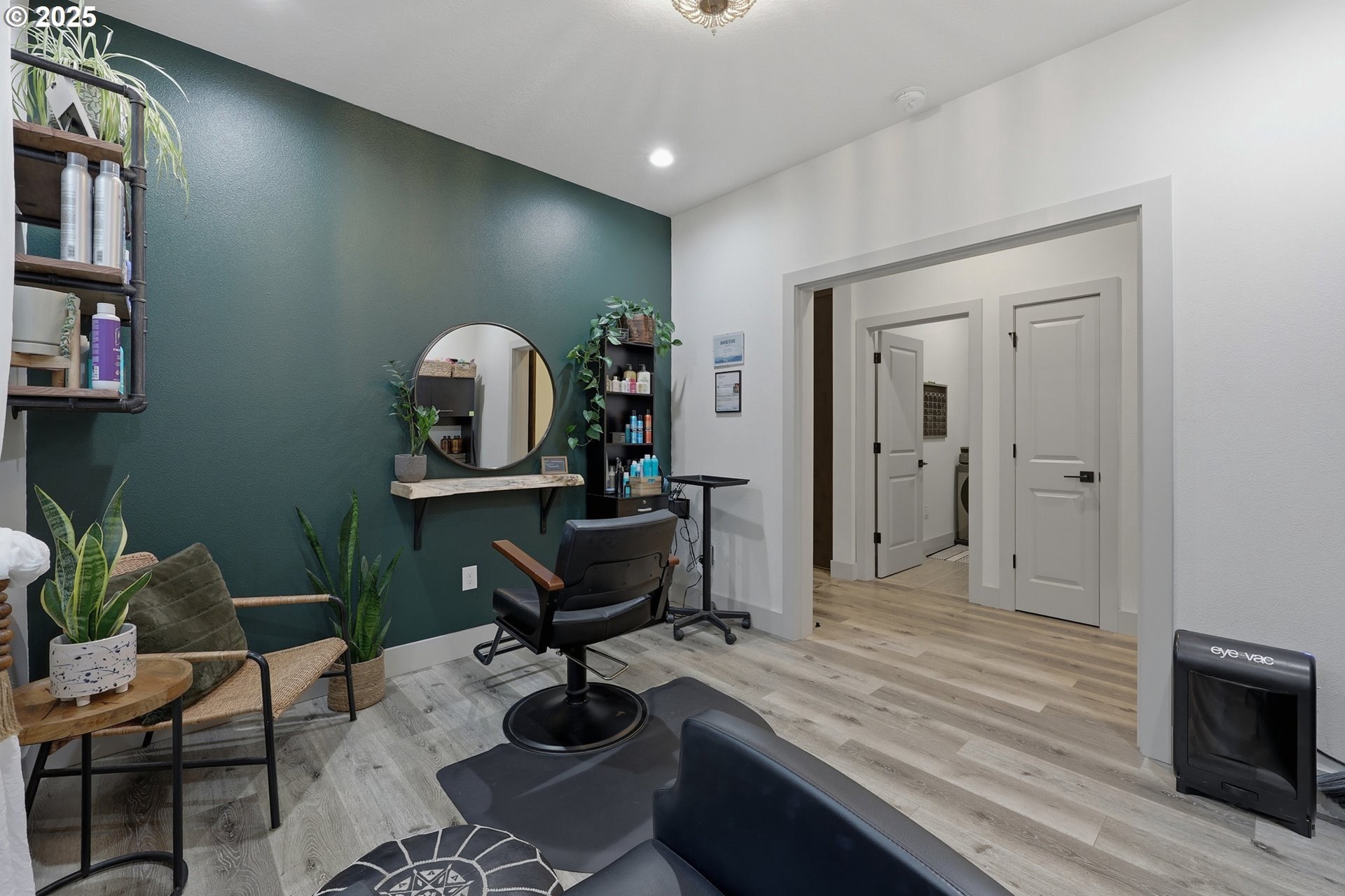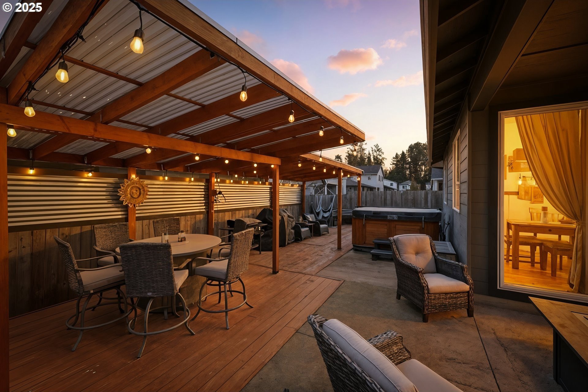 Stunning one-level home that truly stands out from new construction! Every detail has been thoughtfully upgraded, offering luxury, comfort, and functionality throughout. Step inside to an inviting open floor plan featuring custom faux wood beams, barn doors leading to both the den and primary suite, and designer lighting in every room. The chef’s kitchen is a showstopper — complete with double ovens, a 5-burner gas cooktop, farmhouse sink, and elegant quartz countertops — perfect for everyday living or entertaining in style. Relax in the primary suite featuring a water softener system in the shower, and unwind in total comfort thanks to the upgraded high-efficiency HVAC system with variable speed air handler, heat pump, electronic air filter, and in-duct air scrubber air purifier — all controlled by a ComfortLink smart thermostat for ideal climate control year-round. Love to work from home, this home includes a professionally designed salon! Outside, enjoy an extended covered back porch and a private covered deck, perfect for relaxing or hosting gatherings. Additional upgrades include extra power outlets in the backyard and garage, plus 220 power on the back deck — ideal for tools, a hot tub, or future outdoor projects. This home is truly move-in ready and better than new — every upgrade has been done for you!
