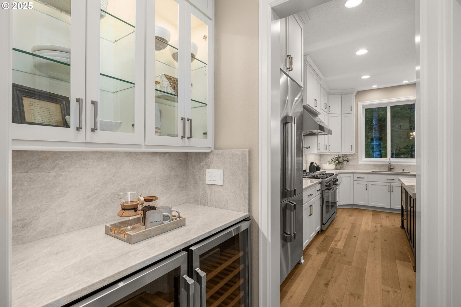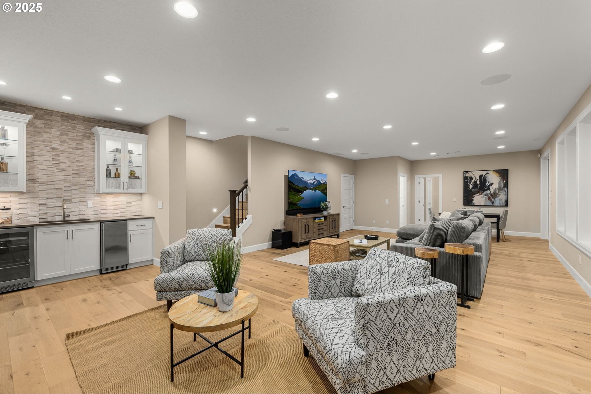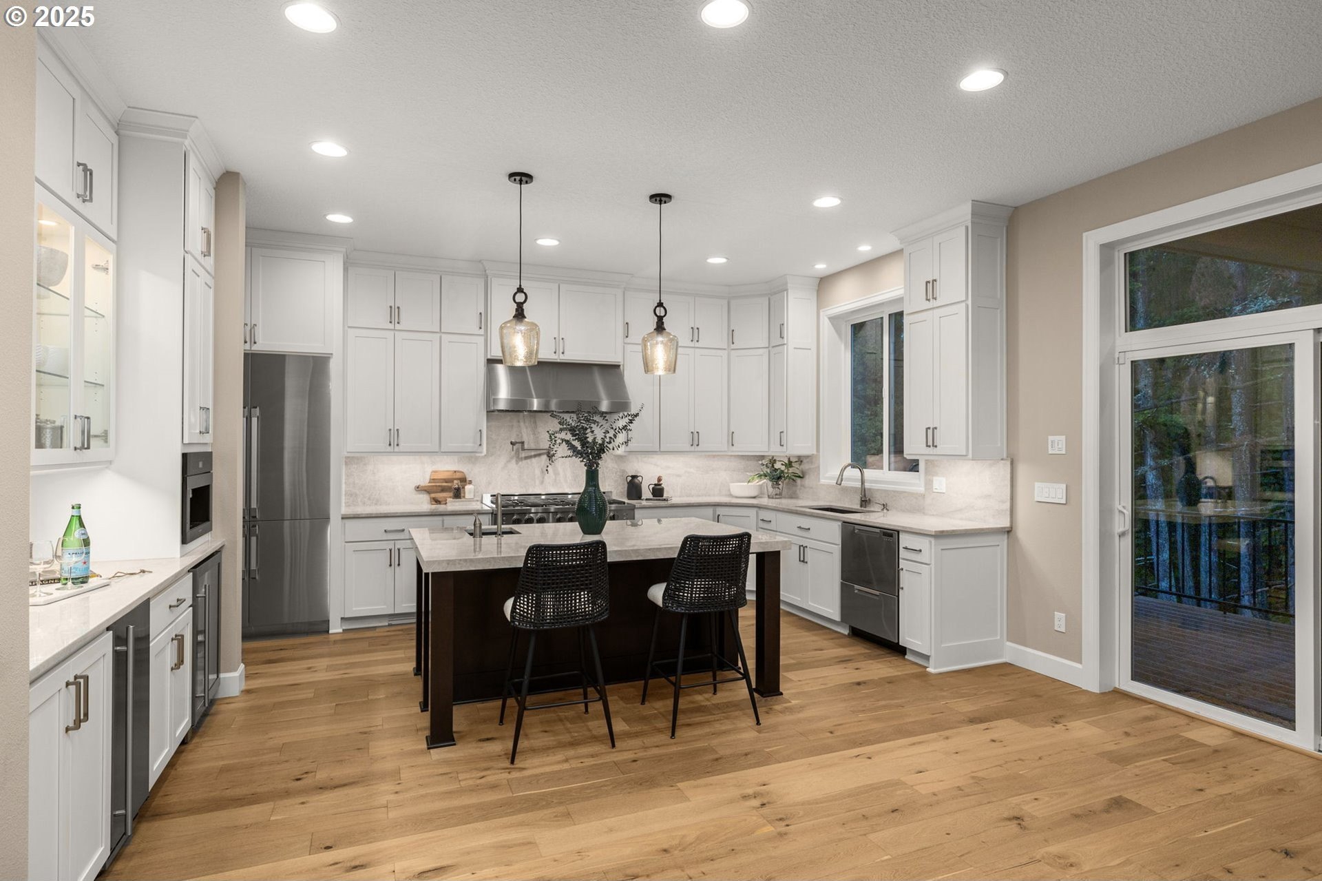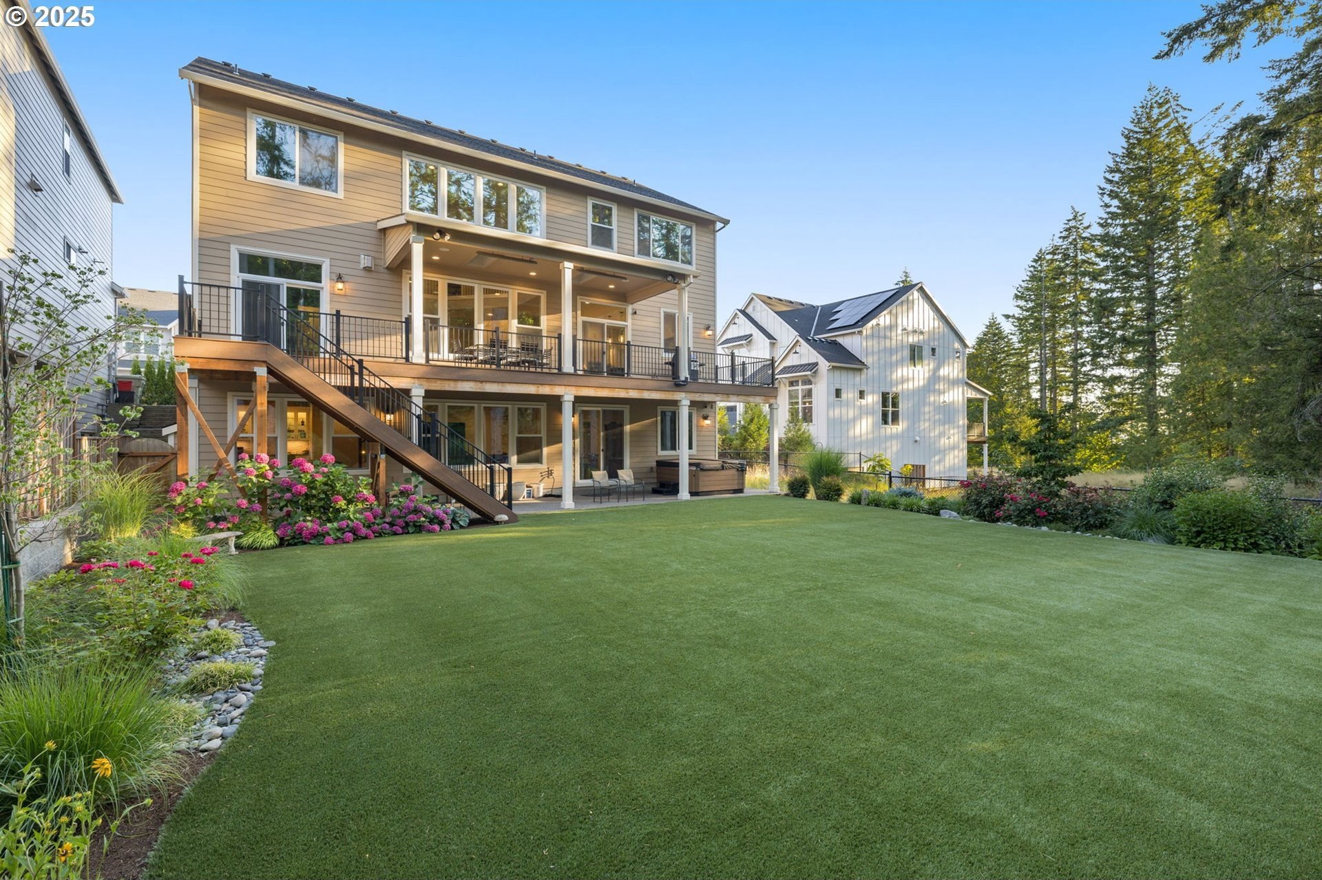 ENJOY A LARGE, LEVEL YARD BACKING TO GREENSPACE! Rare opportunity to own a quality Noyes built home on oversized lot w/ a 3-Car Wide Garage! Privately positioned on a quiet street in NW Bethany/Bonny Slope neighborhoods with TOP RATED SCHOOLS. This stunning 6-bedroom home sits along protected greenspace offering gorgeous views and privacy. Designed and built by award-winning local builder Peter Noyes as his personal residence, every inch of this 4,342 sq. ft. home reflects timeless craftsmanship, thoughtful design, and high-performance living. The open-concept main level is anchored by a chef’s kitchen with Dacor appliances, a Miele coffee maker, dual wine fridges, and a massive prep island—perfect for entertaining. The two-story great room features floor-to-ceiling windows, built-ins, and a cozy fireplace that invites you to settle in and stay awhile. Downstairs, the expansive family room offers the ultimate hangout space, complete with a full bar, billiards area, ice maker, and built-in surround sound for movie nights or game days.The primary suite is a true retreat, featuring a spa-like bath with a freestanding soaking tub, heated floors, and peaceful views of the trees beyond. Additional bedrooms offer flexibility for guests, home offices, or multigenerational living. Step outside to a covered outdoor living area with skylights, built-in heaters, and a gas BBQ hookup. The deck spans the entire width of the home, offering plenty of room to dine, lounge, and entertain while taking in the treetop views. Below, the huge, low-maintenance yard is surrounded by artificial turf and extensive landscape lighting—perfect for evenings under the stars .Tech-forward and thoughtfully built, this home includes Control4 automation, a commercial-grade Wi-Fi system, whole-home water softener, built-in central vac. BONUS... hot tub, TVs, window coverings, appliances and garage storage ALL STAY! This home is 100% Turn-Key Ready!