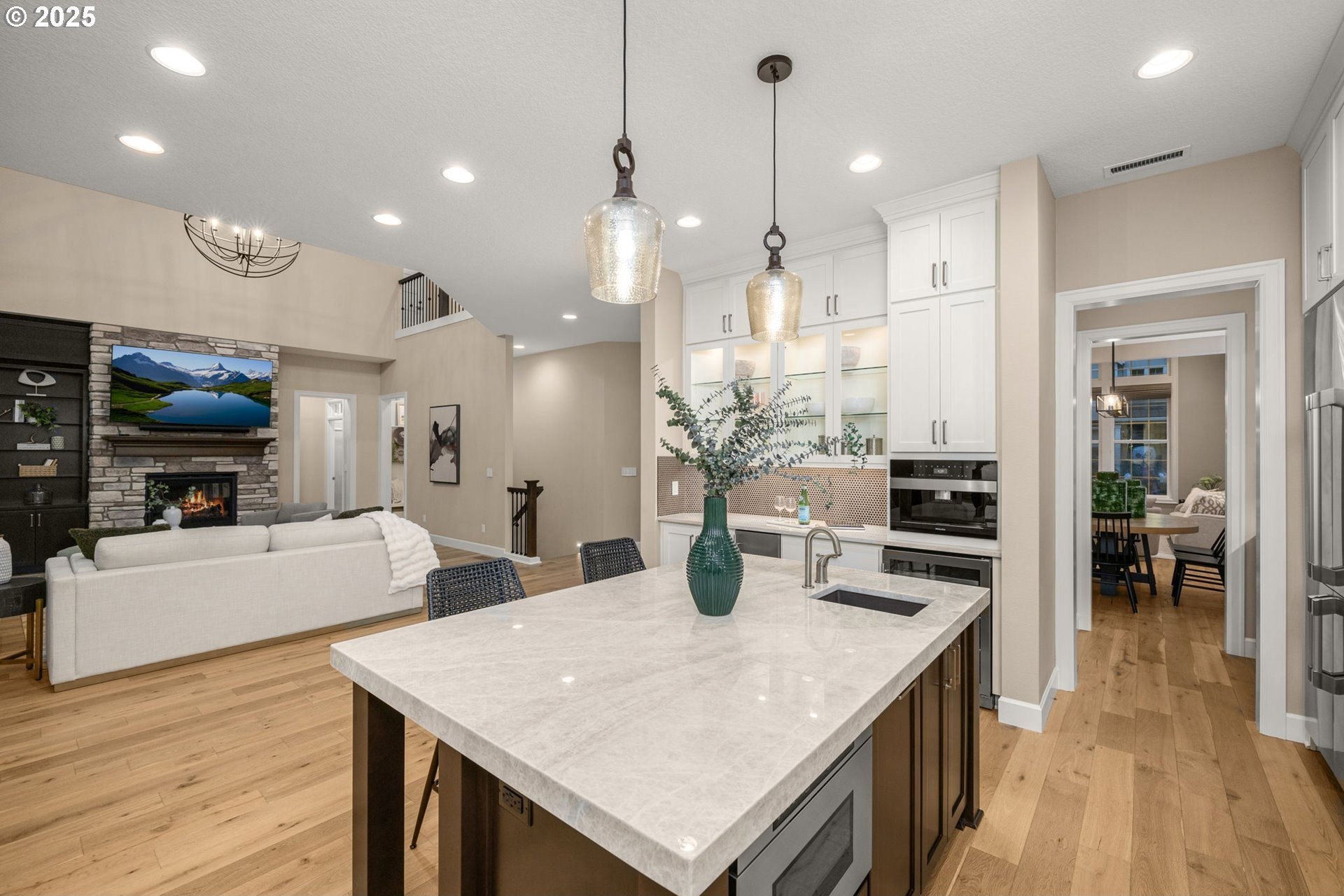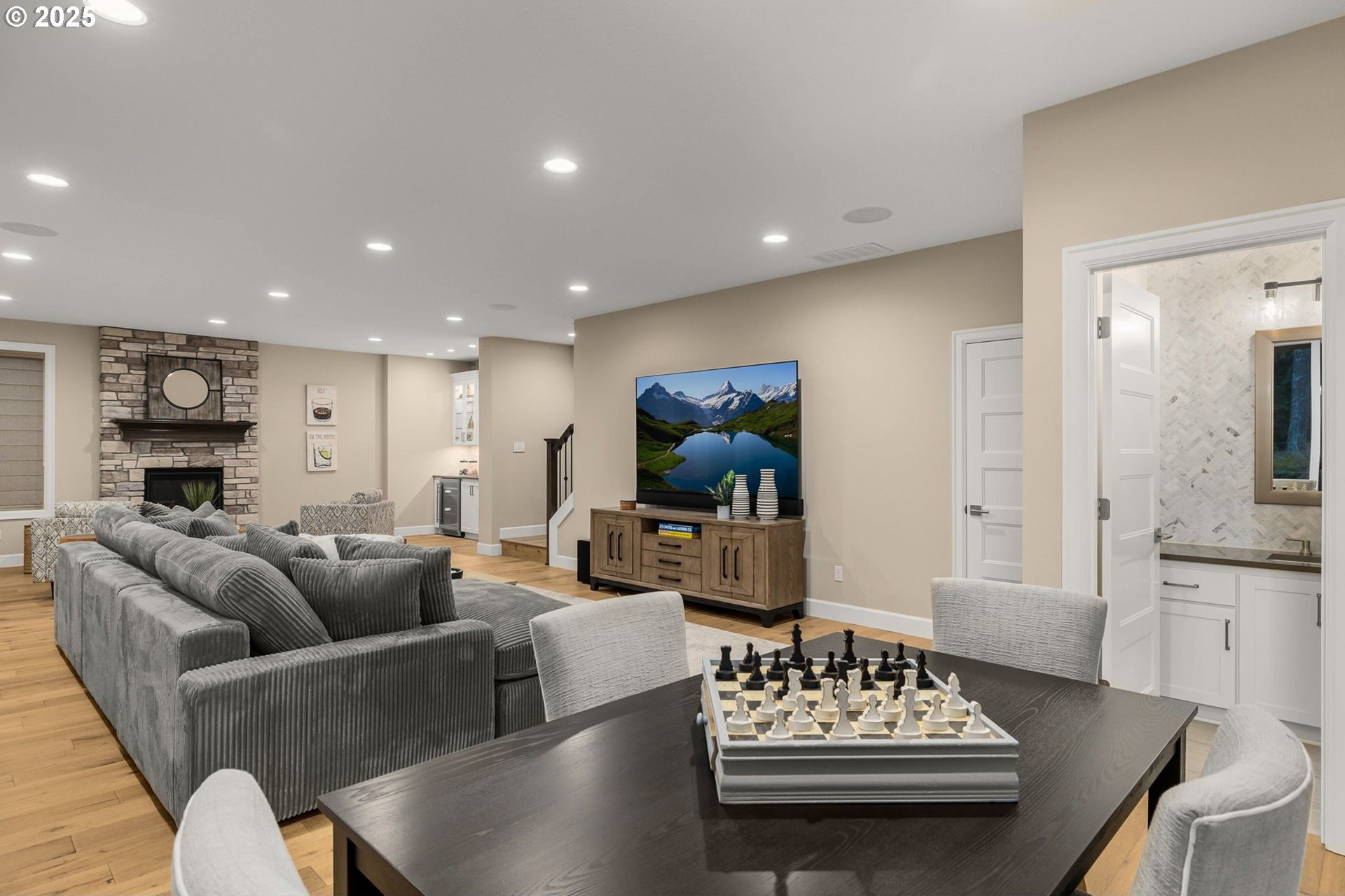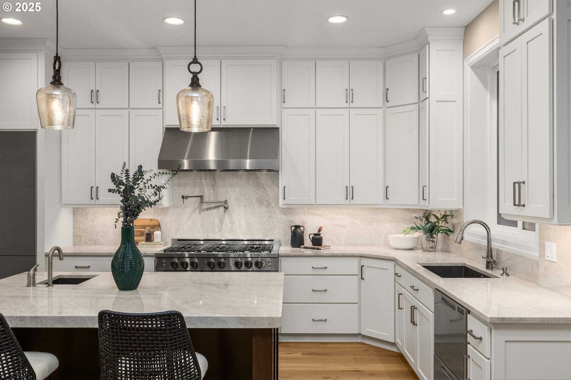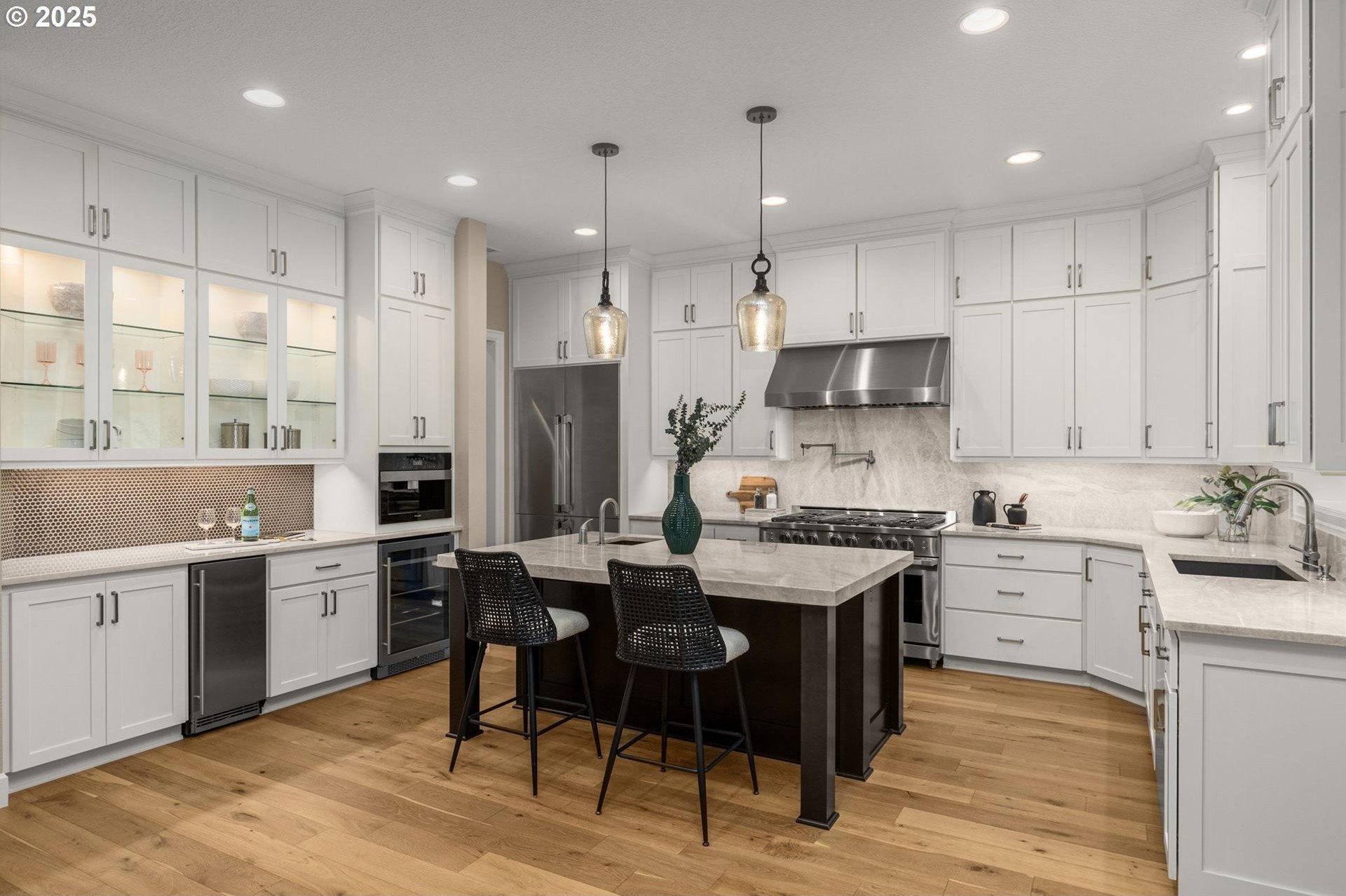 ENJOY A LARGE, LEVEL YARD BACKING TO GREENSPACE! Rare opportunity to own a quality Noyes built home on oversized lot w/ a 3-Car Wide Garage! Privately positioned on a quiet street in NW Bethany/Bonny Slope neighborhoods with TOP RATED SCHOOLS. This stunning 6-bedroom home sits along protected greenspace offering gorgeous views and privacy. Designed and built by award-winning local builder Peter Noyes as his personal residence, every inch of this 4,342 sq. ft. home reflects timeless craftsmanship, thoughtful design, and high-performance living. The open-concept main level is anchored by a chef’s kitchen with Dacor appliances, a Miele coffee maker, dual wine fridges, and a massive prep island—perfect for entertaining. The two-story great room features floor-to-ceiling windows, built-ins, and a cozy fireplace that invites you to settle in and stay awhile. Downstairs, the expansive family room offers the ultimate hangout space, complete with a full bar, billiards area, ice maker, and built-in surround sound for movie nights or game days.The primary suite is a true retreat, featuring a spa-like bath with a freestanding soaking tub, heated floors, and peaceful views of the trees beyond. Additional bedrooms offer flexibility for guests, home offices, or multigenerational living. Step outside to a covered outdoor living area with skylights, built-in heaters, and a gas BBQ hookup. The deck spans the entire width of the home, offering plenty of room to dine, lounge, and entertain while taking in the treetop views. Below, the huge, low-maintenance yard is surrounded by artificial turf and extensive landscape lighting—perfect for evenings under the stars .Tech-forward and thoughtfully built, this home includes Control4 automation, a commercial-grade Wi-Fi system, whole-home water softener, built-in central vac. BONUS... hot tub, TVs, window coverings, appliances and garage storage ALL STAY! This home is 100% Turn-Key Ready!