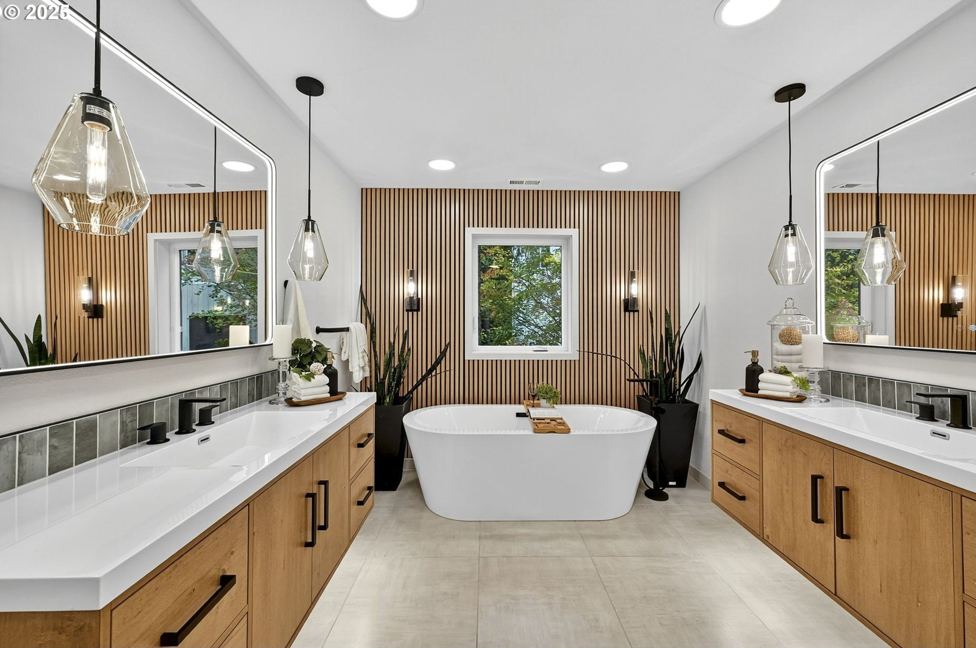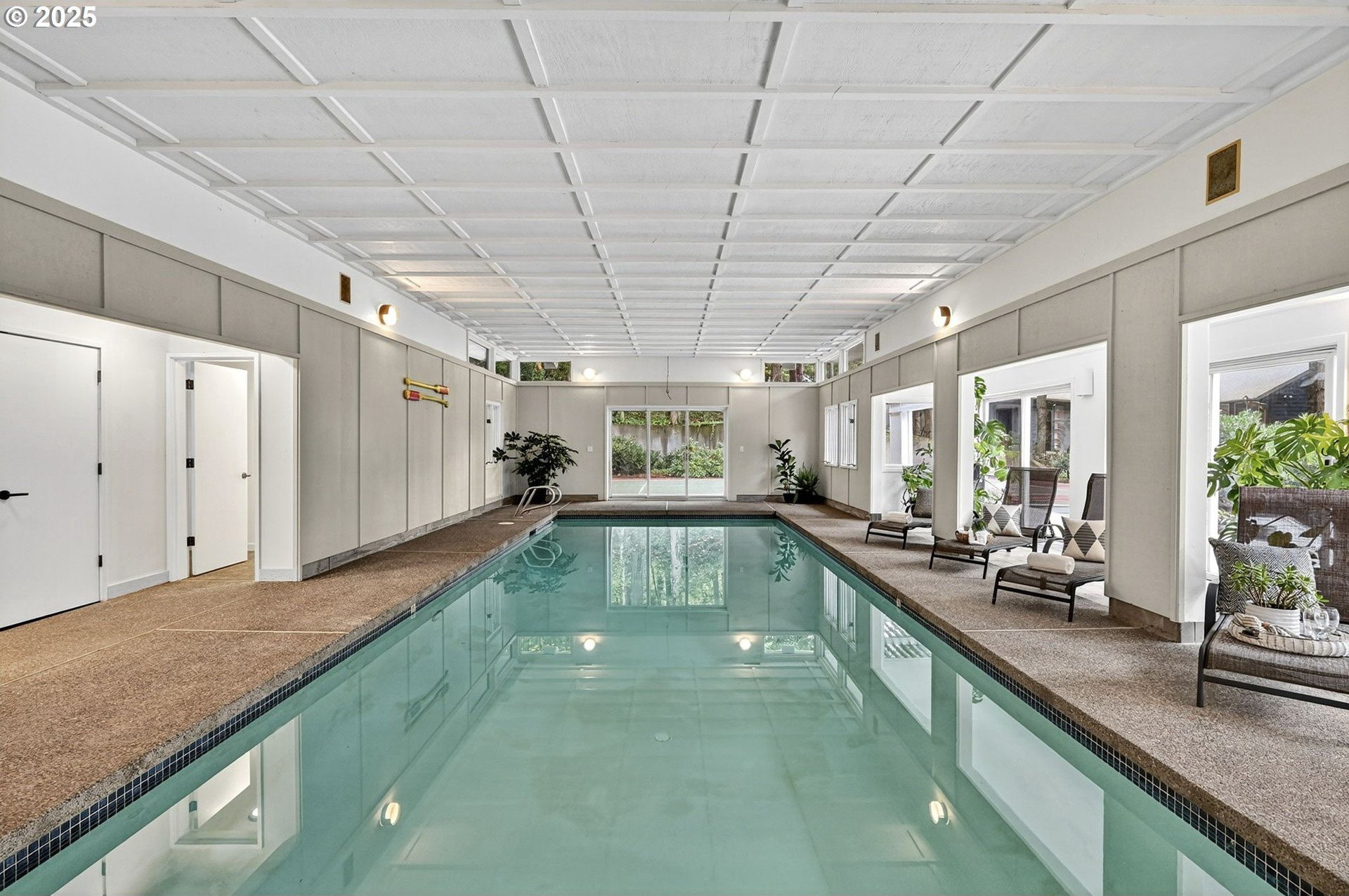 Expansive, Updated Estate with Indoor Pool, ADU & 2-Story Garage on Wooded Acre. Rare find with 8 bedrooms, 6 bathrooms - perfect for a large, active family or multigenerational living. Updated kitchen with waterfall quartz countertops, custom butlers pantry, stainless appliances and extra storage. Primary suite with accent wall, walk in shower with frameless glass doors, large walk in closet and vaulted ceilings. Spacious bedrooms with 2 loft rooms (must see!) 3 large areas for family gathering as well as indoor pool, hot tub, sport court with pickleball set up, basketball hoop and soccer goal. Expansive composite decking for entertaining. New roof, new HVAC, air conditioning, mini-splits, hot water heater, new lighting, updated fixtures throughout. Detached separate garage plumbed and wired for workshop, another ADU or business office with extra storage-accessed separately from a back road. ADU features bedroom plus office, bathroom with walk in shower, 1 car garage plus extra storage. Close to Eagle's Landing golf course, Mount Scott walking trails, retail shopping, restaurants and Kaiser, easy access to 205. Excellent North Clackamas School District. Please ask for amenities and upgrades sheet for more info.