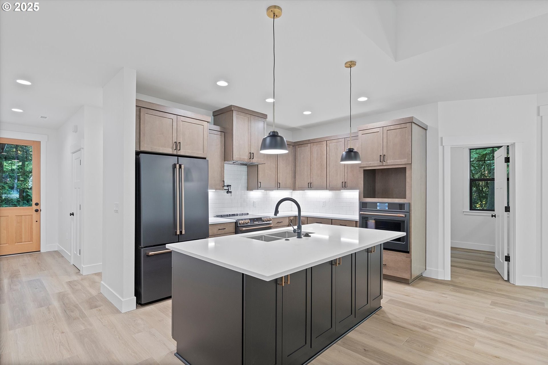 Brand new single-level modern craftsman in the desirable Rippling River subdivision! Built by a seasoned local builder, this 3-bedroom, 2-bath home combines quality craftsmanship with modern design in a peaceful setting. The open-concept floor plan features high ceilings, custom finishes, built-in gas fireplace and abundant natural light throughout.The gourmet kitchen offers quartz countertops, GE Cafe appliances and a large island that opens to the great room and dining area—perfect for entertaining. The spacious primary suite includes a walk-in closet and a beautifully tiled ensuite bath with dual vanities and large walk-in shower.Enjoy outdoor living on the covered patio surrounded by a beautifully landscaped yard. Additional highlights include a two-car garage, spacious asphalt parking, EV ready parking and low-maintenance landscaping.Located close to the Salmon River, Mt. Hood Oregon Resort & Golf Course, and just a short drive to Mt. Hood’s ski areas and trails. A perfect full-time residence, vacation rental or mountain getaway with easy access to all-season recreation.