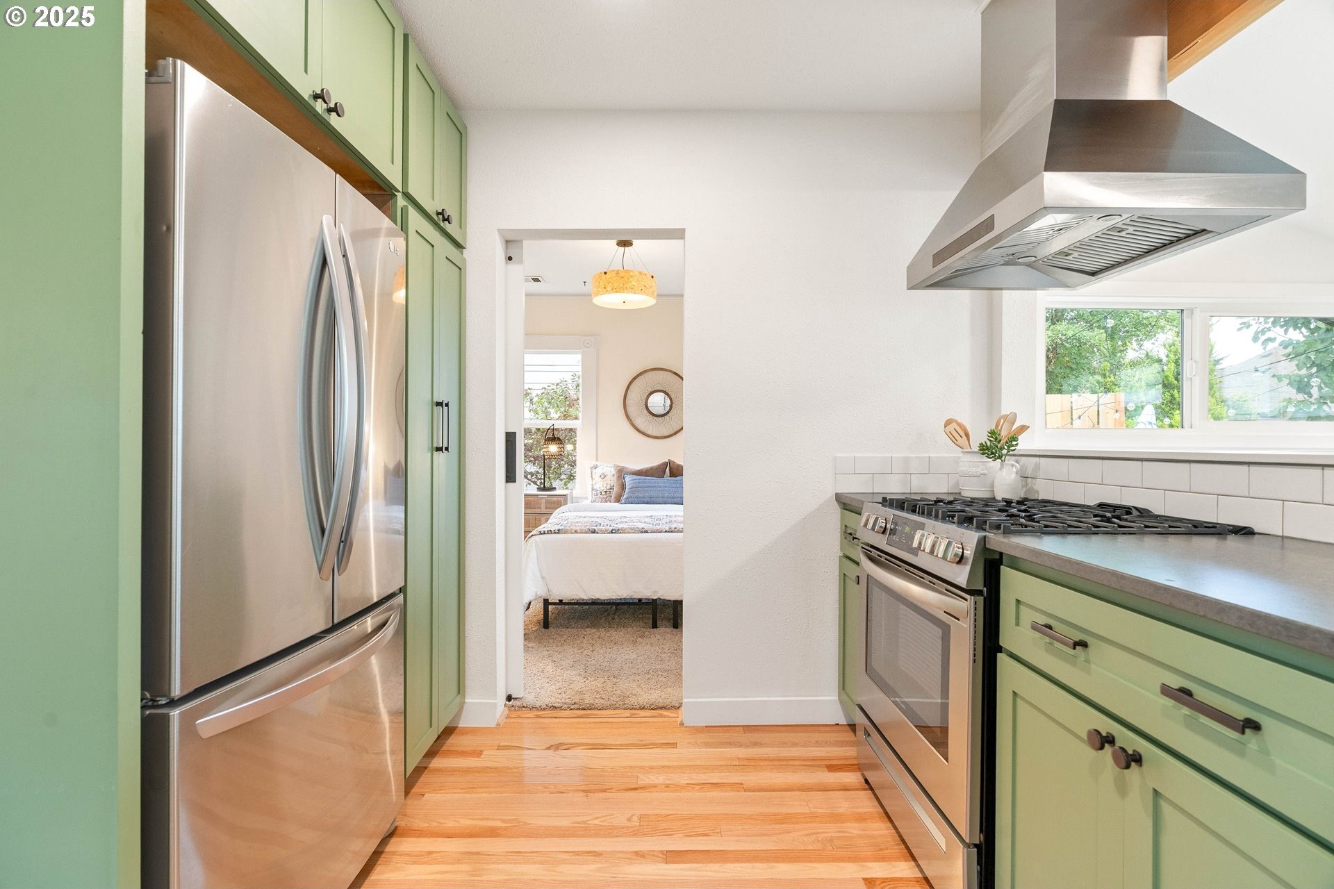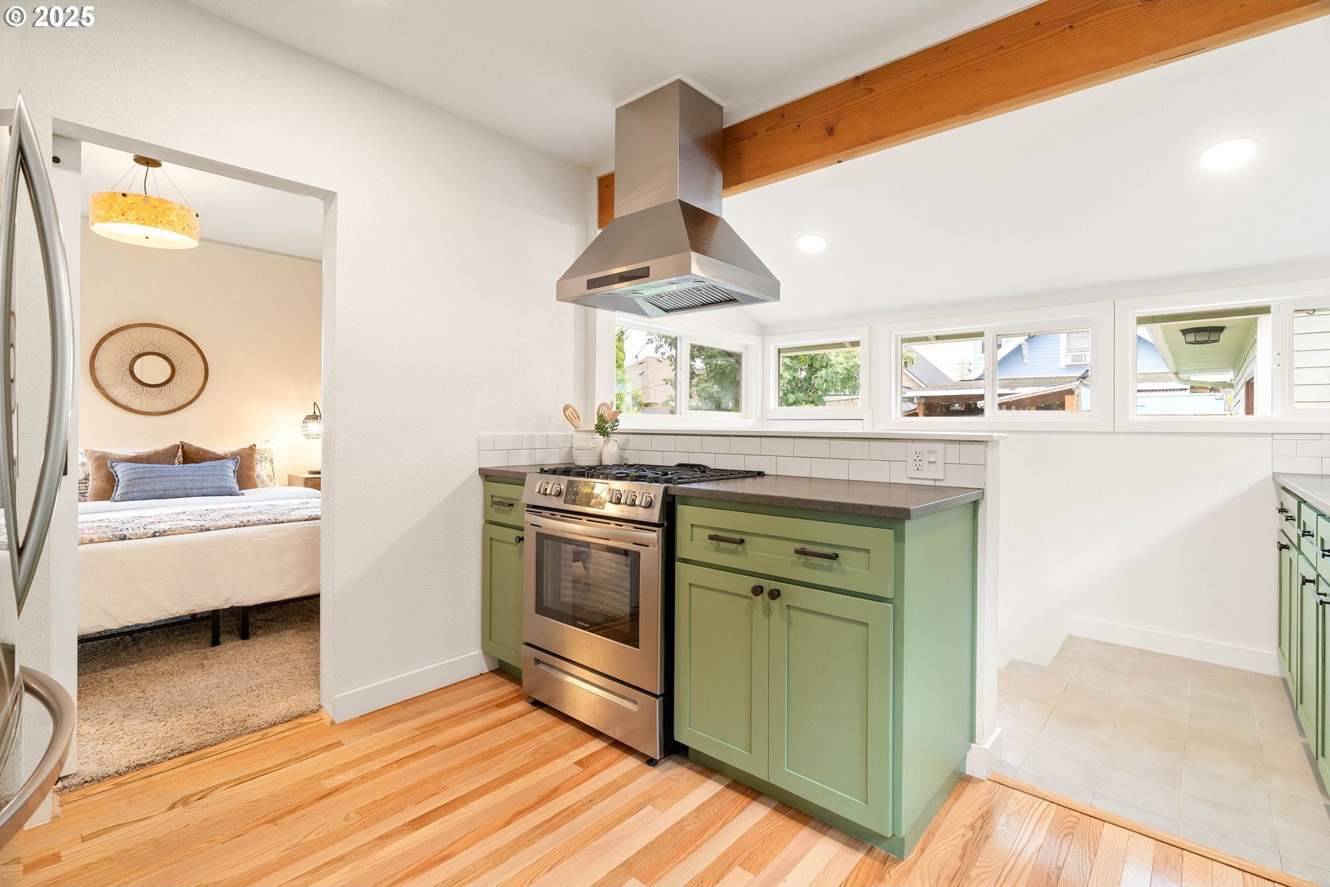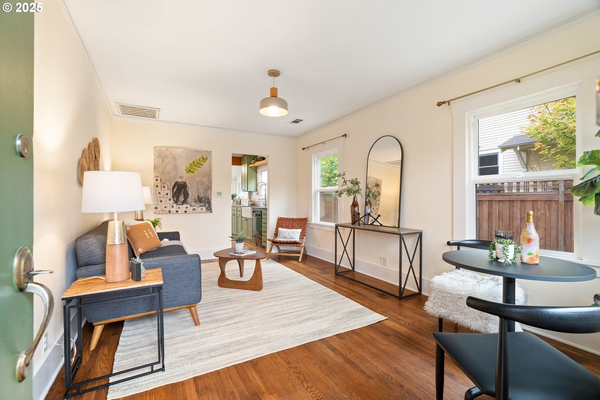 Welcome to this charming 1927 bungalow in the heart of North Portland’s Overlook neighborhood! Inside, you’ll find the perfect blend of vintage character and thoughtful modern updates. The kitchen is a total standout — beautifully remodeled in 2023 with quartz countertops, custom cabinetry, a gas range, vent hood, and farmhouse sink. It’s the kind of space that makes cooking and entertaining easy and fun. Hardwood floors, updated windows, and a newer roof (2020) make this home as practical as it is pretty. Outside, enjoy a private fenced yard with raised garden beds and a cozy patio — perfect for relaxing or hosting friends. All of this just minutes from great restaurants, shops, and parks. A true North Portland gem! [Home Energy Score = 7. HES Report at https://rpt.greenbuildingregistry.com/hes/OR10184071]