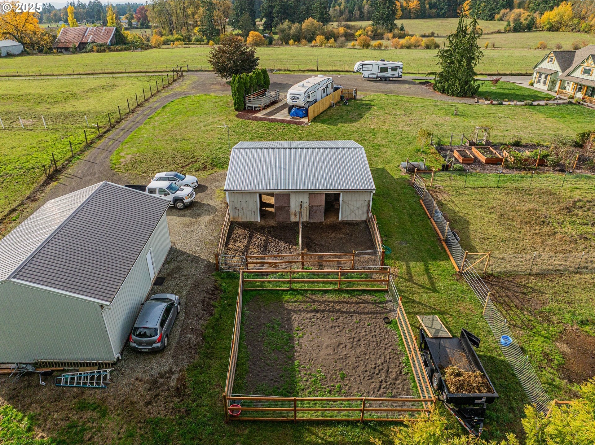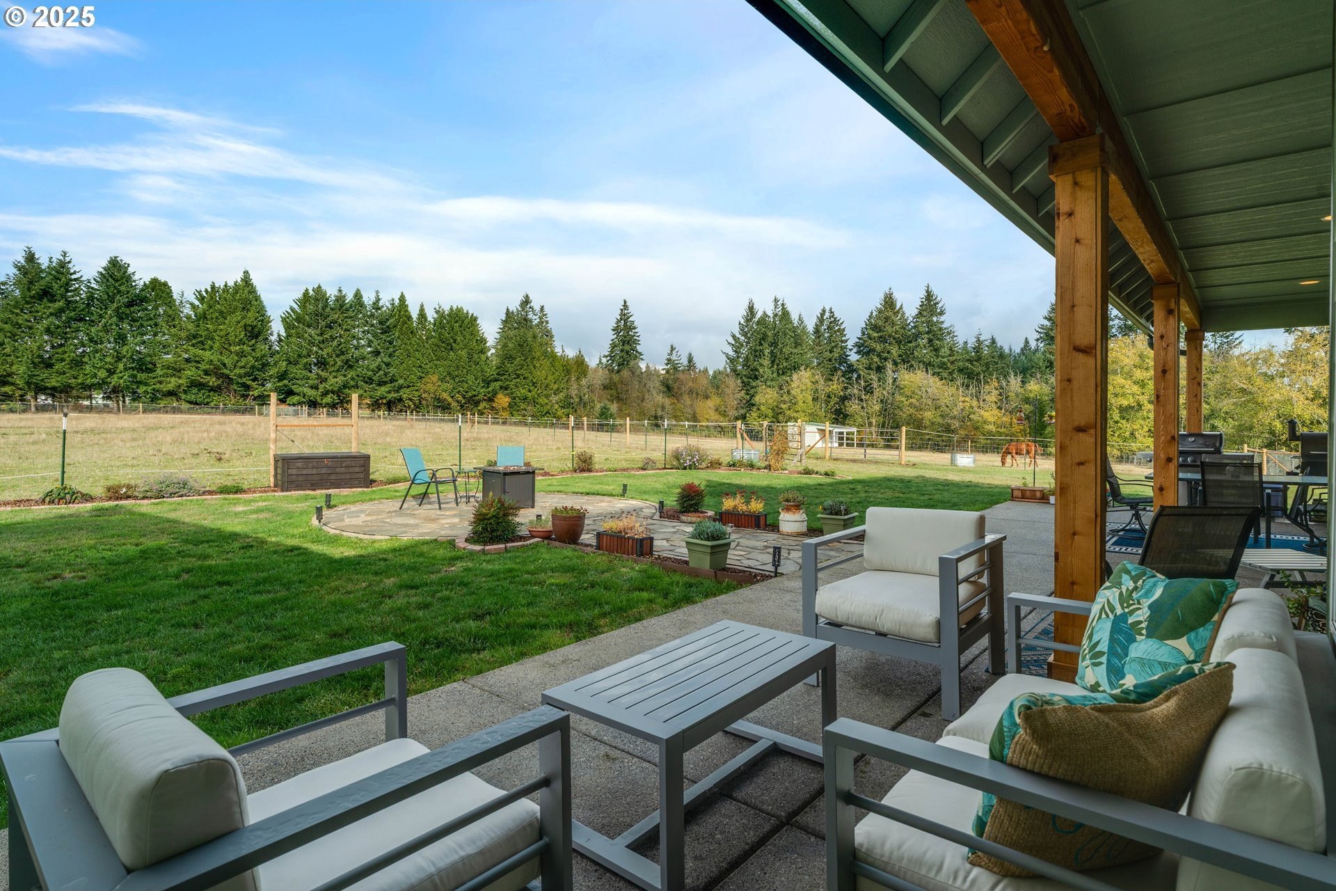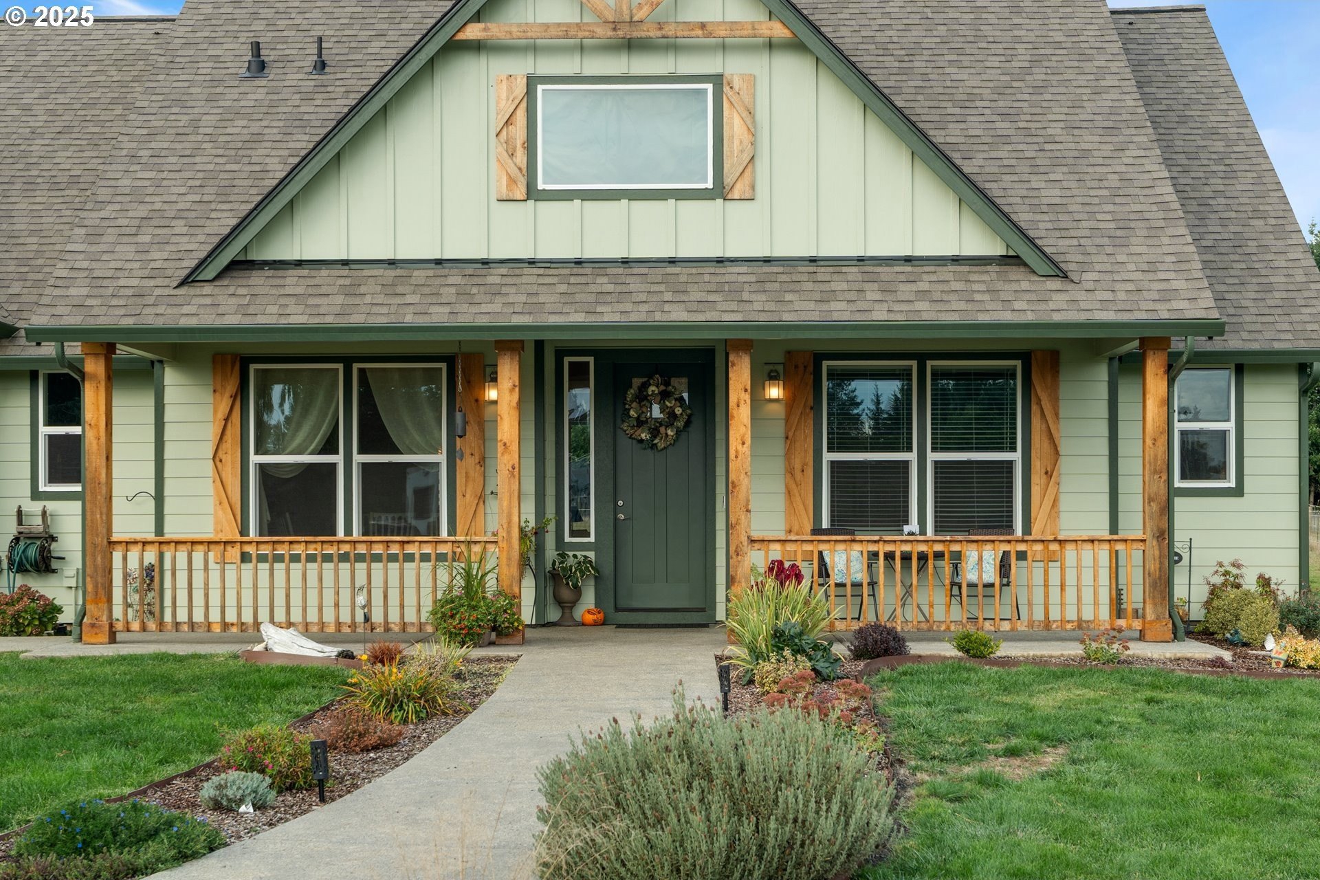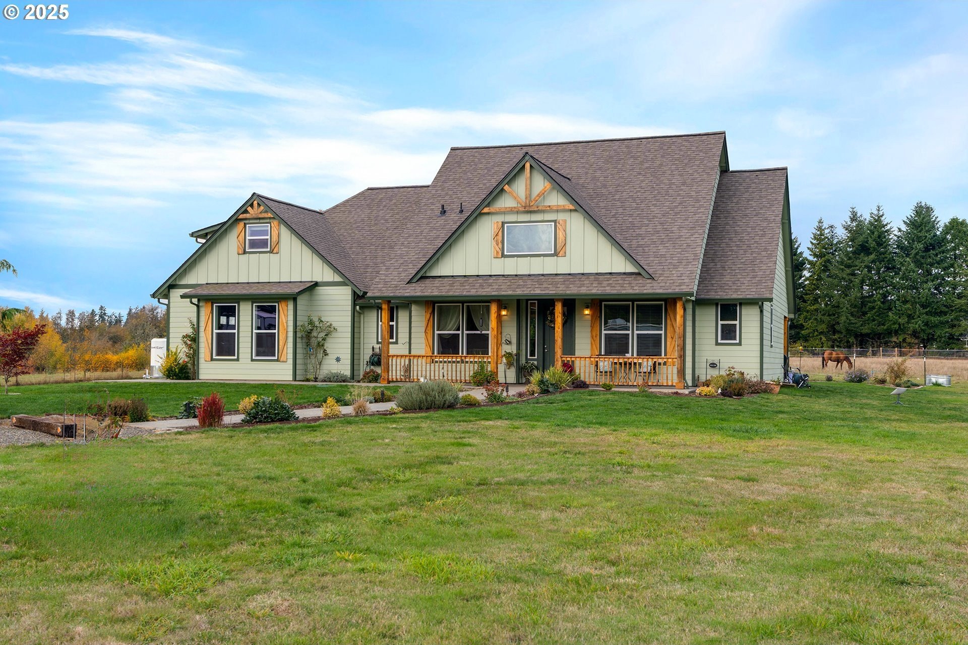 Discover this stunning 2023-built Craftsman-style equestrian estate on 5 private acres in beautiful La Center, WA. Blending timeless farmhouse charm with modern luxury, this 3-bedroom, 2.5-bath home offers open-concept living, exceptional functionality, and income-producing potential. The inviting covered porch opens to a spacious main floor featuring all 3 bedrooms, including a versatile front room ideal for an office or guest suite, plus a walk-in flex room perfect for storage or hobbies. The gourmet kitchen impresses with stainless steel appliances, a large island, farm sink, tiled backsplash, and abundant cabinetry that flows into the dining area and breakfast nook. The living room stuns with 15-foot ceilings, a floor-to-ceiling stone fireplace, and custom built-ins, while double doors lead to a covered patio and cozy firepit area. The primary suite features cathedral ceilings, a walk-in closet, and a spa-style bath with soaking tub, dual vanities, and tiled shower. Upstairs, a large bonus loft with wet bar and half bath provides flexible space for a media room, gym, or office. Equestrian amenities include a 36’x36’ barn with 3 stalls (one oversize for mare, foal, or stallion), two 18’x24’ turnout paddocks, one 30’x30’ paddock, tack room, storage, and a 90’x145’ outdoor sand arena designed for year-round use. Fully fenced pastures are ready for horses or livestock. The wide driveway accommodates RVs, boats, or income-producing ventures like horse boarding, RV parking, or event hosting. An 8’ deer-fenced garden offers raised beds with roses, berries, blueberries, and fruit trees including apple, cherry, and pear. A large shop provides space for equipment, vehicles, or workspace. Perfect for the equestrian enthusiast or anyone seeking the freedom of country living with modern comforts, this property offers endless opportunities—from small boarding operations and clinics to simply enjoying your own private retreat.
