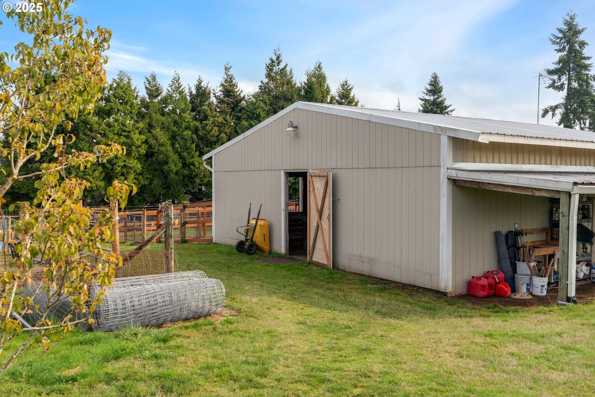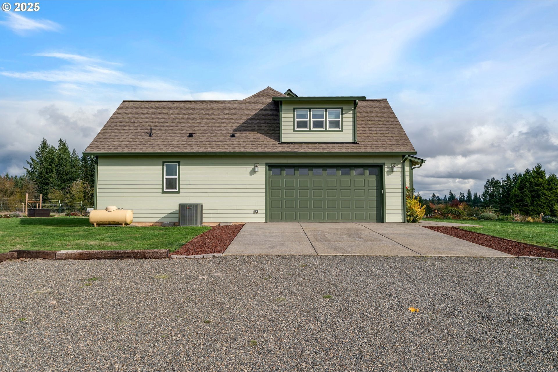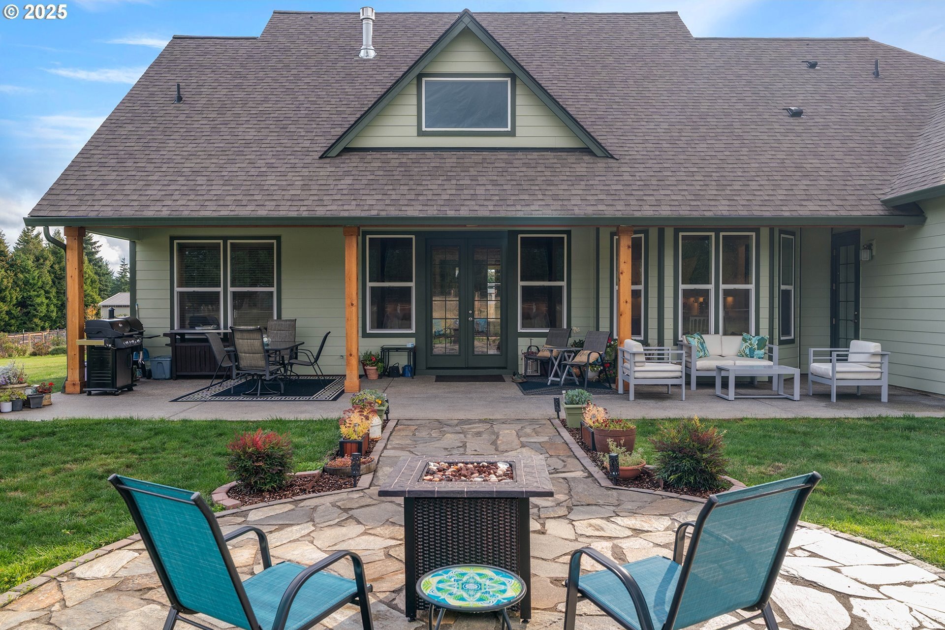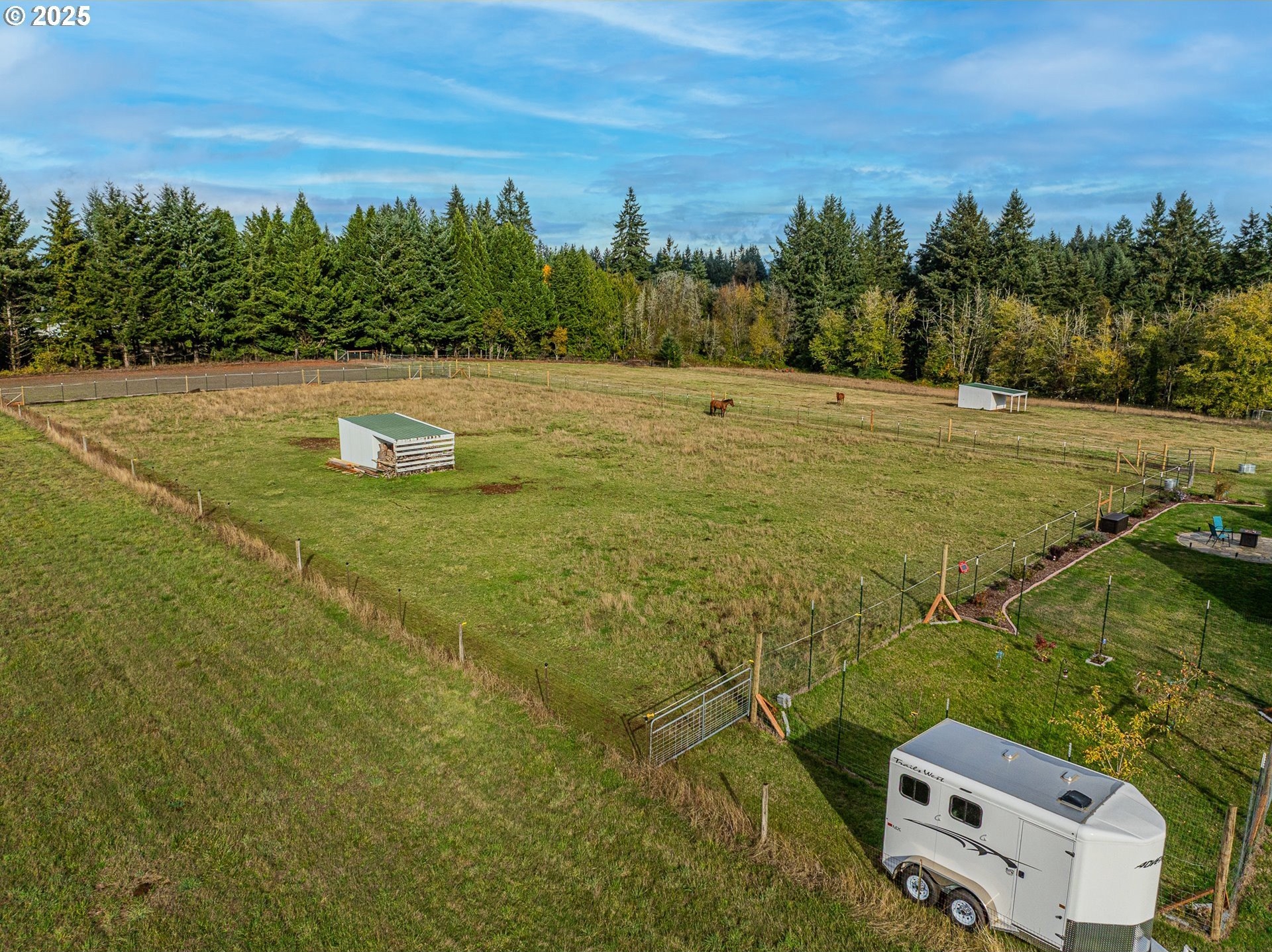 Discover this stunning 2023-built Craftsman-style equestrian estate on 5 private acres in beautiful La Center, WA. Blending timeless farmhouse charm with modern luxury, this 3-bedroom, 2.5-bath home offers open-concept living, exceptional functionality, and income-producing potential. The inviting covered porch opens to a spacious main floor featuring all 3 bedrooms, including a versatile front room ideal for an office or guest suite, plus a walk-in flex room perfect for storage or hobbies. The gourmet kitchen impresses with stainless steel appliances, a large island, farm sink, tiled backsplash, and abundant cabinetry that flows into the dining area and breakfast nook. The living room stuns with 15-foot ceilings, a floor-to-ceiling stone fireplace, and custom built-ins, while double doors lead to a covered patio and cozy firepit area. The primary suite features cathedral ceilings, a walk-in closet, and a spa-style bath with soaking tub, dual vanities, and tiled shower. Upstairs, a large bonus loft with wet bar and half bath provides flexible space for a media room, gym, or office. Equestrian amenities include a 36’x36’ barn with 3 stalls (one oversize for mare, foal, or stallion), two 18’x24’ turnout paddocks, one 30’x30’ paddock, tack room, storage, and a 90’x145’ outdoor sand arena designed for year-round use. Fully fenced pastures are ready for horses or livestock. The wide driveway accommodates RVs, boats, or income-producing ventures like horse boarding, RV parking, or event hosting. An 8’ deer-fenced garden offers raised beds with roses, berries, blueberries, and fruit trees including apple, cherry, and pear. A large shop provides space for equipment, vehicles, or workspace. Perfect for the equestrian enthusiast or anyone seeking the freedom of country living with modern comforts, this property offers endless opportunities—from small boarding operations and clinics to simply enjoying your own private retreat.