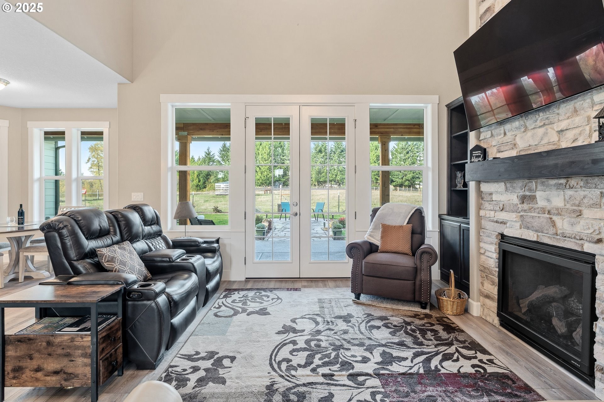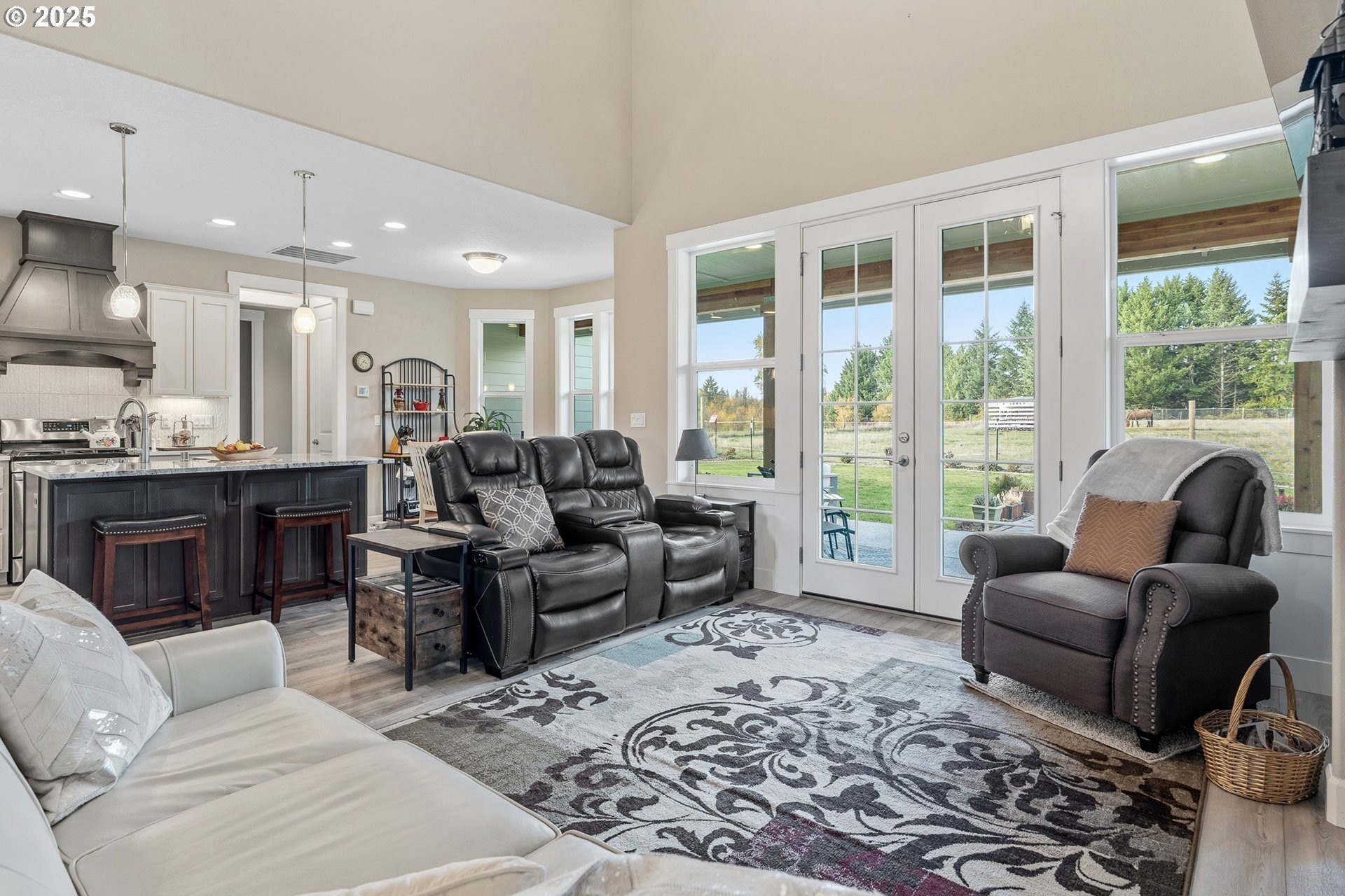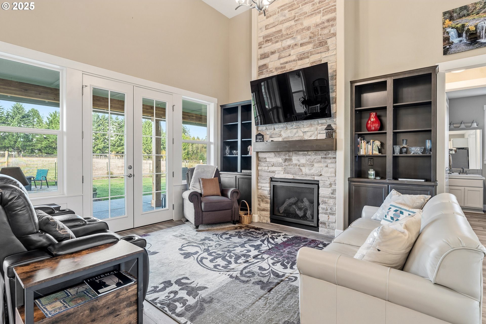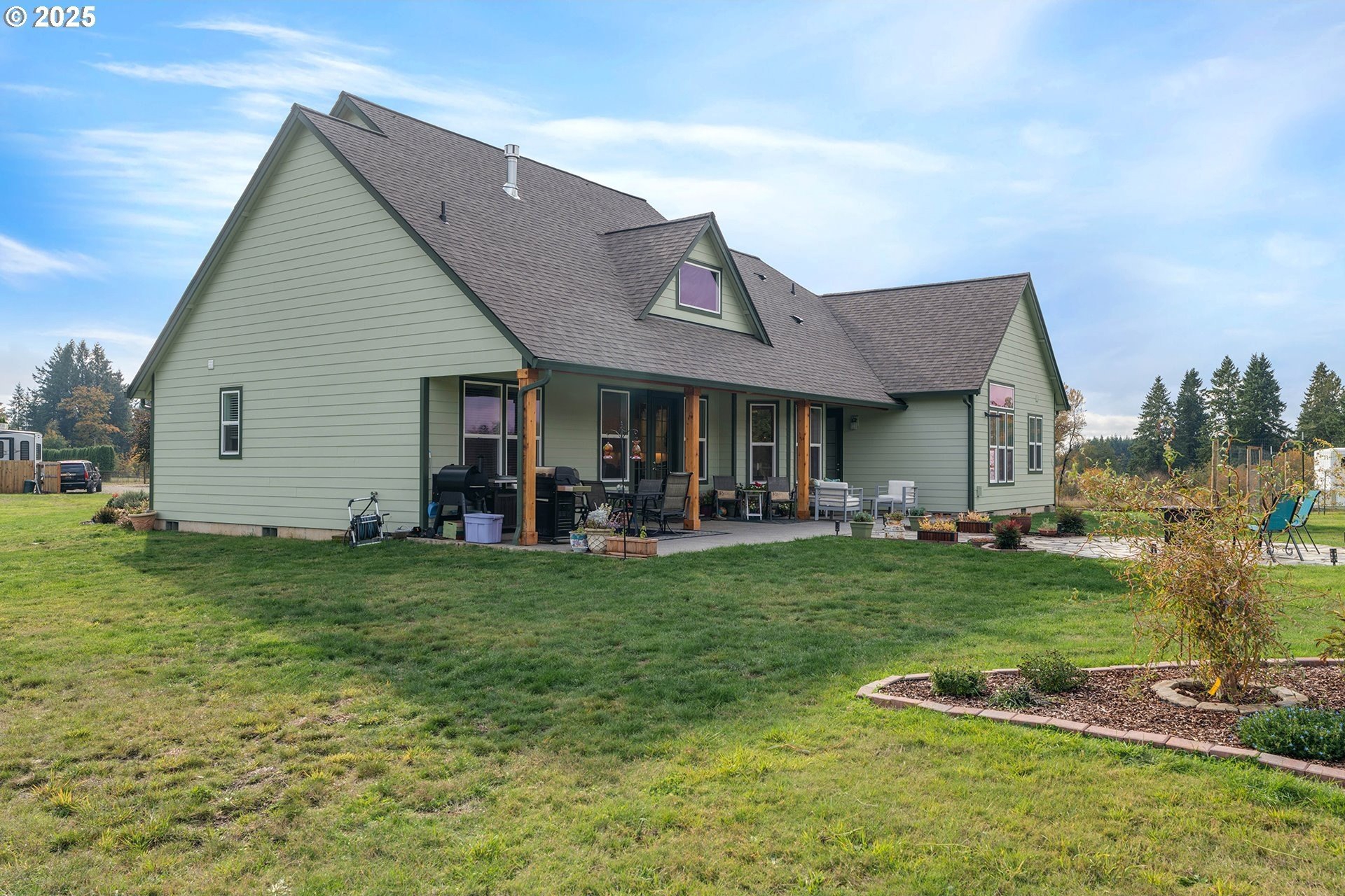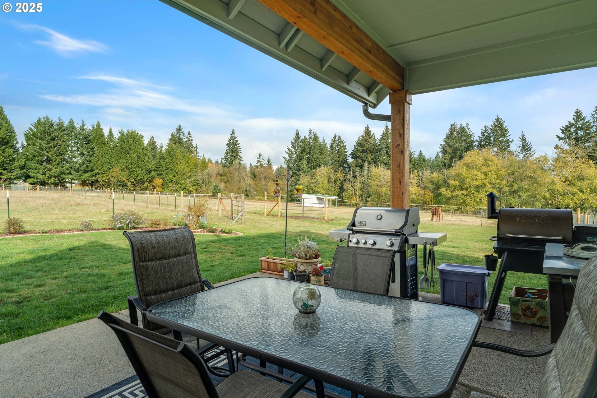 Discover this stunning 2023-built Craftsman-style equestrian estate on 5 private acres in beautiful La Center, WA. Blending timeless farmhouse charm with modern luxury, this 3-bedroom, 2.5-bath home offers open-concept living, exceptional functionality, and income-producing potential. The inviting covered porch opens to a spacious main floor featuring all 3 bedrooms, including a versatile front room ideal for an office or guest suite, plus a walk-in flex room perfect for storage or hobbies. The gourmet kitchen impresses with stainless steel appliances, a large island, farm sink, tiled backsplash, and abundant cabinetry that flows into the dining area and breakfast nook. The living room stuns with 15-foot ceilings, a floor-to-ceiling stone fireplace, and custom built-ins, while double doors lead to a covered patio and cozy firepit area. The primary suite features cathedral ceilings, a walk-in closet, and a spa-style bath with soaking tub, dual vanities, and tiled shower. Upstairs, a large bonus loft with wet bar and half bath provides flexible space for a media room, gym, or office. Equestrian amenities include a 36’x36’ barn with 3 stalls (one oversize for mare, foal, or stallion), two 18’x24’ turnout paddocks, one 30’x30’ paddock, tack room, storage, and a 90’x145’ outdoor sand arena designed for year-round use. Fully fenced pastures are ready for horses or livestock. The wide driveway accommodates RVs, boats, or income-producing ventures like horse boarding, RV parking, or event hosting. An 8’ deer-fenced garden offers raised beds with roses, berries, blueberries, and fruit trees including apple, cherry, and pear. A large shop provides space for equipment, vehicles, or workspace. Perfect for the equestrian enthusiast or anyone seeking the freedom of country living with modern comforts, this property offers endless opportunities—from small boarding operations and clinics to simply enjoying your own private retreat.