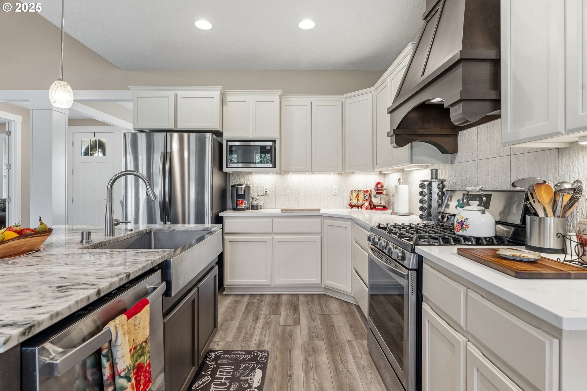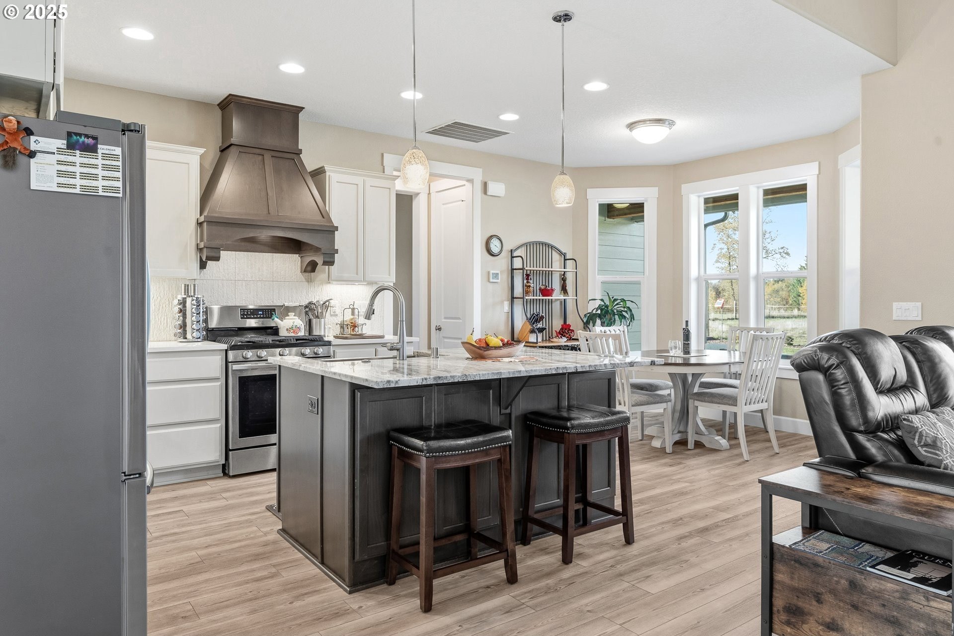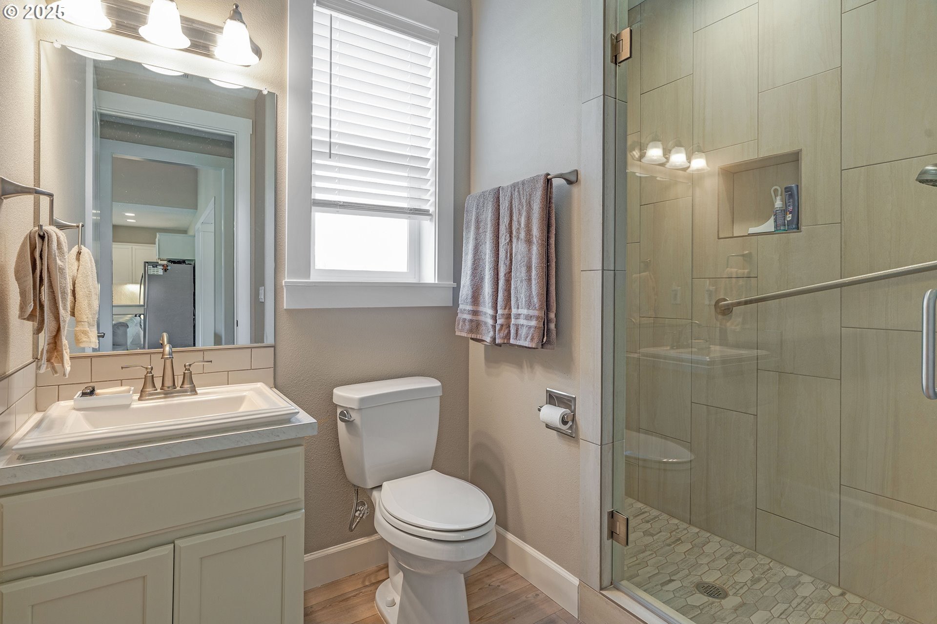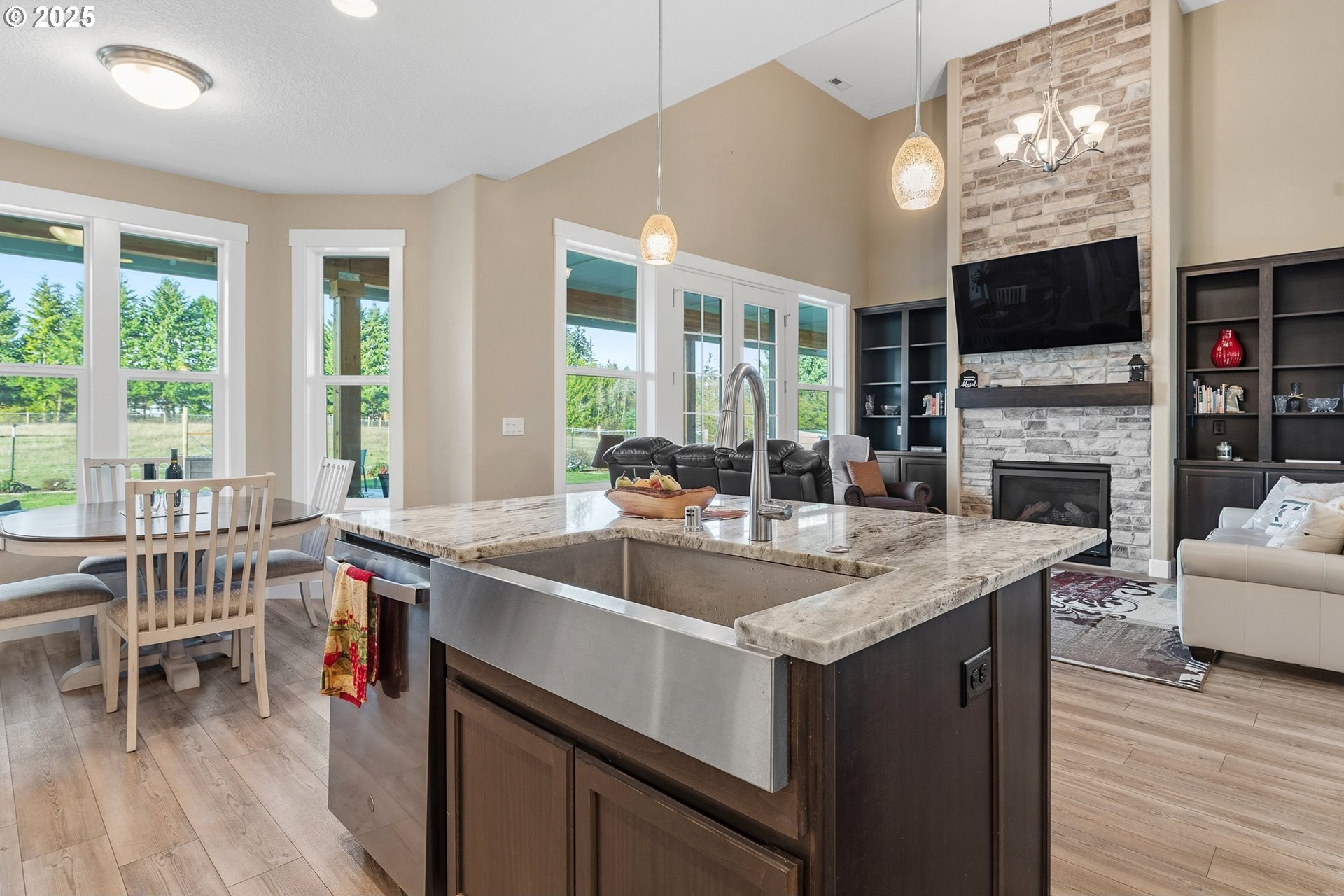 Discover this stunning 2023-built Craftsman-style equestrian estate on 5 private acres in beautiful La Center, WA. Blending timeless farmhouse charm with modern luxury, this 3-bedroom, 2.5-bath home offers open-concept living, exceptional functionality, and income-producing potential. The inviting covered porch opens to a spacious main floor featuring all 3 bedrooms, including a versatile front room ideal for an office or guest suite, plus a walk-in flex room perfect for storage or hobbies. The gourmet kitchen impresses with stainless steel appliances, a large island, farm sink, tiled backsplash, and abundant cabinetry that flows into the dining area and breakfast nook. The living room stuns with 15-foot ceilings, a floor-to-ceiling stone fireplace, and custom built-ins, while double doors lead to a covered patio and cozy firepit area. The primary suite features cathedral ceilings, a walk-in closet, and a spa-style bath with soaking tub, dual vanities, and tiled shower. Upstairs, a large bonus loft with wet bar and half bath provides flexible space for a media room, gym, or office. Equestrian amenities include a 36’x36’ barn with 3 stalls (one oversize for mare, foal, or stallion), two 18’x24’ turnout paddocks, one 30’x30’ paddock, tack room, storage, and a 90’x145’ outdoor sand arena designed for year-round use. Fully fenced pastures are ready for horses or livestock. The wide driveway accommodates RVs, boats, or income-producing ventures like horse boarding, RV parking, or event hosting. An 8’ deer-fenced garden offers raised beds with roses, berries, blueberries, and fruit trees including apple, cherry, and pear. A large shop provides space for equipment, vehicles, or workspace. Perfect for the equestrian enthusiast or anyone seeking the freedom of country living with modern comforts, this property offers endless opportunities—from small boarding operations and clinics to simply enjoying your own private retreat.