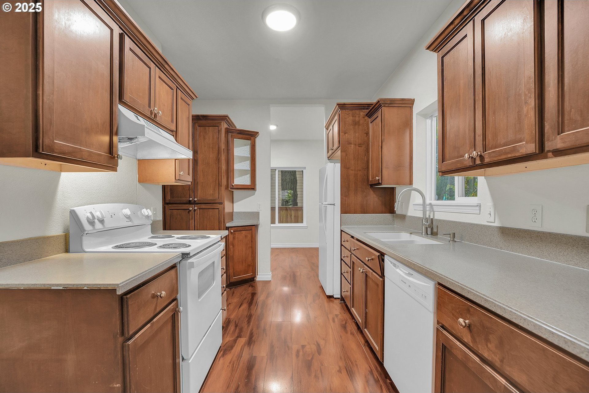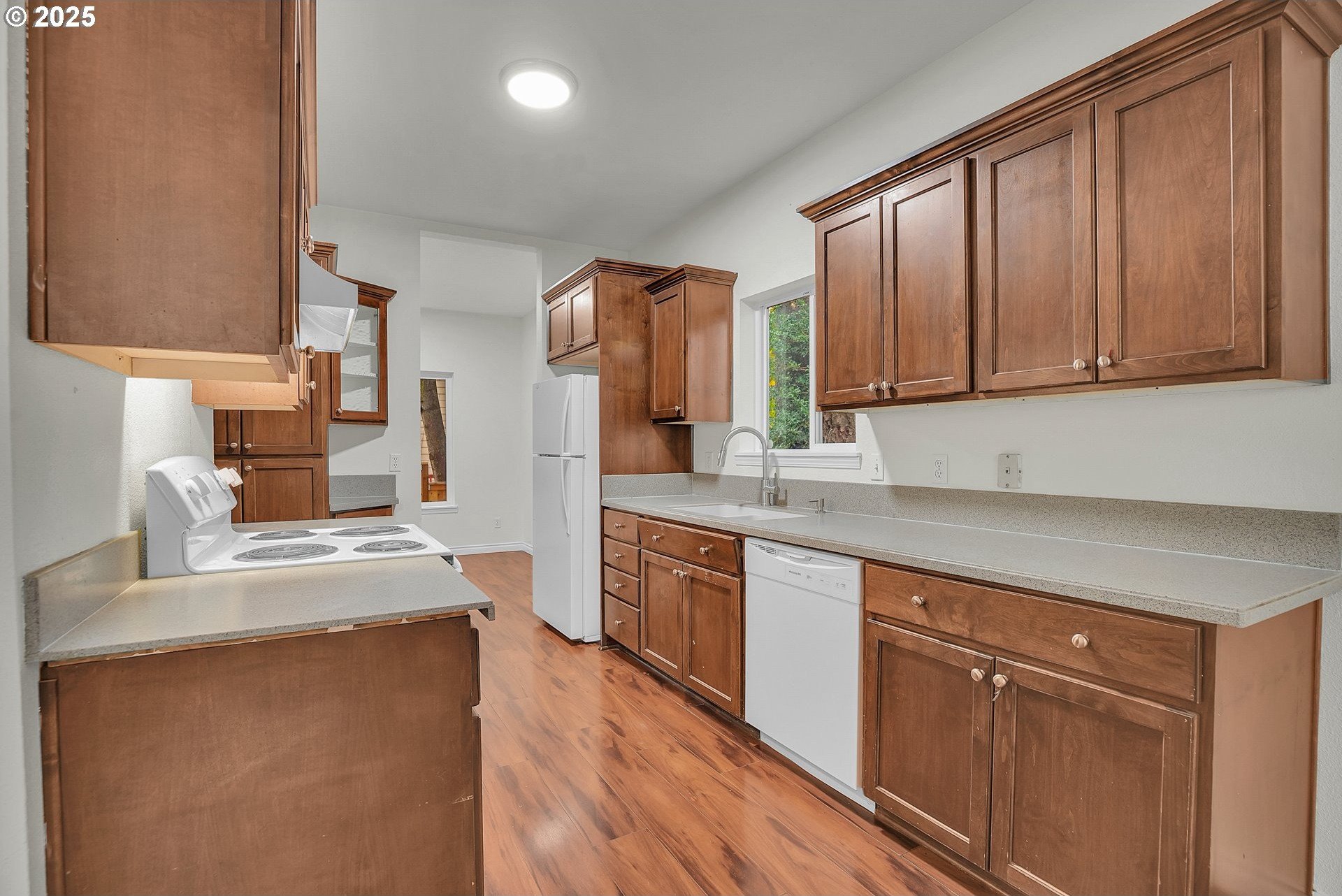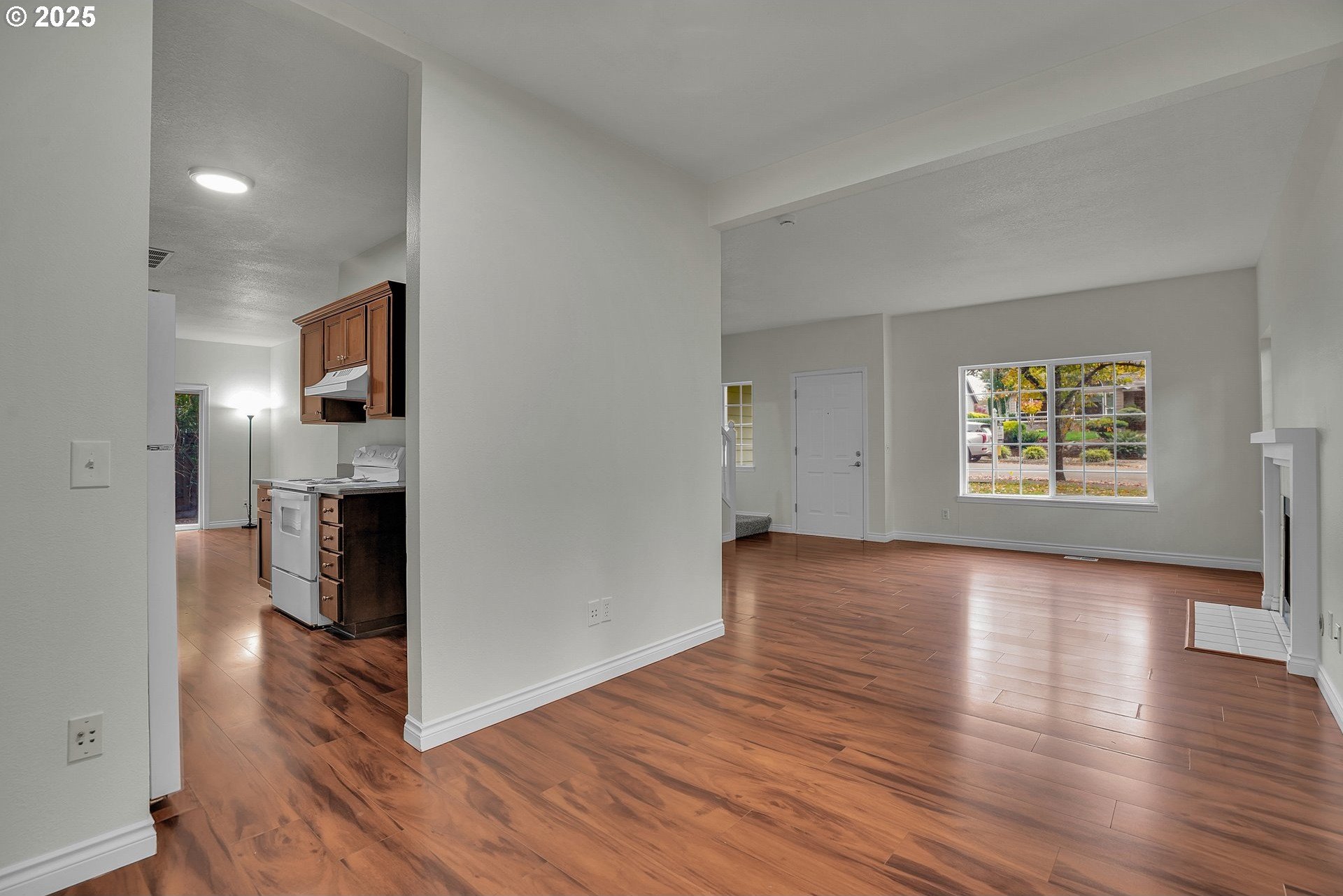 Welcome to this beautiful 2-story home nestled in the Tualatin Woods neighborhood! The desirable layout features a 1748 sq ft, 4-bedroom, 2.5-bath residence that offers the perfect blend of comfort, style, and functionality. As you step into the living room, you’ll be greeted by a cozy gas fireplace and laminate flooring that extends throughout the main level, creating a warm, inviting atmosphere. The bright, open concept living and dining area is welcoming for everyday living or entertaining. The kitchen boasts Corian countertops, an abundance of stylish cabinetry, plus a new dishwasher and range. The kitchen flows seamlessly into the spacious family room, which offers access to the backyard and plenty of space for gatherings or relaxing. Upstairs, you’ll find a generous primary suite featuring an updated bathroom, double closets, walk-in closets, and vaulted ceilings- creating a peaceful retreat. Plus, 3 additional bedrooms that provide plenty of space to customize to your specific desires. Enjoy the private backyard with a patio area ideal for barbecues. In the heart of Tualatin, this home offers easy access to amenities, parks, top-rated schools, shopping, and I-5 for an easy commute. NO HOA! Move-in ready and full of charm — this is the one you’ve been waiting for!