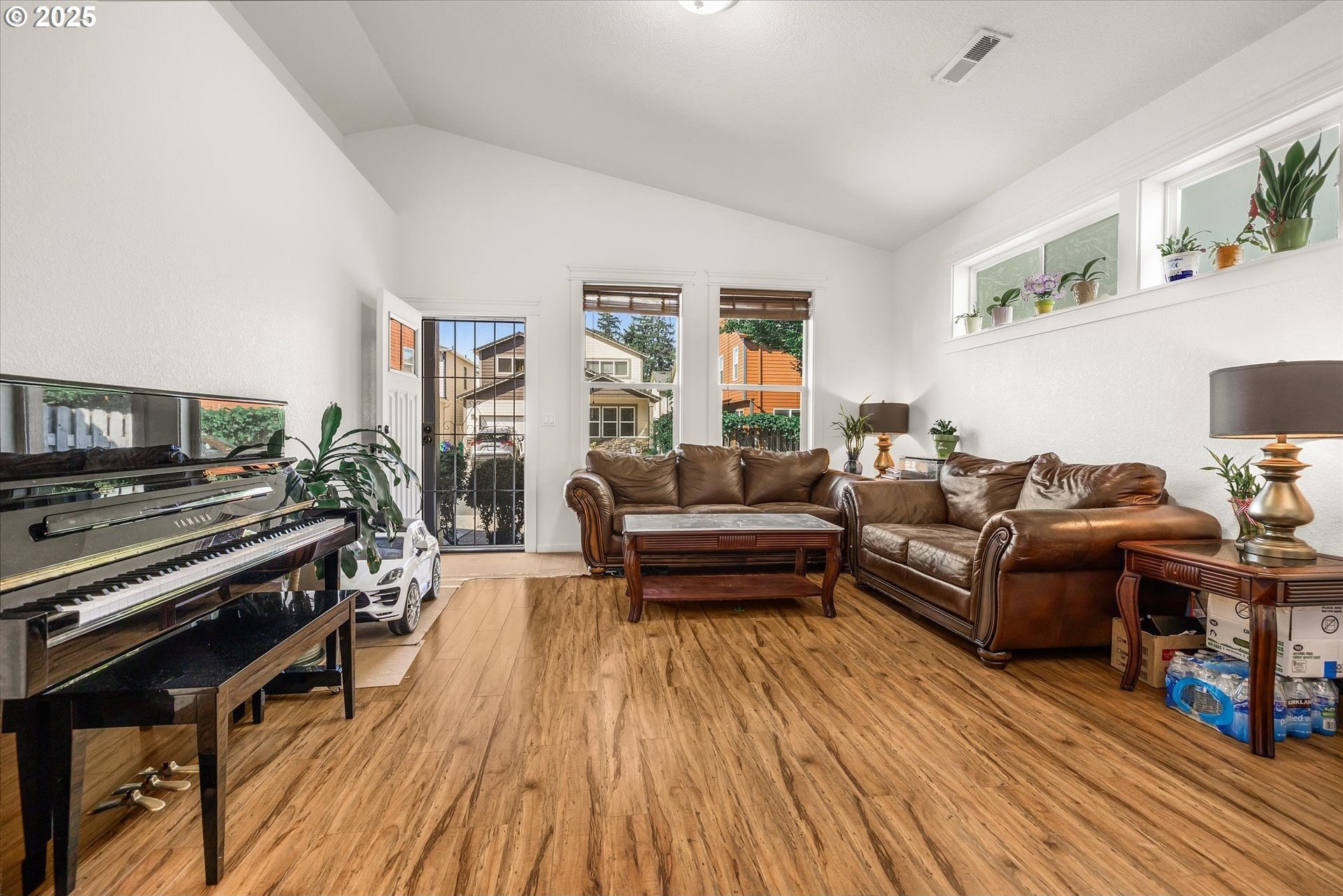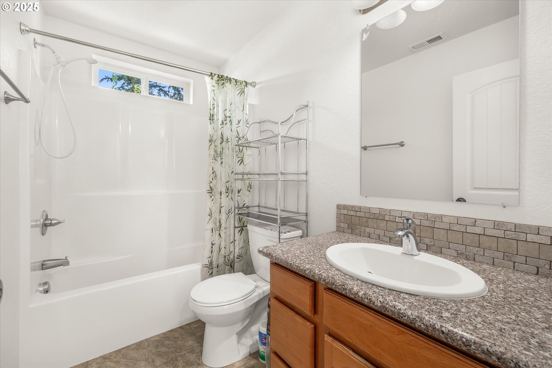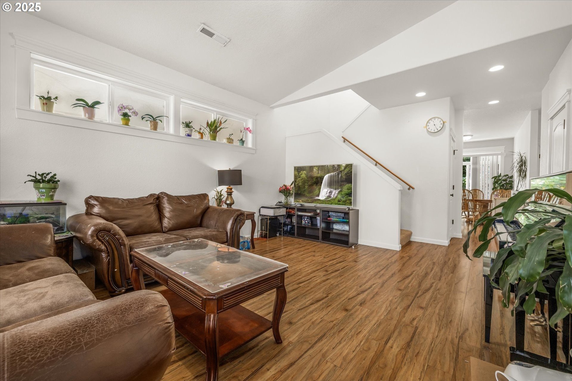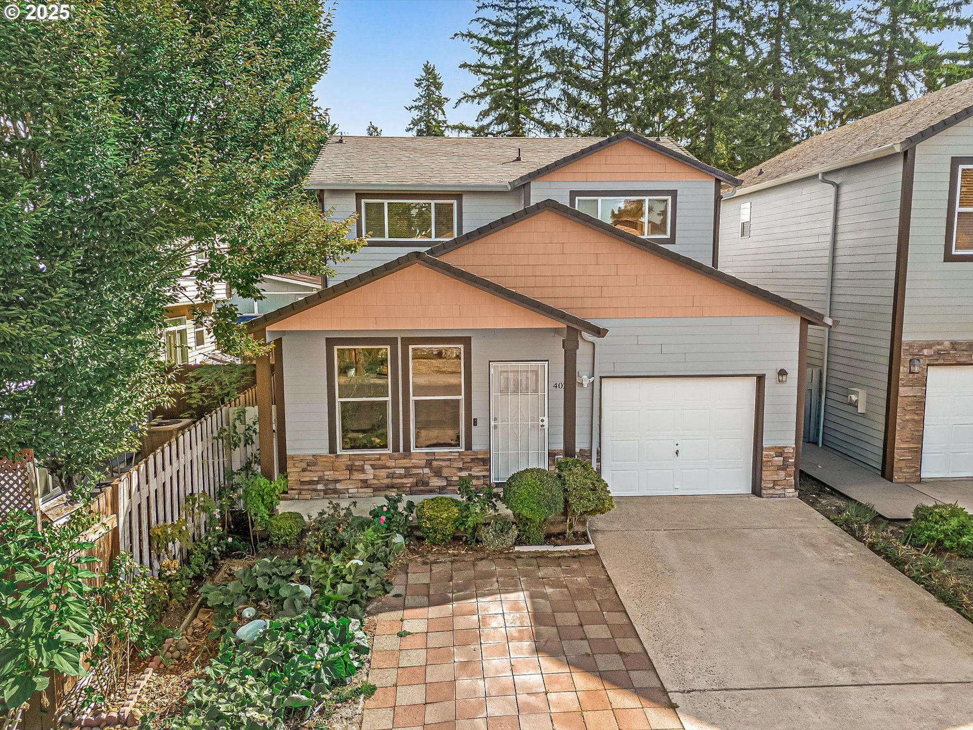 Tucked in a quiet pocket of newer homes, this 2011-built gem offers 3 beds + DEN w/ 3 full baths, soaring 9’ ceilings, and abundant natural light through oversized double-pane windows. Open-concept living flows effortlessly from kitchen—stainless appliances, stone counters, pantry—to dining and great room, ideal for gatherings.Upstairs includes a vaulted primary suite and additional bedroom, plus full bath with enclosed laundry. Main level features a bedroom room with closet and full bath—perfect for guests or home office.Enjoy a fully fenced, low-maintenance yard with slab patio. Luxury plank flooring downstairs, move-in ready. NO HOA. Must see and price to sell.
