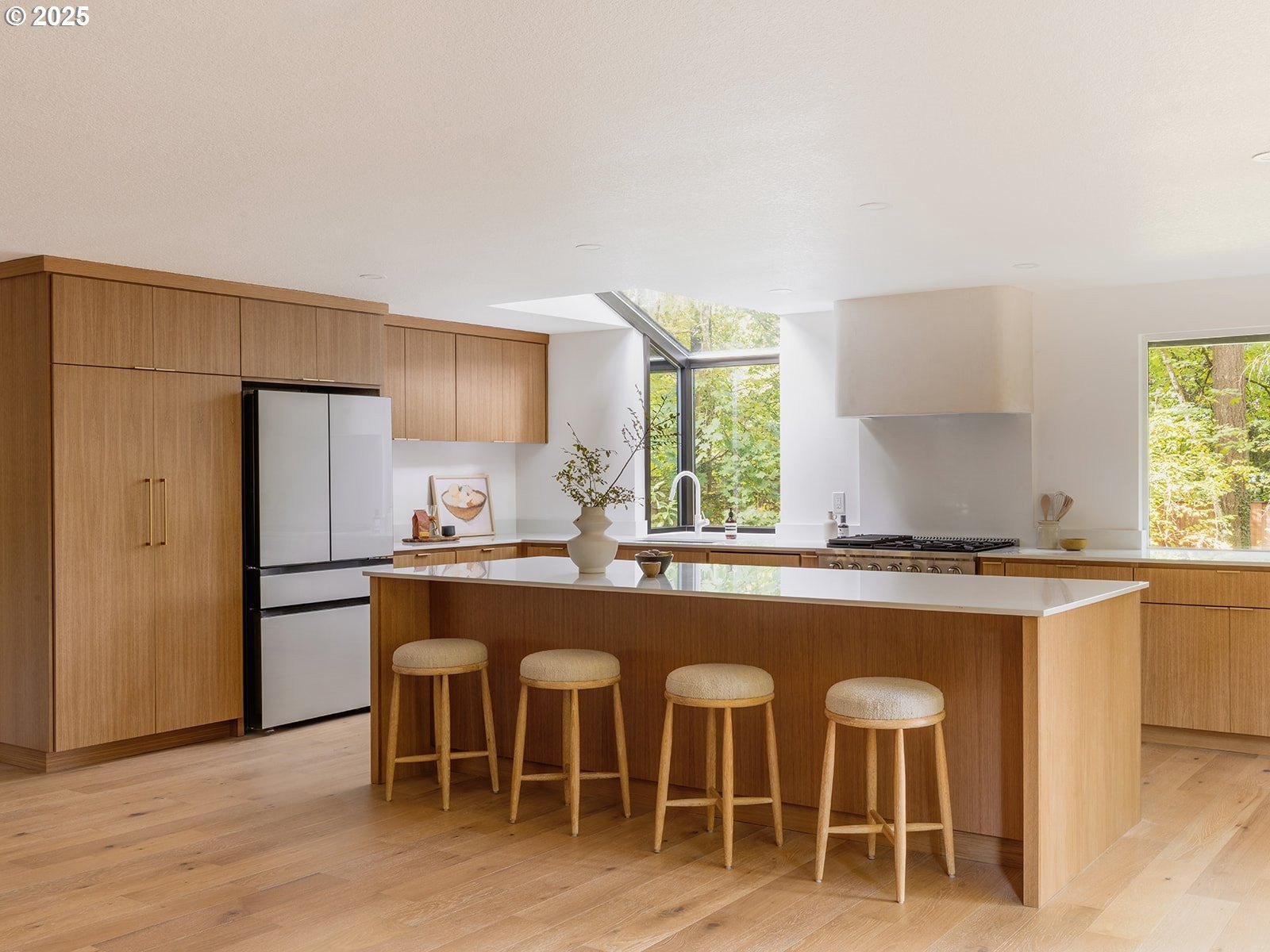 This one is straight out of Dwell Magazine. Nestled on a quiet cul-de-sac, this single-level home blends modern warmth with timeless design. White oak cabinetry anchors a stunning kitchen centered around a ten-foot island, perfect for gatherings under soft natural light. Engineered hardwoods run throughout, leading to serene microcement showers and curated finishes from brands such as Design Within Reach and Herman Miller. Step outside to a large cedar deck or stroll to the neighborhood pool. With a new roof, thoughtful details, and effortless livability, this home is as refined as it is inviting. This one is truly special.