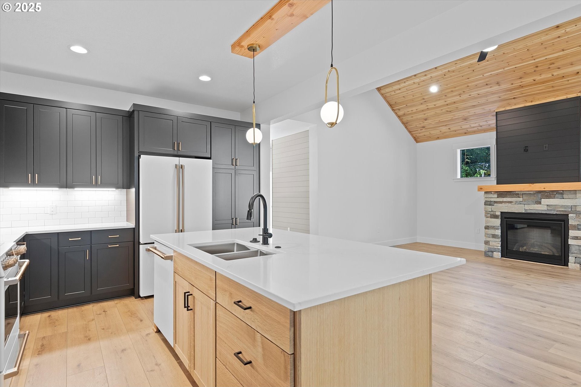 Welcome home to this stunning modern craftsman in the sought-after Rippling River subdivision, built by a respected local builder. This brand new home combines refined design, quality craftsmanship, and the beauty of Mt. Hood living. Featuring 3 bedrooms, 2.5 baths, and a spacious bonus area above the garage, this home offers flexible living space and exceptional attention to detail.The open-concept great room highlights a custom stone gas fireplace, vaulted cedar tongue-and-groove ceilings, and large windows that fill the home with natural light. The gourmet kitchen features quartz countertops, GE Cafe appliances and an oversized island—perfect for entertaining or family gatherings.The primary suite offers a serene retreat with dual vanities, tiled walk-in shower and a large walk-in closet. Step outside to enjoy a large covered outdoor living area, beautifully landscaped yard, and peaceful wooded surroundings.Located near the Salmon River, Mt. Hood Oregon Resort & Golf Course, and just minutes from skiing, hiking, and mountain recreation, this home captures the best of Northwest mountain living in a modern, elegant design.