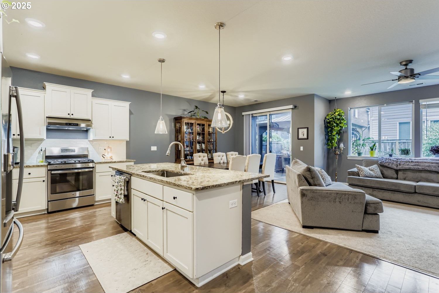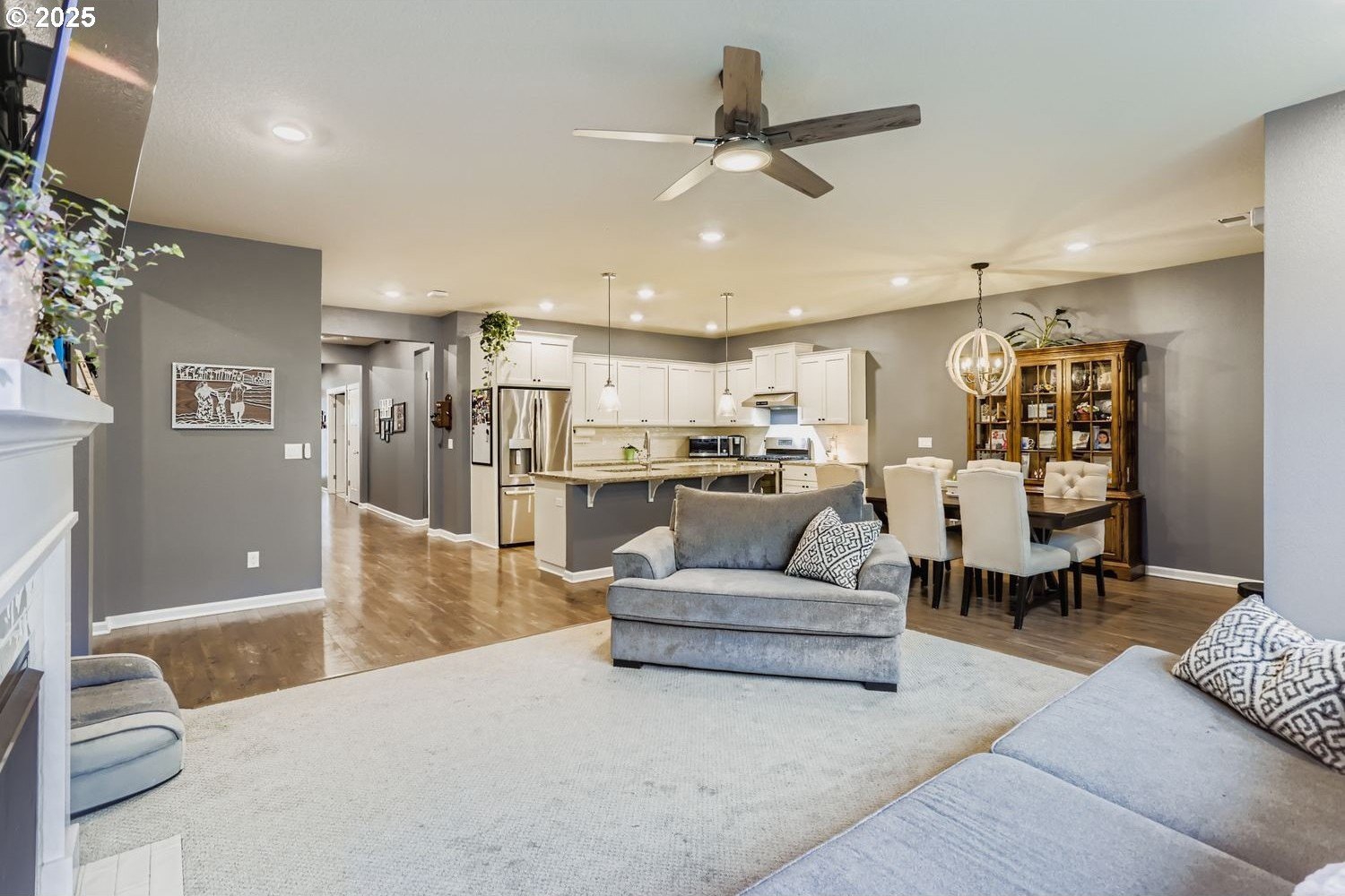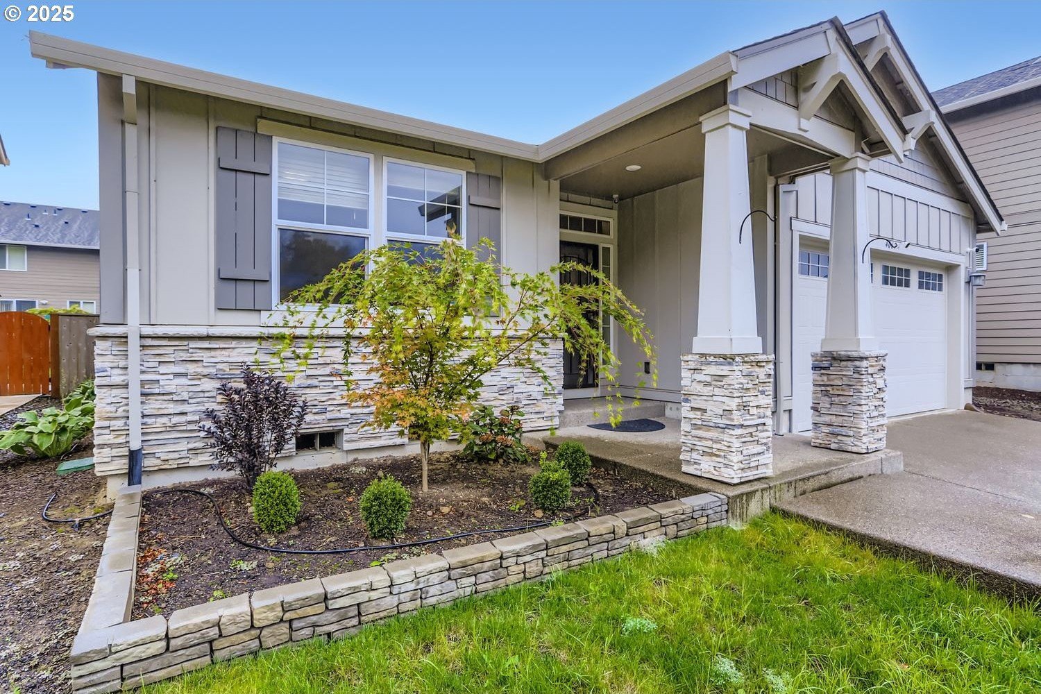 Better than new! This immaculate single-level home in the desirable Big Oak at Brookside community combines comfort, efficiency, and style. Built in 2018, it features high ceilings, upgraded flooring, and a bright open-concept layout that’s perfect for entertaining. The chef’s kitchen boasts a large island, stainless steel appliances, and sleek finishes flowing seamlessly into the great room with a cozy gas fireplace. The spacious primary suite includes a walk-in closet and elegant en-suite bath. Energy-efficient upgrades like a tankless water heater and central A/C add year-round comfort. Step outside to a beautifully landscaped backyard complete with a gazebo — an outdoor bonus ideal for gatherings and quiet evenings alike. Close to parks, trails, and Gresham amenities, this home delivers effortless, modern single-level living.