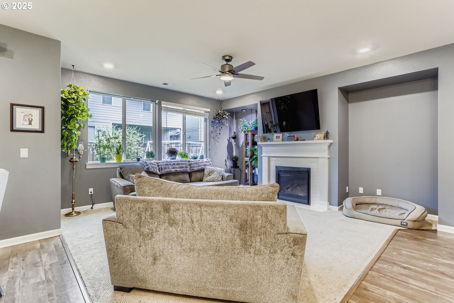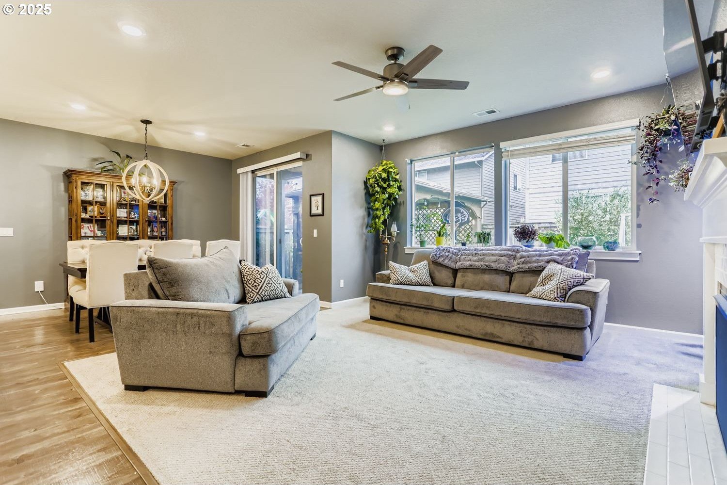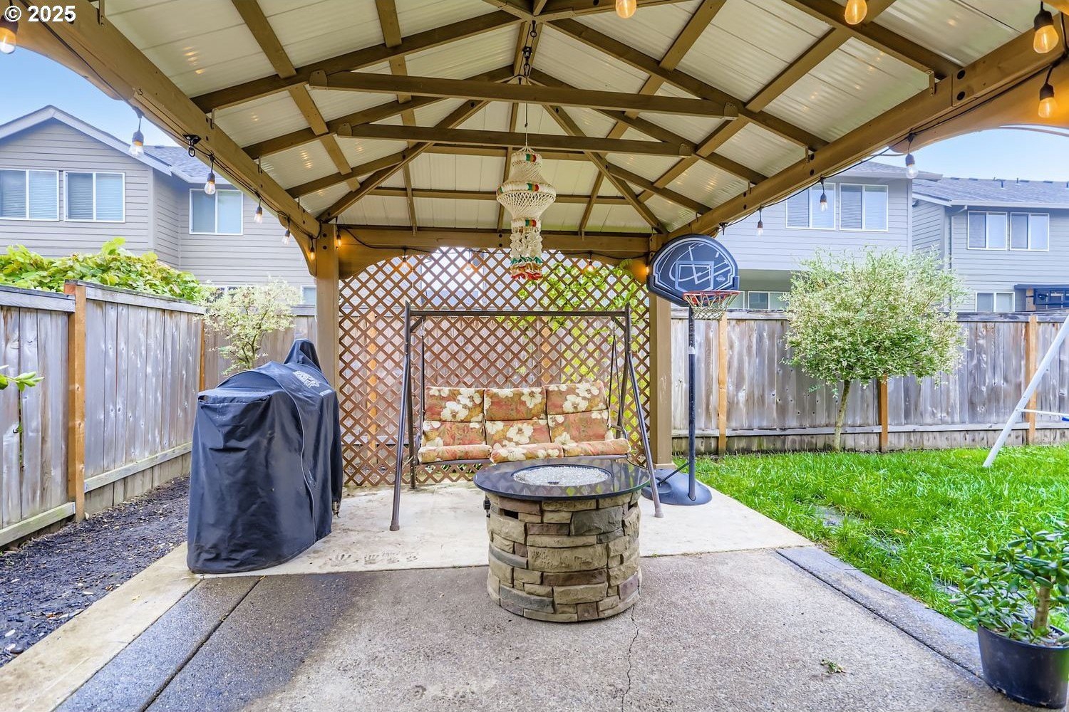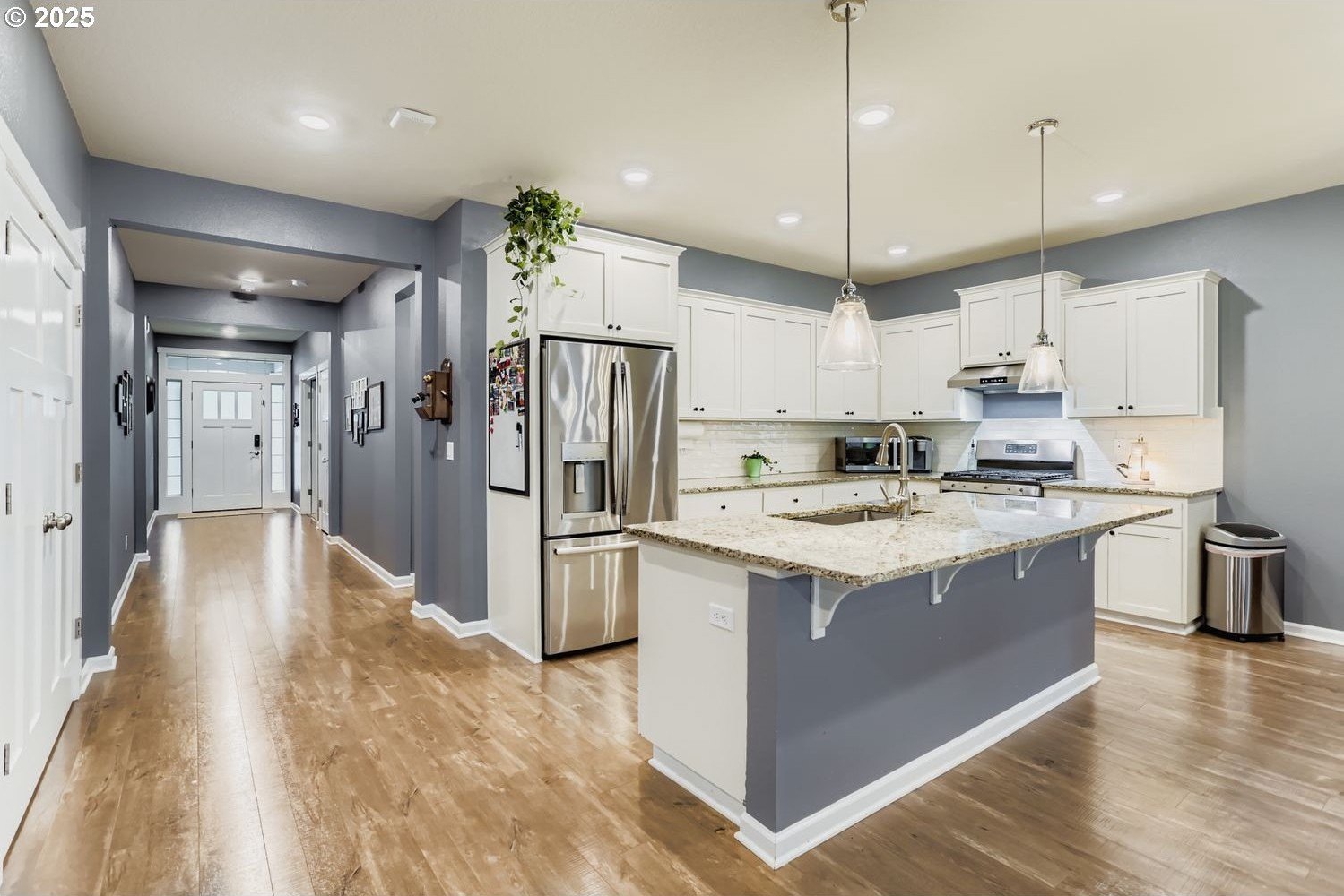 Better than new! This immaculate single-level home in the desirable Big Oak at Brookside community combines comfort, efficiency, and style. Built in 2018, it features high ceilings, upgraded flooring, and a bright open-concept layout that’s perfect for entertaining. The chef’s kitchen boasts a large island, stainless steel appliances, and sleek finishes flowing seamlessly into the great room with a cozy gas fireplace. The spacious primary suite includes a walk-in closet and elegant en-suite bath. Energy-efficient upgrades like a tankless water heater and central A/C add year-round comfort. Step outside to a beautifully landscaped backyard complete with a gazebo — an outdoor bonus ideal for gatherings and quiet evenings alike. Close to parks, trails, and Gresham amenities, this home delivers effortless, modern single-level living.