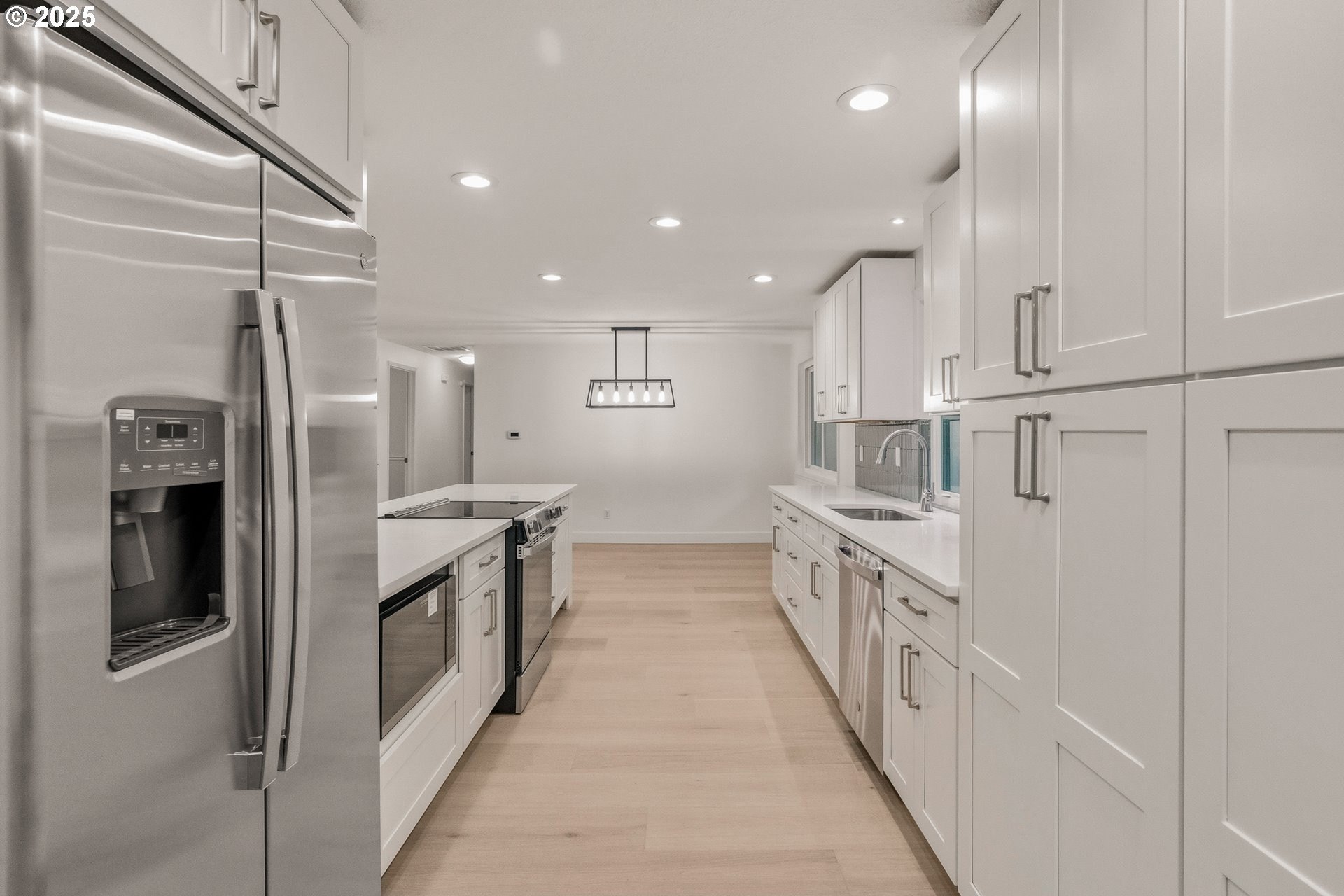 Welcome home to this beautifully remodeled single-level retreat, where modern comfort meets timeless style. Featuring 3 bedrooms & 2 updated baths, this home offers a seamless open floor plan filled with natural light and designer finishes throughout. The stunning kitchen boasts sleek countertops, new cabinetry, and stainless steel appliances — perfect for both everyday living and entertaining. Step outside to your expansive yard, ideal for outdoor gatherings, gardening, or simply relaxing in your own private oasis. With thoughtful updates, quiet neighborhood, minimal step entry and easy access to freeways...this move-in-ready gem combines convenience, charm, and plenty of space to make it your forever home.