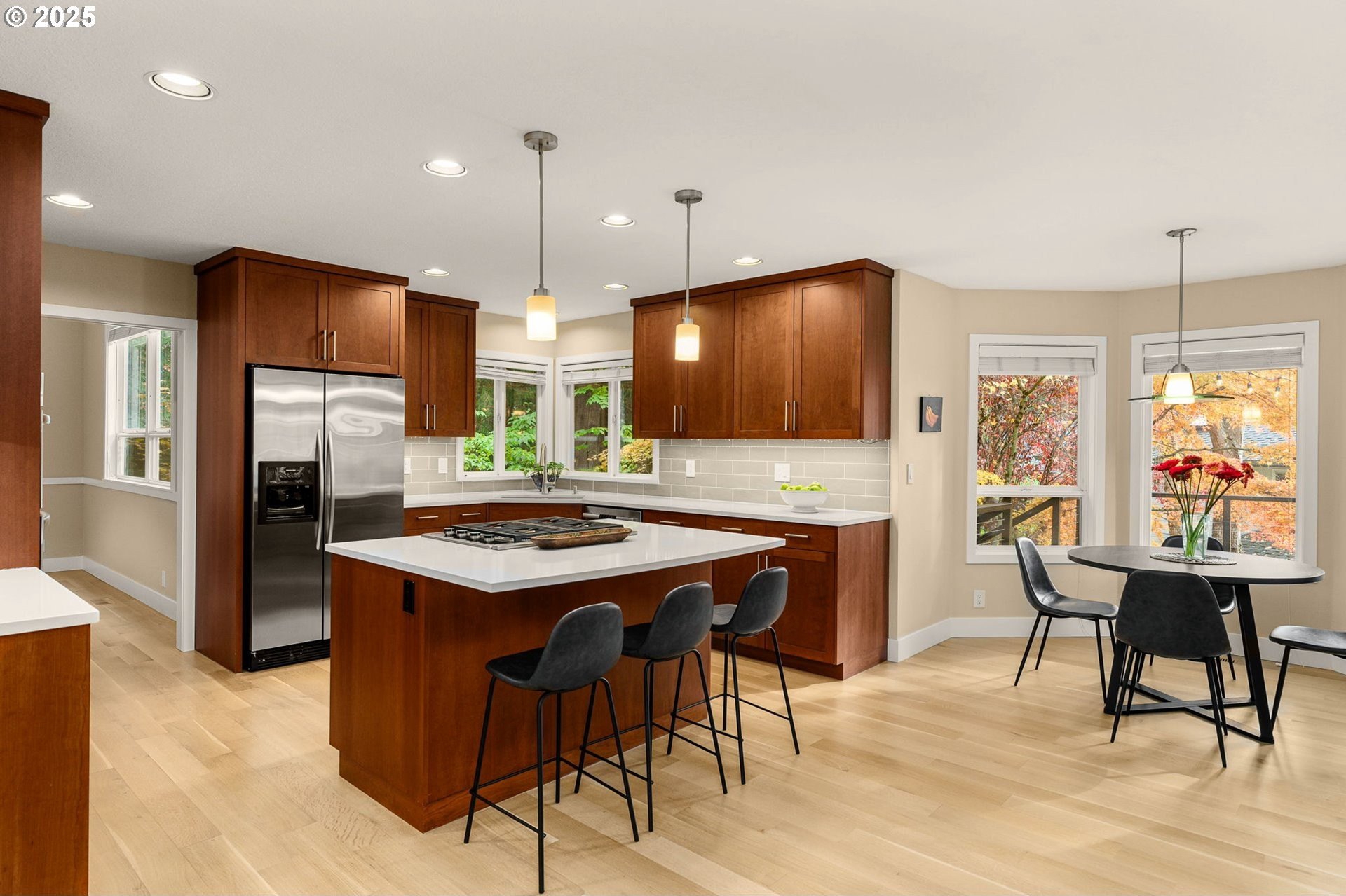 Welcome to this stunning home in the prestigious Murrayhill neighborhood, offering a perfect blend of comfort, sophistication, and tranquility.Featuring 3 spacious bedrooms, a large office, and an open-concept floor plan, this home is designed for modern living. Wood floors on the main level add warmth and elegance throughout the living spaces. The chef-inspired kitchen is equipped with high-end built-in appliances, an expansive pantry, and generous counter space—perfect for cooking, entertaining, and gathering with ease.Situated on a corner lot with nearly a quarter acre of wooded privacy, every window frames serene tree views, creating a peaceful retreat from daily life. Enjoy a newer deck, ideal for outdoor entertaining or relaxing in nature.The primary suite serves as a private sanctuary with heated tile floors, newer carpet, a soaking tub, and a separate walk-in shower. Additional upgrades include new gutters, new insulation on the lower level, a newer sewer line, and an EV charger for modern convenience.This home is move-in ready before Christmas and includes all appliances, washer and dryer, a garage freezer, and even a Christmas tree—making your transition effortless. The oversized 2-car garage, attic and tall crawlspace offers ample storage for all your needs.Located on tree-lined streets within walking distance to Nancy Riles Elementary, parks, trails, community pools, tennis courts, a community room, and coffee shops, gyms, a movie theater, grocery stores, and restaurants, this home offers both convenience and a vibrant lifestyle.As an Oregon-licensed real estate broker, the owner has carefully maintained and upgraded this home, ensuring a move-in ready experience for its next owner.Experience the perfect blend of comfort, style, and location — your Murrayhill retreat awaits. Open Sat & Sun 12-2pm.