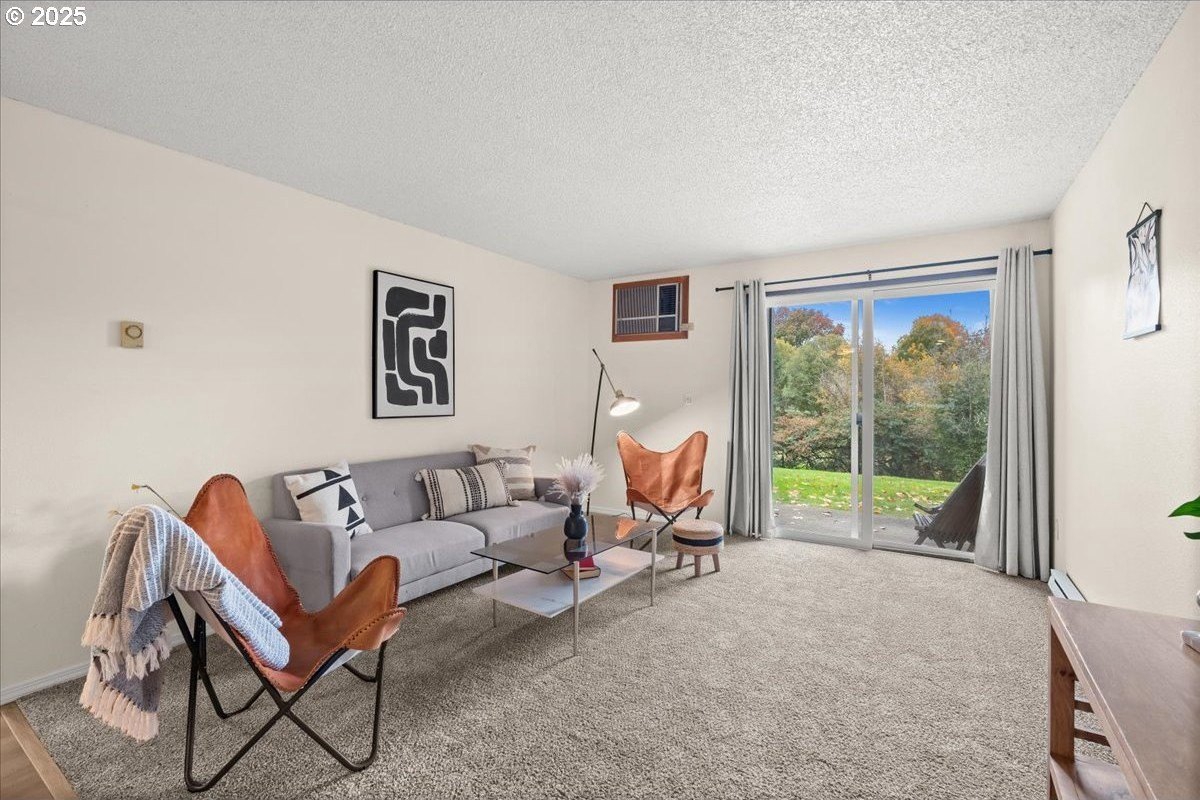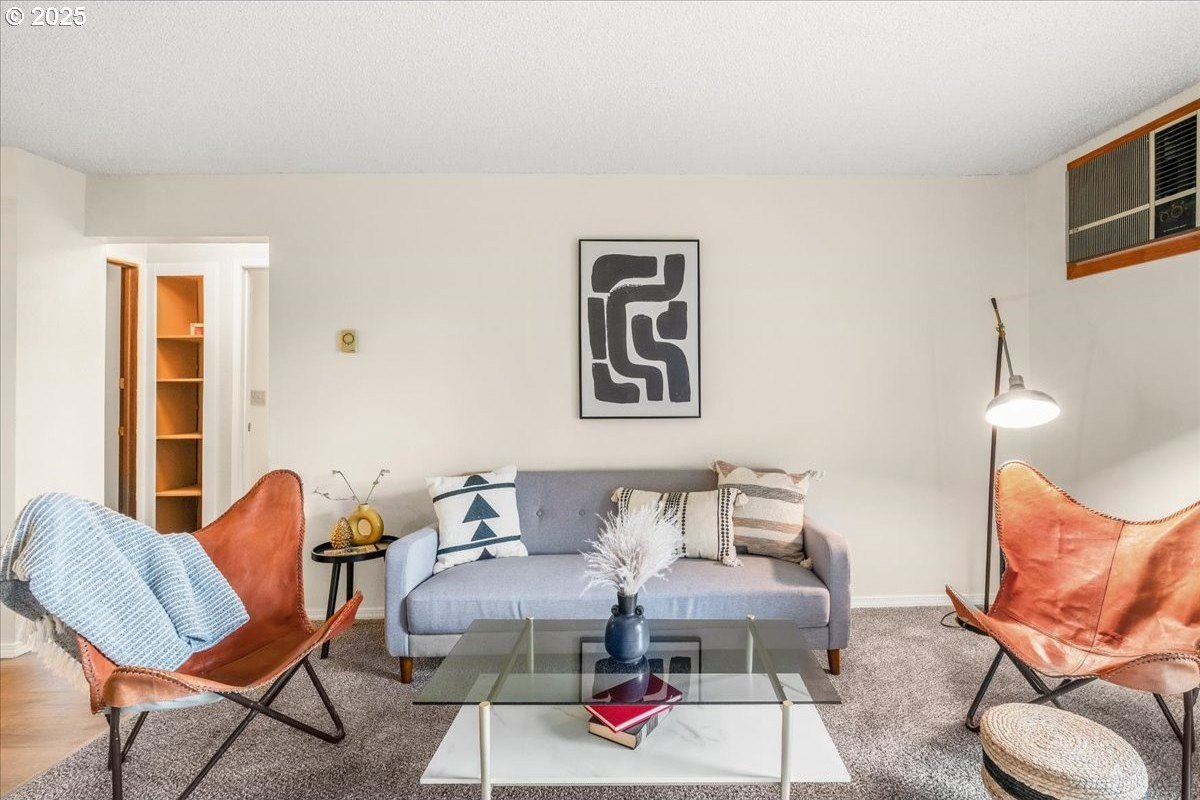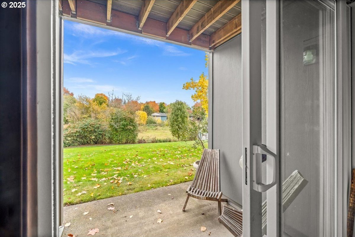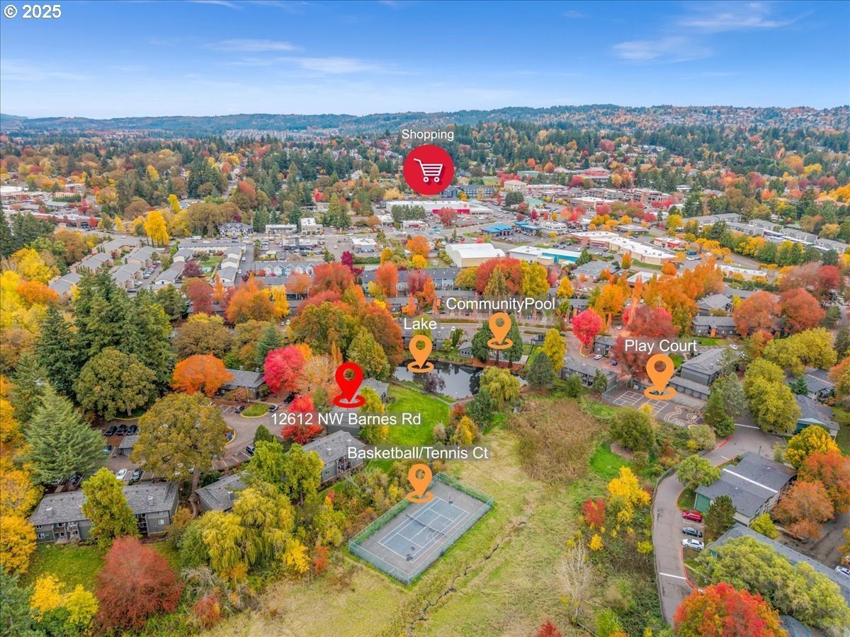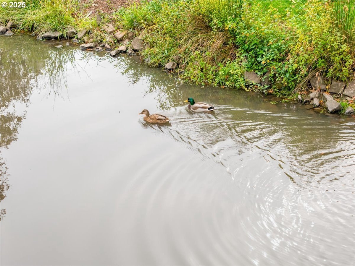 Lovingly updated condo with a cute vintage style! Nestled in a quiet nook of the community, this delightful 2-bedroom home features a nearly brand-new exterior envelope thanks to a well cared for community. A nice ground-level unit with a reserved parking space just steps from the entry. It boasts a private back patio that opens directly to a lush lawn and community green space—an ideal spot for morning coffee, fresh air, and quiet relaxation. Inside, enjoy the ease of two in-unit laundry options, a bedroom with a convenient half-bath ensuite, plus a full bathroom. Large windows invite natural light and offer tranquil views of the greenspace and shimmering pond. Updated flooring and paint throughout. The HOA has completed extensive exterior renovations including new siding, windows, doors, paint, paving, stairwells, and more. Your dues cover water, sewer, garbage, exterior maintenance, and access to fantastic amenities—pool, recreation room, tennis courts, walking trails, and scenic pond views.Perfectly situated minutes from tons of amenities-Market of Choice, Home Depot, Grand Central Bakery, Laughing planet, Hwy 217 & 26, and the MAX line, this home offers low-maintenance living in a peaceful natural setting with unbeatable convenience.