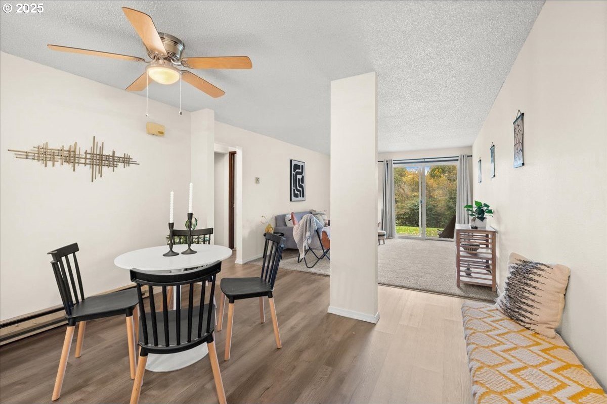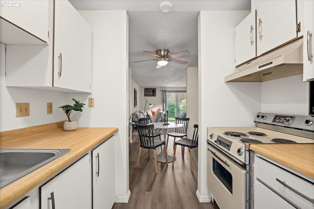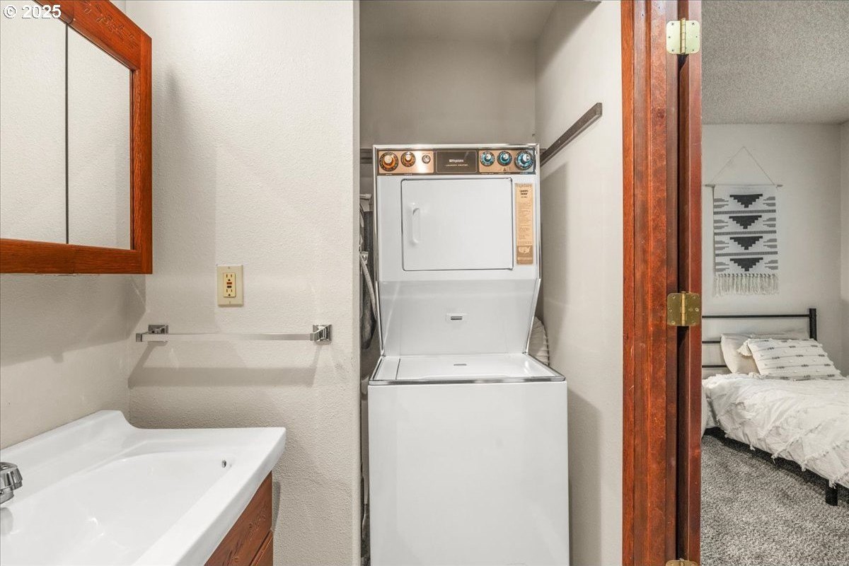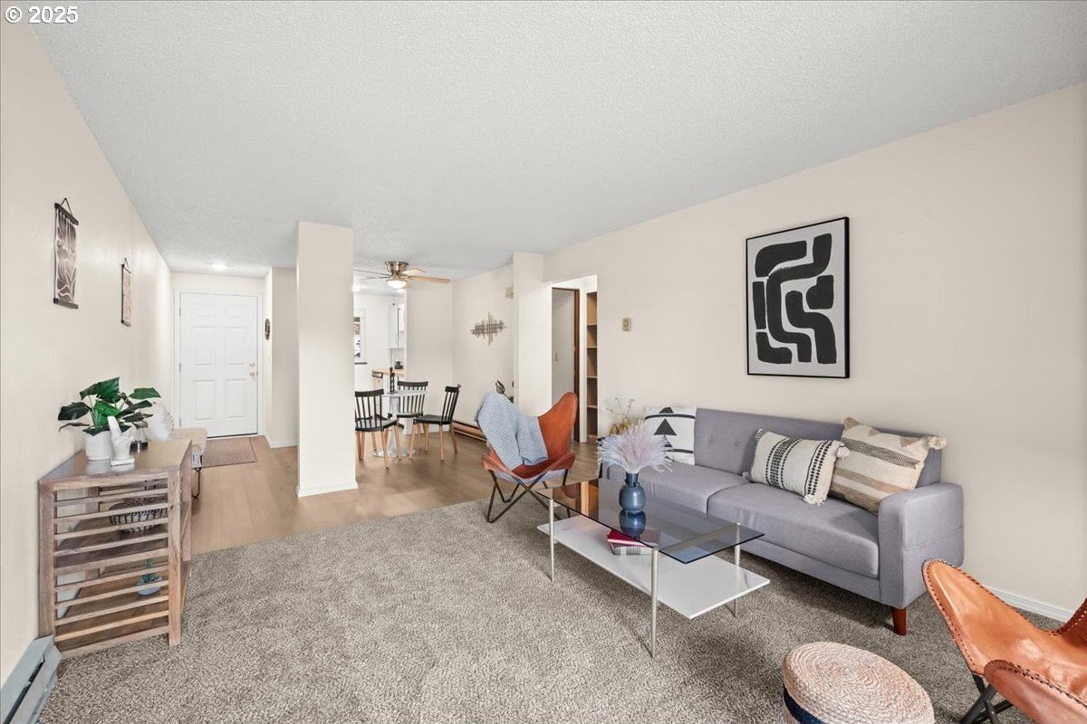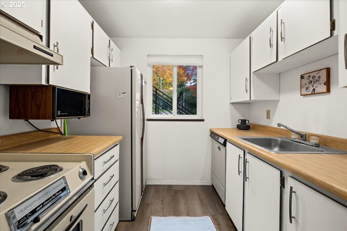 Lovingly updated condo with a cute vintage style! Nestled in a quiet nook of the community, this delightful 2-bedroom home features a nearly brand-new exterior envelope thanks to a well cared for community. A nice ground-level unit with a reserved parking space just steps from the entry. It boasts a private back patio that opens directly to a lush lawn and community green space—an ideal spot for morning coffee, fresh air, and quiet relaxation. Inside, enjoy the ease of two in-unit laundry options, a bedroom with a convenient half-bath ensuite, plus a full bathroom. Large windows invite natural light and offer tranquil views of the greenspace and shimmering pond. Updated flooring and paint throughout. The HOA has completed extensive exterior renovations including new siding, windows, doors, paint, paving, stairwells, and more. Your dues cover water, sewer, garbage, exterior maintenance, and access to fantastic amenities—pool, recreation room, tennis courts, walking trails, and scenic pond views.Perfectly situated minutes from tons of amenities-Market of Choice, Home Depot, Grand Central Bakery, Laughing planet, Hwy 217 & 26, and the MAX line, this home offers low-maintenance living in a peaceful natural setting with unbeatable convenience.