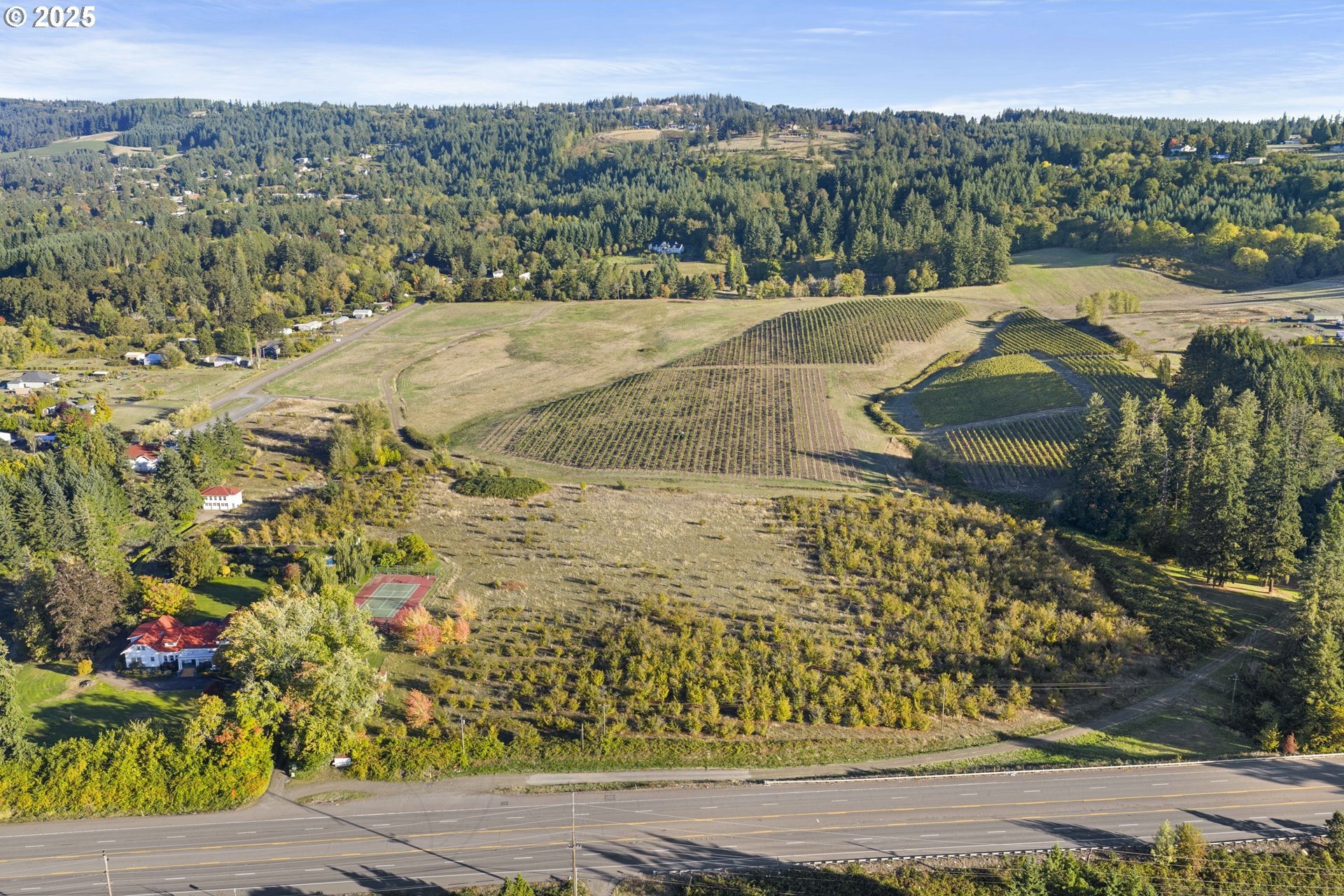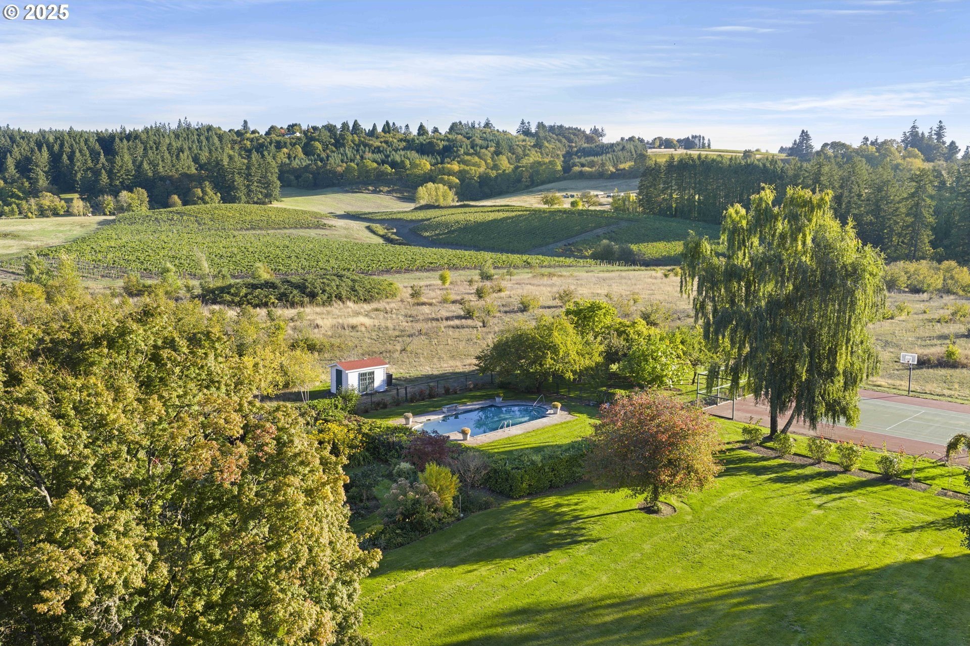 A landmark estate at the gateway to Oregon’s Willamette Valley wine country, Springbrook Hazelnut Farm blends historic elegance, agricultural beauty, and modern opportunity. Established in 1912 and listed on the National Register of Historic Places, this storied 21.5± acre property features a grand 6,782± sqft craftsman / bungalow residence with seven bedrooms, three full and three half baths, a charming inground pool, tennis court, gardens and exquisite period details throughout.The estate includes three contributing historic structures: a 913 sqft renovated carriage house with apartment and workshop (active as a by-month Airbnb), a charming 662 sqft caretaker’s cottage, and a 5,000± sq ft timber-framed barn currently leased to the acclaimed Wolves & People Farmhouse Brewery (brewery business excluded; lease discussions optional).Surrounded by orchards, gardens, and a pond alive with wildlife, the setting reflects over a century of Oregon’s agricultural story. EF-20 zoning and the property’s established hospitality history may allow for multiple pathways like an owner-occupied bed & breakfast, farm-to-table retreat, or agri-business expansion within the Springbrook Corridor. Just minutes from Rex Hill, The Allison Inn & Spa, and downtown Newberg, the location merges rural tranquility with exceptional accessibility.Springbrook Hazelnut Farm has long been a cornerstone of Oregon’s food and wine culture, home to early cooperages, pioneering wineries, and now a celebrated farmhouse brewery. Its history, scale, and zoning create a rare chance to own an estate that is both heritage and horizon, a place where land, craft, and the future of Oregon’s wine country come beautifully together. Ideally located within 15 miles of the Aurora and McMinnville FBOs and about 30 miles from Portland International Airport. At Springbrook Hazelnut Farm, the address is the story, and the story is still unfolding.