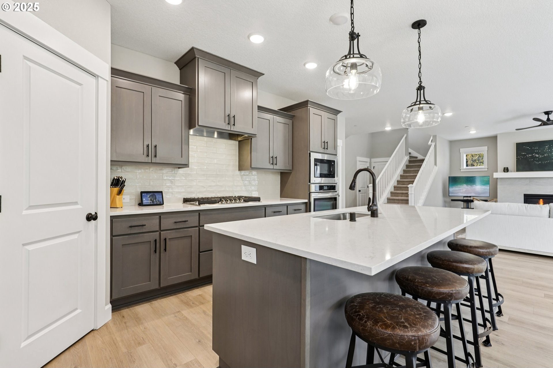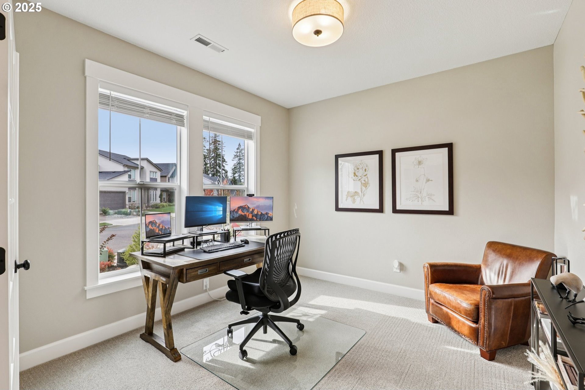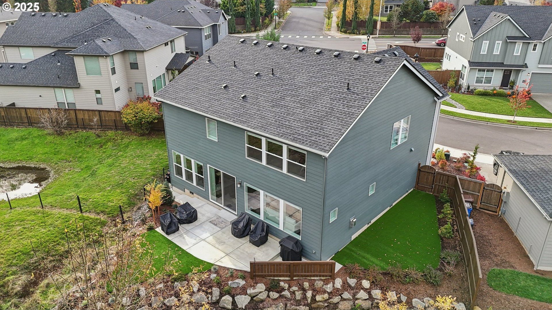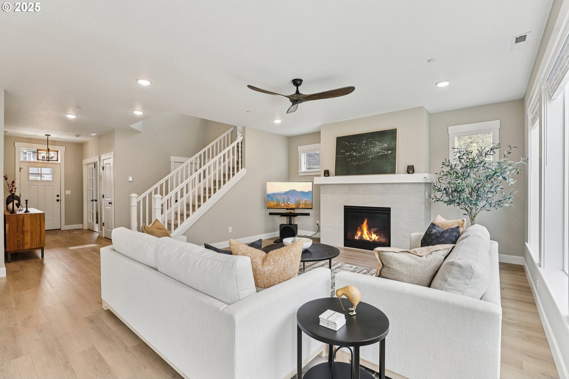 Immaculate Camas home backing to protected greenspace offers the perfect blend of sophistication, comfort, and natural beauty. Enjoy beautiful sight lines, exceptional privacy, peaceful presence of mature trees and the occasional family of deer. The home’s freshly painted interior, upgraded lighting, and newly installed EV charger reflect thoughtful care and modern convenience. The open-concept main floor features a spacious dining area, a large quartz island perfect for gatherings, and a welcoming living room with a gas fireplace. A private office on the main level provides an ideal space for work or quiet reflection. Oversized windows throughout the home invite abundant natural light, enhancing the home’s airy ambiance. Upstairs, a stylish loft with a custom feature wall serves beautifully as a second living area. The primary suite impresses with expansive windows, an elegantly updated ensuite, and a meticulously organized walk-in closet. Two additional bedrooms and a conveniently located laundry room complete the upper level.Outside, the extended patio with concrete and turf creates an inviting setting for outdoor relaxation and entertaining. Don’t miss the side yard - perfect for additional guests or play!