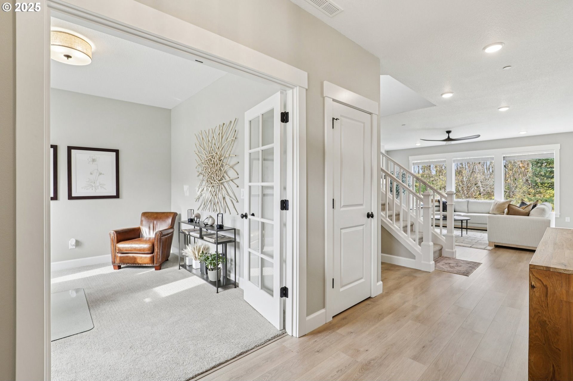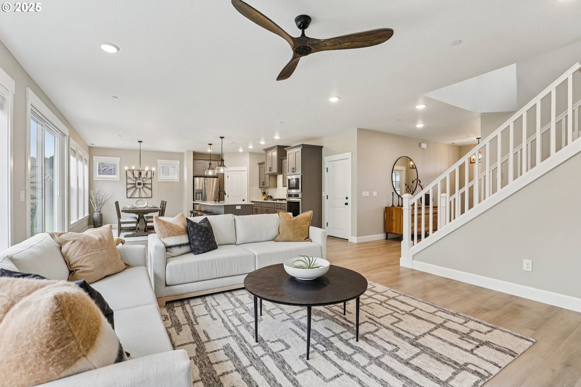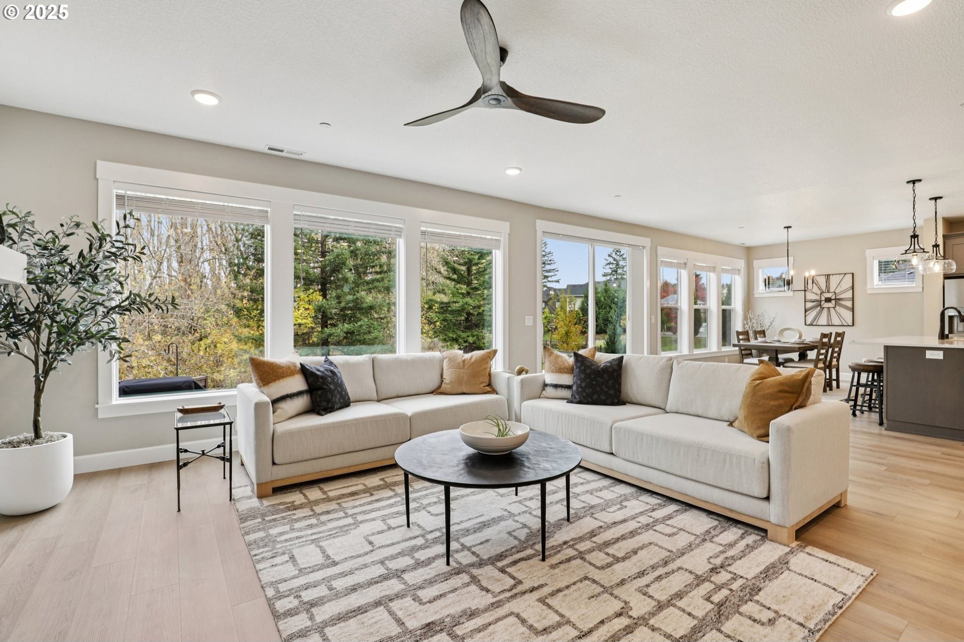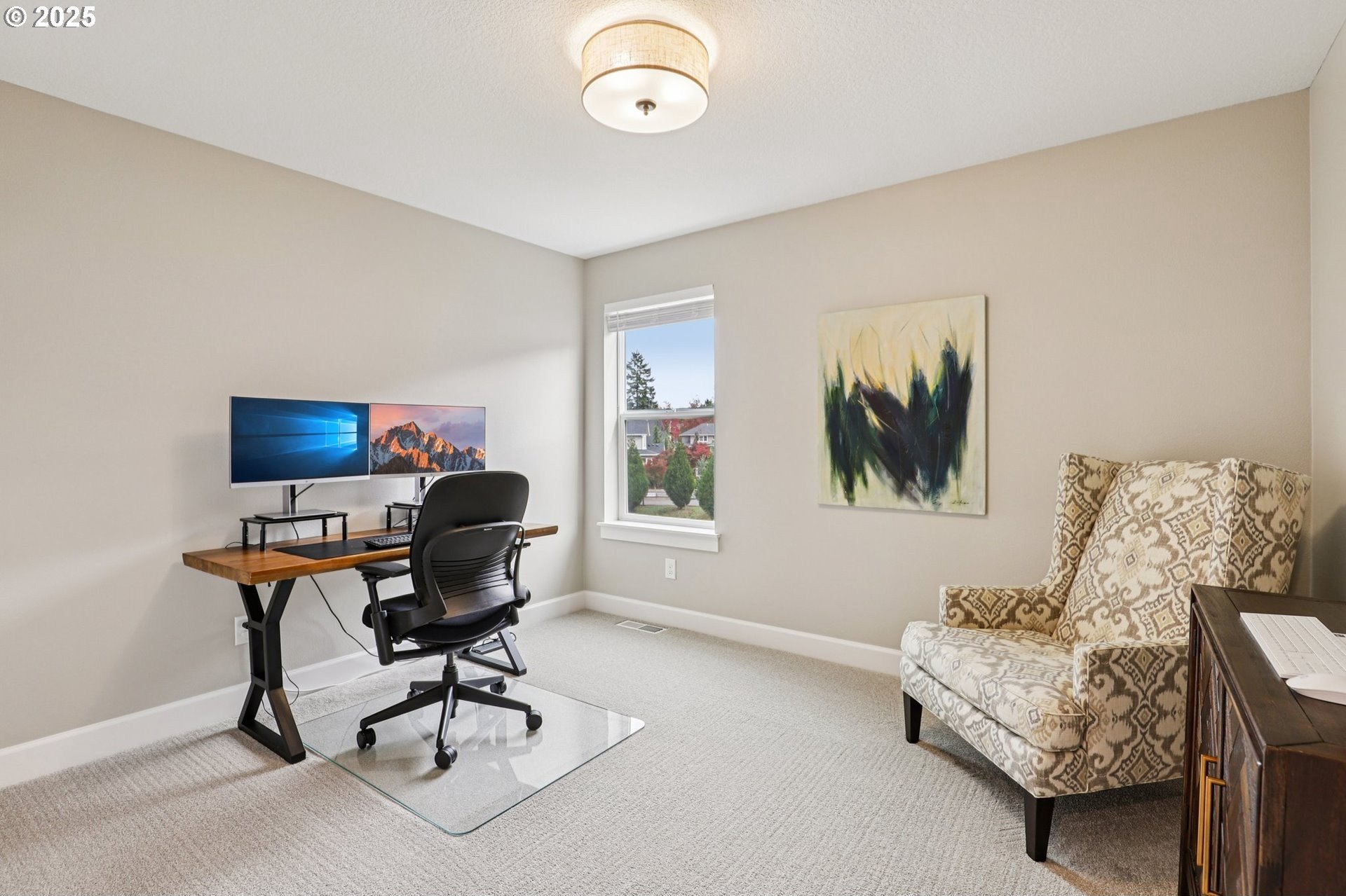 Immaculate Camas home backing to protected greenspace offers the perfect blend of sophistication, comfort, and natural beauty. Enjoy beautiful sight lines, exceptional privacy, peaceful presence of mature trees and the occasional family of deer. The home’s freshly painted interior, upgraded lighting, and newly installed EV charger reflect thoughtful care and modern convenience. The open-concept main floor features a spacious dining area, a large quartz island perfect for gatherings, and a welcoming living room with a gas fireplace. A private office on the main level provides an ideal space for work or quiet reflection. Oversized windows throughout the home invite abundant natural light, enhancing the home’s airy ambiance. Upstairs, a stylish loft with a custom feature wall serves beautifully as a second living area. The primary suite impresses with expansive windows, an elegantly updated ensuite, and a meticulously organized walk-in closet. Two additional bedrooms and a conveniently located laundry room complete the upper level.Outside, the extended patio with concrete and turf creates an inviting setting for outdoor relaxation and entertaining. Don’t miss the side yard - perfect for additional guests or play!