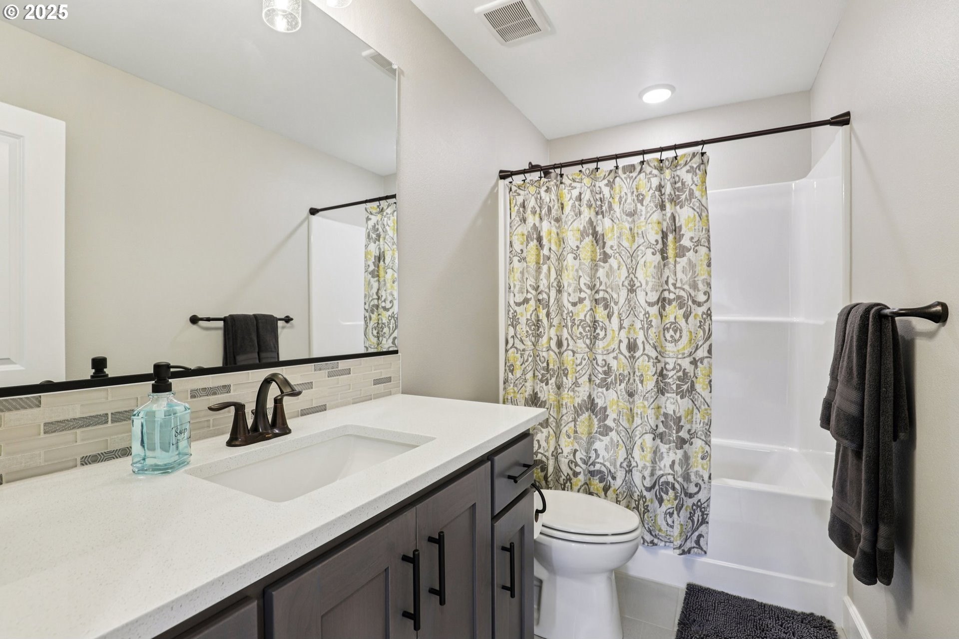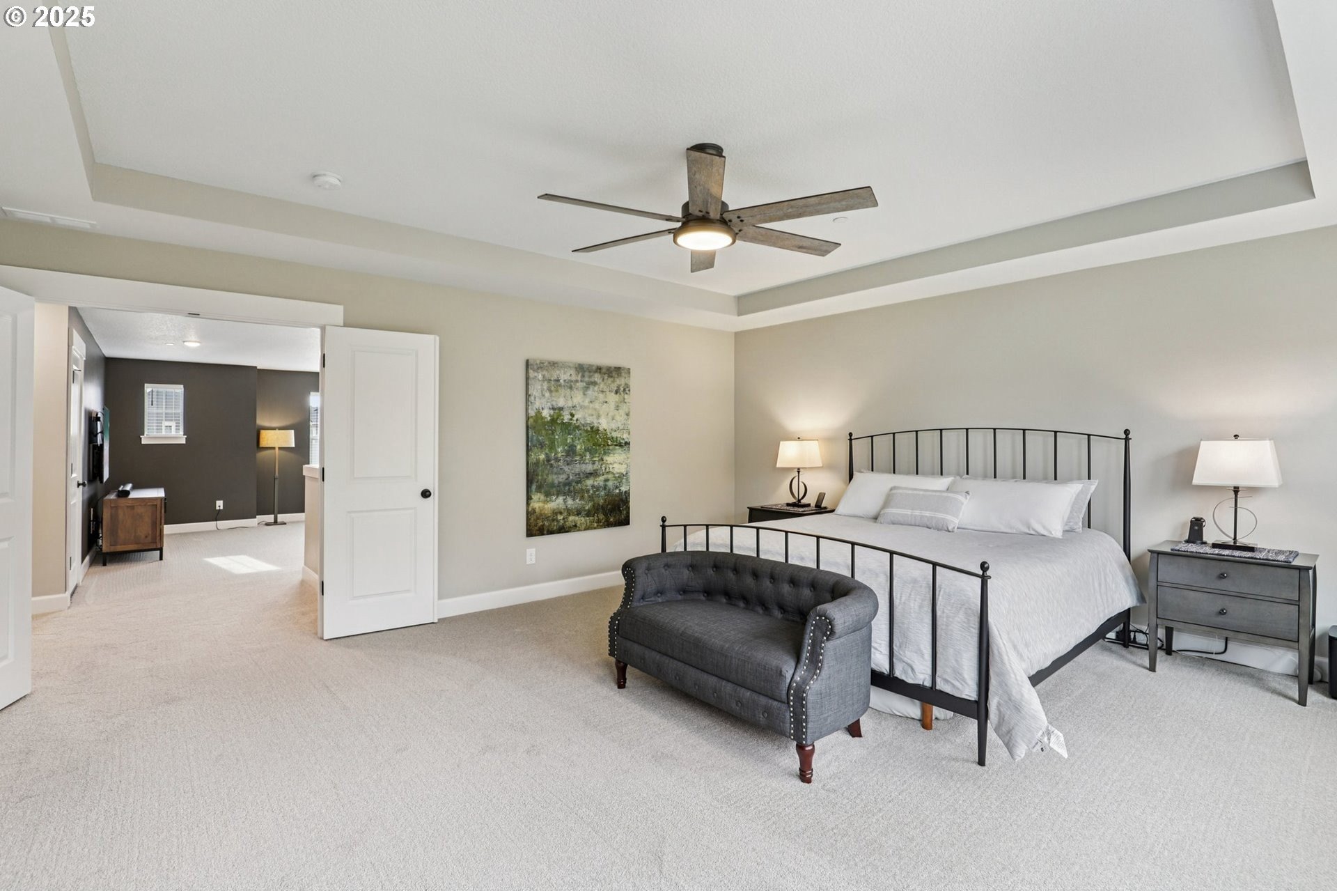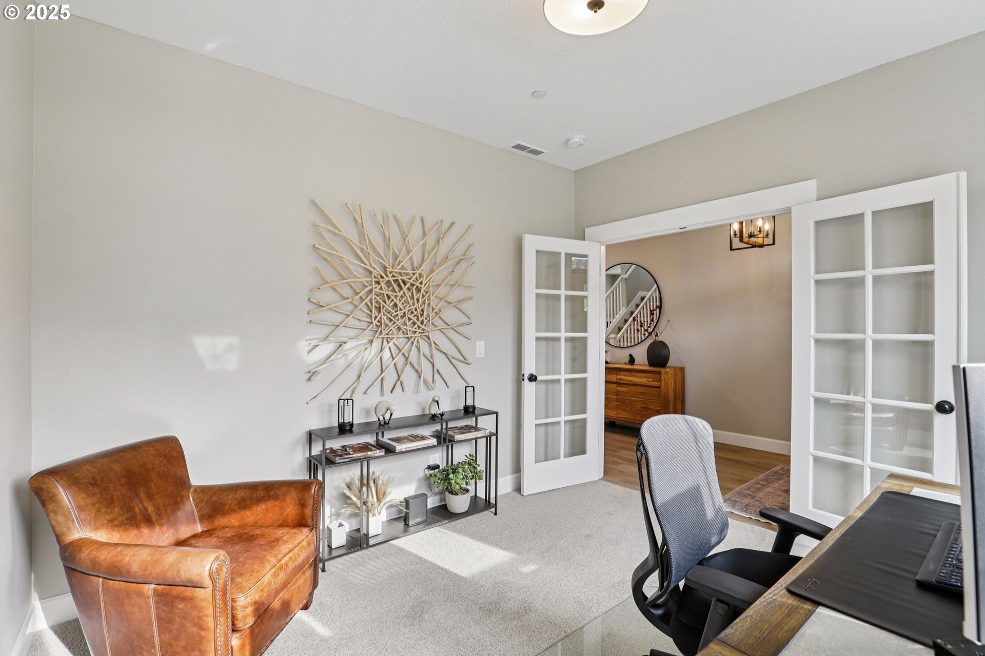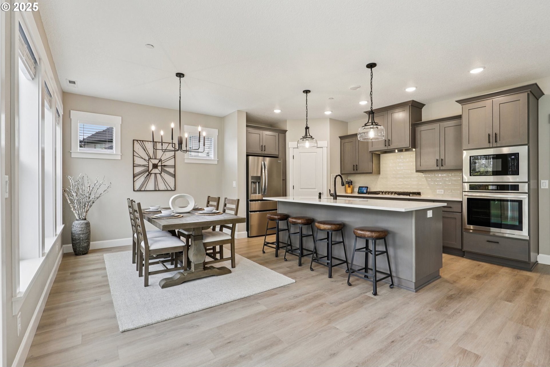 Immaculate Camas home backing to protected greenspace offers the perfect blend of sophistication, comfort, and natural beauty. Enjoy beautiful sight lines, exceptional privacy, peaceful presence of mature trees and the occasional family of deer. The home’s freshly painted interior, upgraded lighting, and newly installed EV charger reflect thoughtful care and modern convenience. The open-concept main floor features a spacious dining area, a large quartz island perfect for gatherings, and a welcoming living room with a gas fireplace. A private office on the main level provides an ideal space for work or quiet reflection. Oversized windows throughout the home invite abundant natural light, enhancing the home’s airy ambiance. Upstairs, a stylish loft with a custom feature wall serves beautifully as a second living area. The primary suite impresses with expansive windows, an elegantly updated ensuite, and a meticulously organized walk-in closet. Two additional bedrooms and a conveniently located laundry room complete the upper level.Outside, the extended patio with concrete and turf creates an inviting setting for outdoor relaxation and entertaining. Don’t miss the side yard - perfect for additional guests or play!