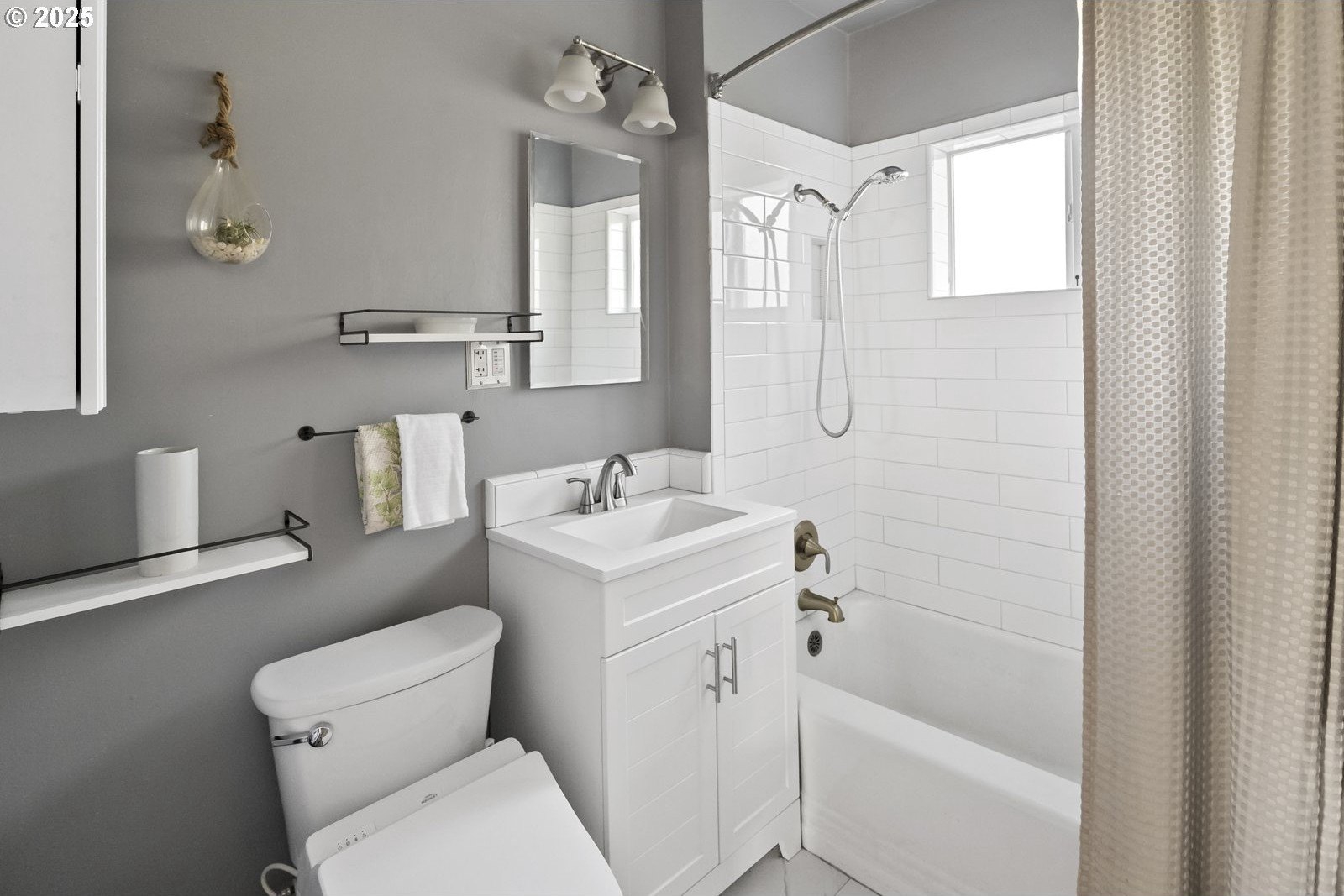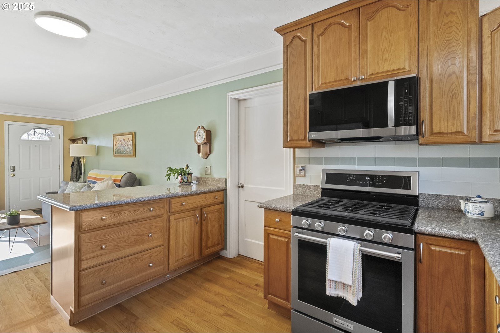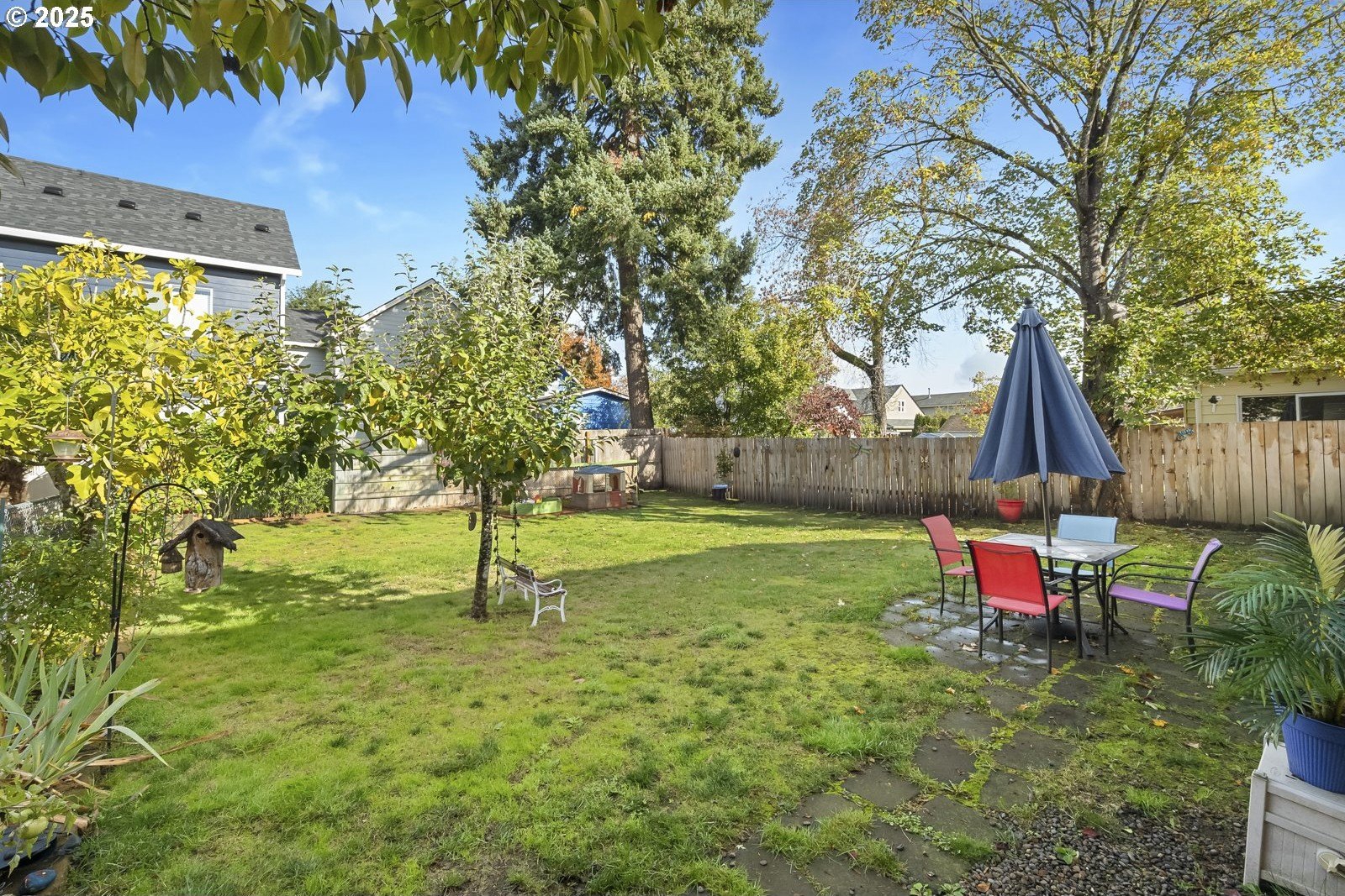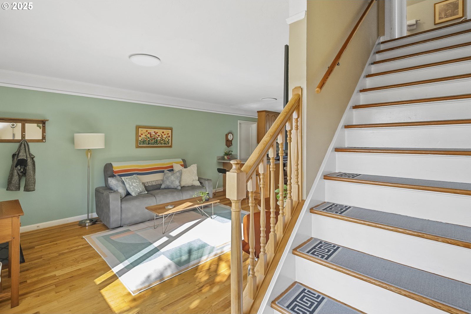Effortlessly inviting with all the right updates, this Montavilla bungalow packs a surprising punch. This 4 bed, 1.5 bath home pairs thoughtful upgrades with a versatile layout for easy living. Original hardwoods and an open flow greet you at the door, leading to a roomy kitchen with a generous peninsula and eat bar—perfect for meal prep, morning coffee, or afternoon snacks. Newer stainless appliances (including a KitchenAid gas stove!), granite counters, crisp tile backsplash, and ample storage sweeten the deal. The first floor offers true one-level living with two bedrooms—one large enough for a king—plus a recently remodeled full bath with fresh tile, flooring and vanity. Upstairs, two more spacious bedrooms with ceiling fans and newer carpet, plus a convenient half bath offer more flexibility for your home offices, guest rooms, hobby hideouts - you get to choose. (Bonus: enjoy bonus storage in the easily accessible and clean attic crawlspaces). A roomy laundry/mudroom off the kitchen doubles as a pantry and connects to both the garage (with newer electric opener) and the massive, fully fenced backyard. Out back, enjoy outdoor living with a new cedar fence, tool shed, apple and fig trees, and dedicated dog run. Recent updates bring peace of mind: roof (2022), AC (2019), water heater (2020), sewer (2007). Set on a quiet, tree-lined street across from open sports fields buffered by a grassy knoll, this home flawlessly blends city convenience and neighborhood charm. Minutes to Mt. Tabor, Montavilla shops and eats, transit, and both I-205 and I-84. 97 bike score! [Home Energy Score = 1. HES Report at https://rpt.greenbuildingregistry.com/hes/OR10196636]