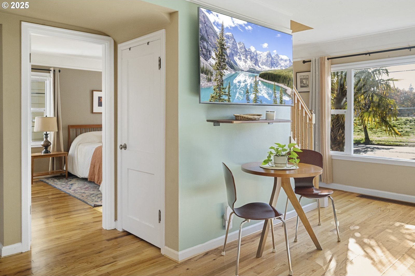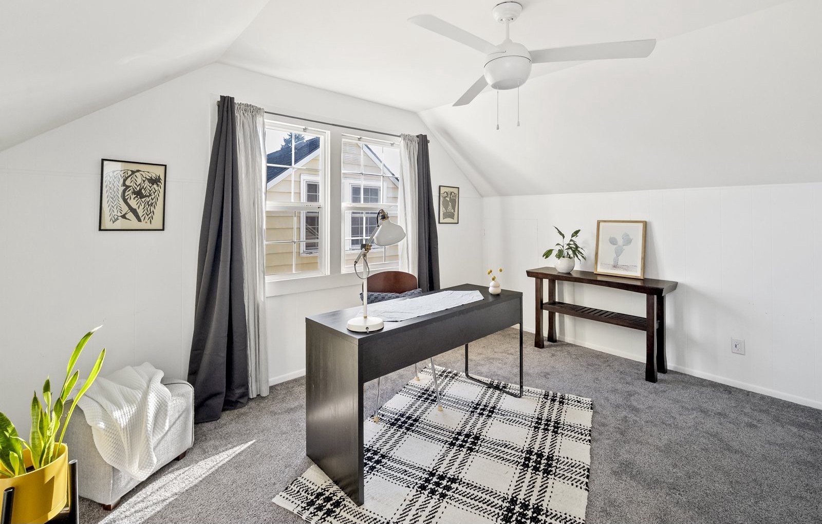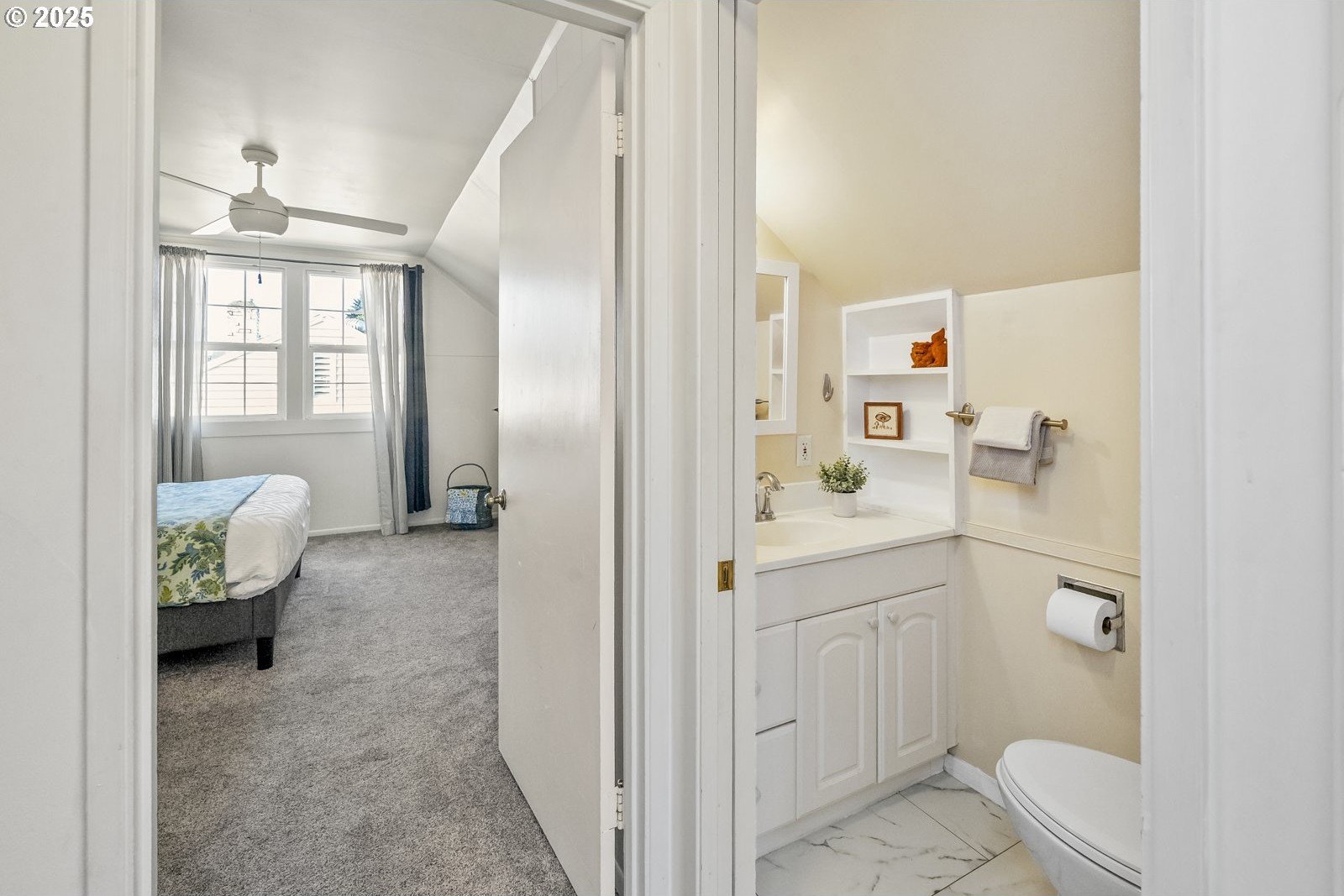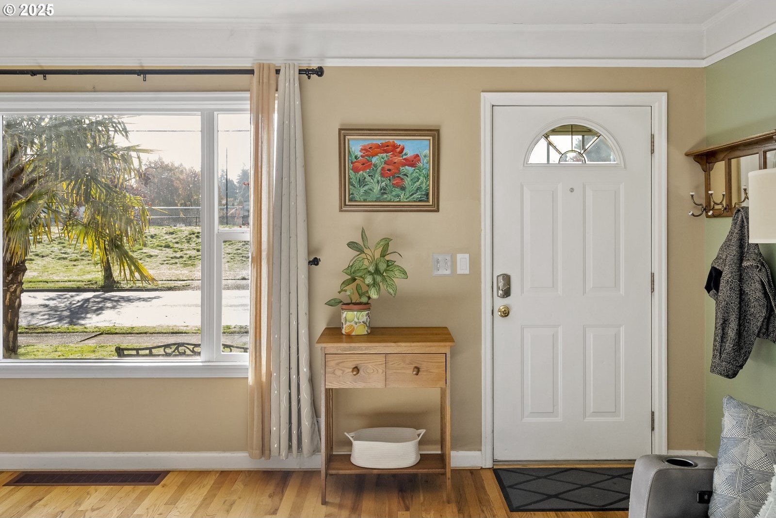 Effortlessly inviting with all the right updates, this Montavilla bungalow packs a surprising punch. This 4 bed, 1.5 bath home pairs thoughtful upgrades with a versatile layout for easy living. Original hardwoods and an open flow greet you at the door, leading to a roomy kitchen with a generous peninsula and eat bar—perfect for meal prep, morning coffee, or afternoon snacks. Newer stainless appliances (including a KitchenAid gas stove!), granite counters, crisp tile backsplash, and ample storage sweeten the deal. The first floor offers true one-level living with two bedrooms—one large enough for a king—plus a recently remodeled full bath with fresh tile, flooring and vanity. Upstairs, two more spacious bedrooms with ceiling fans and newer carpet, plus a convenient half bath offer more flexibility for your home offices, guest rooms, hobby hideouts - you get to choose. (Bonus: enjoy bonus storage in the easily accessible and clean attic crawlspaces). A roomy laundry/mudroom off the kitchen doubles as a pantry and connects to both the garage (with newer electric opener) and the massive, fully fenced backyard. Out back, enjoy outdoor living with a new cedar fence, tool shed, apple and fig trees, and dedicated dog run. Recent updates bring peace of mind: roof (2022), AC (2019), water heater (2020), sewer (2007). Set on a quiet, tree-lined street across from open sports fields buffered by a grassy knoll, this home flawlessly blends city convenience and neighborhood charm. Minutes to Mt. Tabor, Montavilla shops and eats, transit, and both I-205 and I-84. 97 bike score! [Home Energy Score = 1. HES Report at https://rpt.greenbuildingregistry.com/hes/OR10196636]