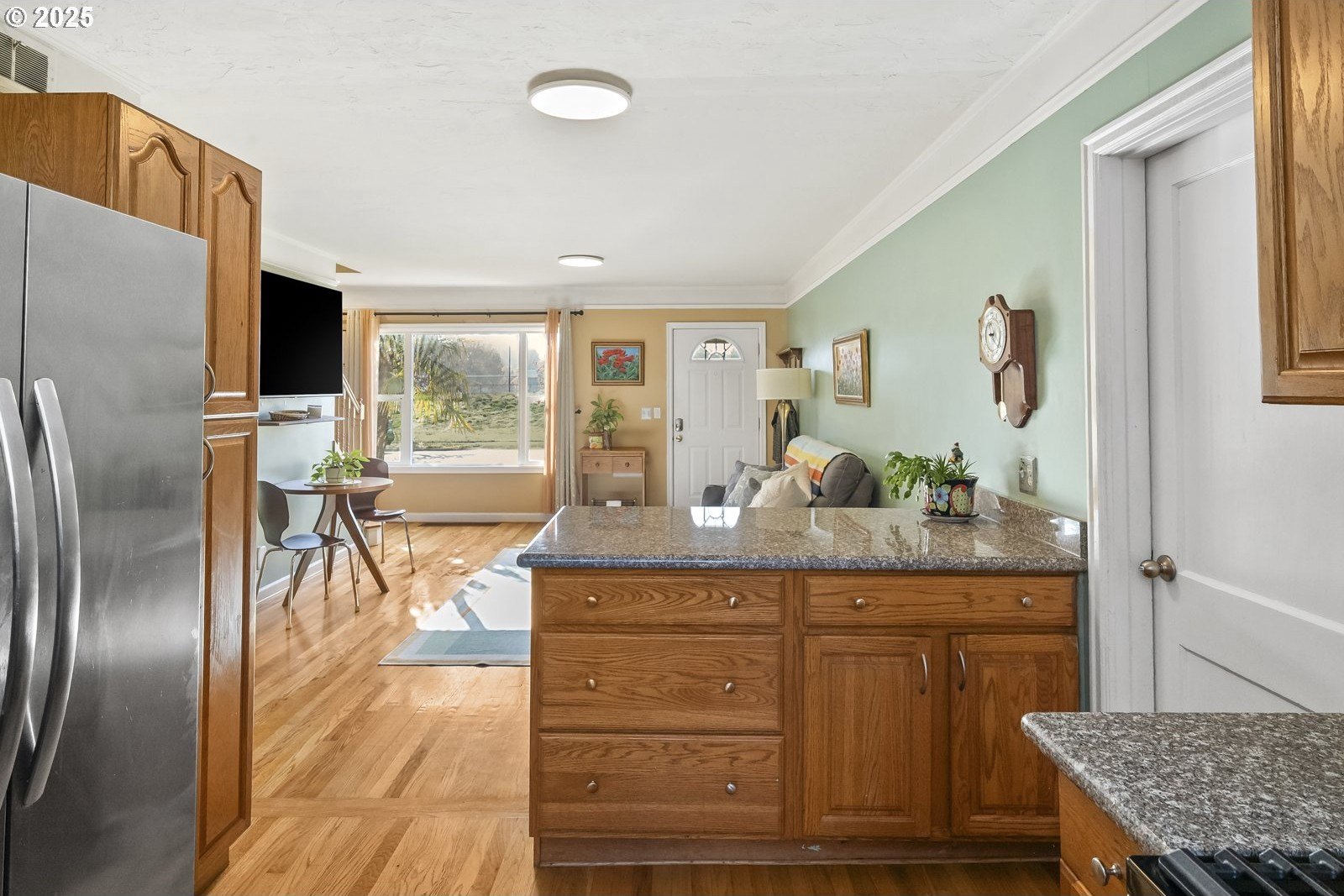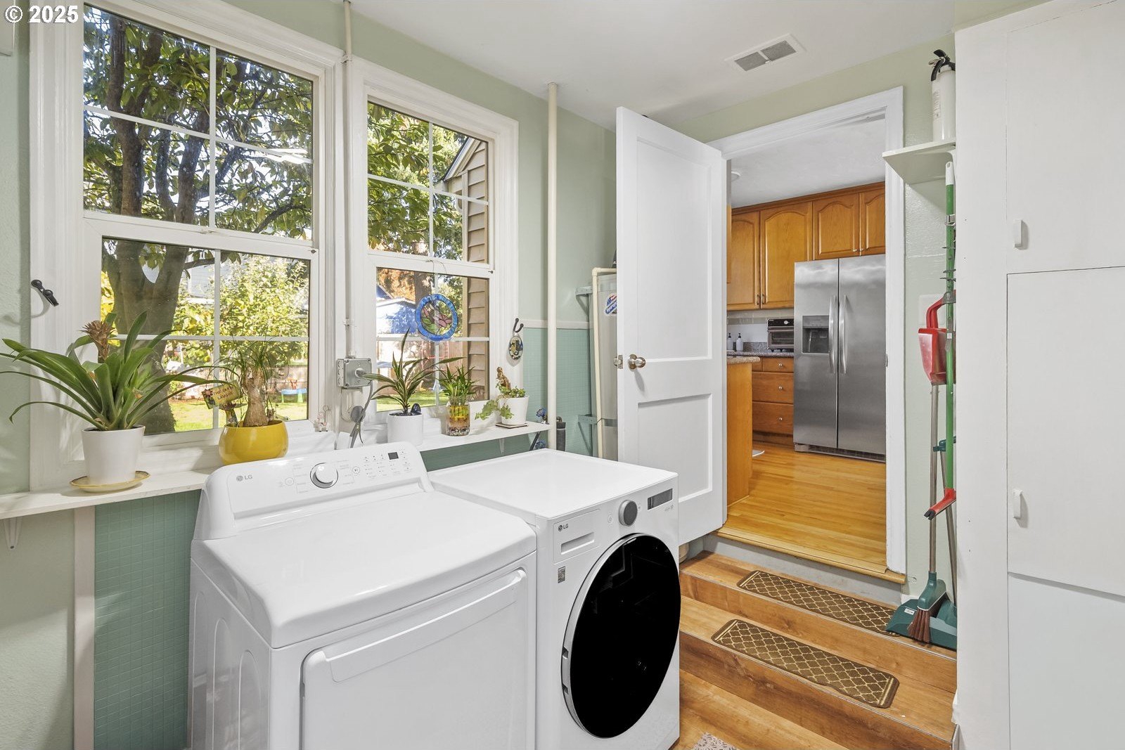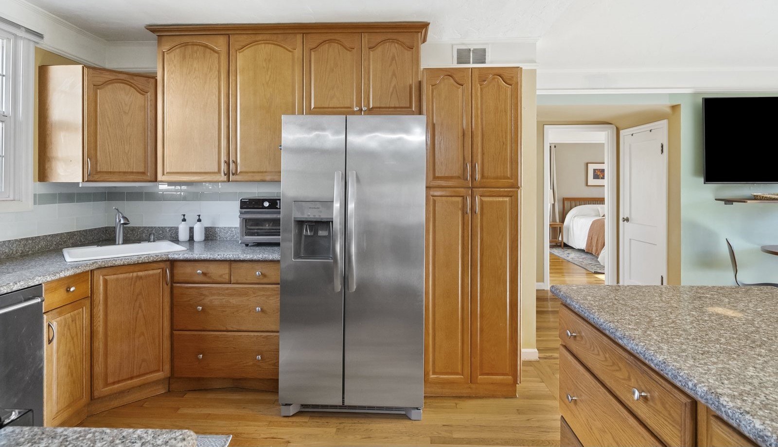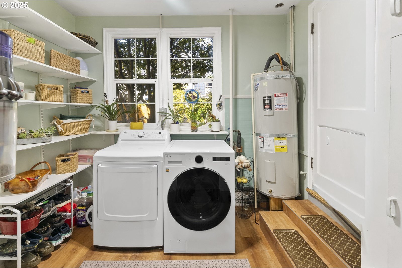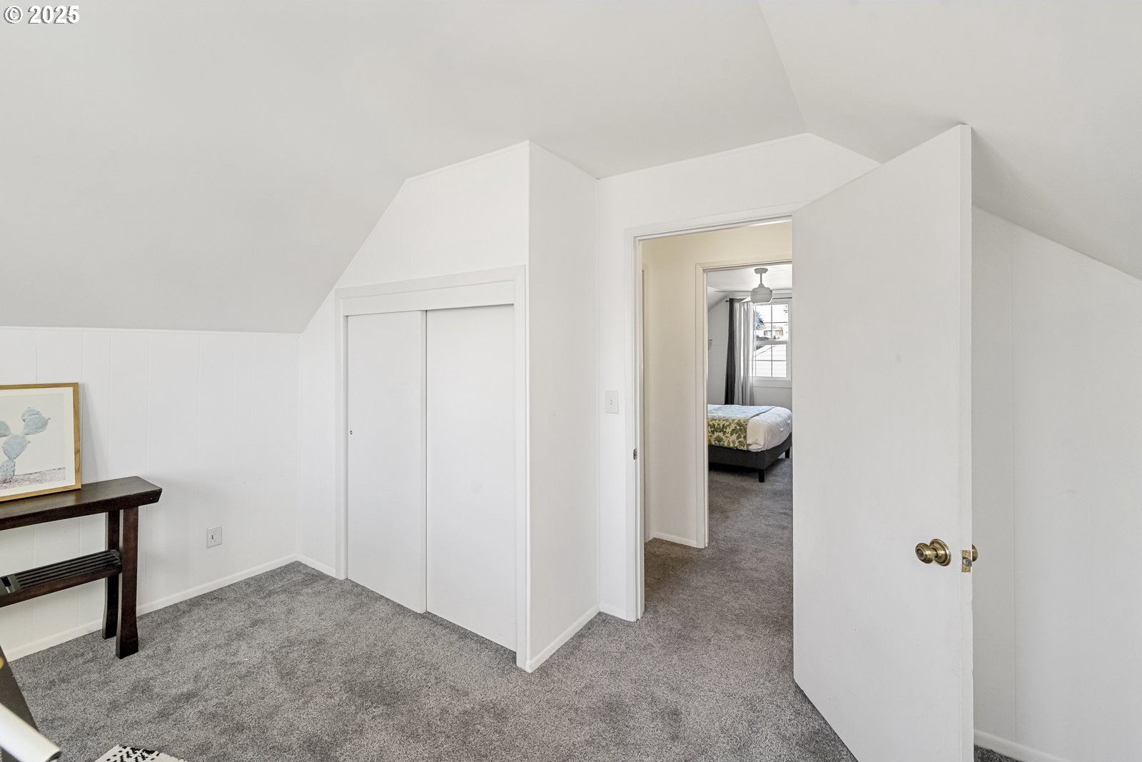 Effortlessly inviting with all the right updates, this Montavilla bungalow packs a surprising punch. This 4 bed, 1.5 bath home pairs thoughtful upgrades with a versatile layout for easy living. Original hardwoods and an open flow greet you at the door, leading to a roomy kitchen with a generous peninsula and eat bar—perfect for meal prep, morning coffee, or afternoon snacks. Newer stainless appliances (including a KitchenAid gas stove!), granite counters, crisp tile backsplash, and ample storage sweeten the deal. The first floor offers true one-level living with two bedrooms—one large enough for a king—plus a recently remodeled full bath with fresh tile, flooring and vanity. Upstairs, two more spacious bedrooms with ceiling fans and newer carpet, plus a convenient half bath offer more flexibility for your home offices, guest rooms, hobby hideouts - you get to choose. (Bonus: enjoy bonus storage in the easily accessible and clean attic crawlspaces). A roomy laundry/mudroom off the kitchen doubles as a pantry and connects to both the garage (with newer electric opener) and the massive, fully fenced backyard. Out back, enjoy outdoor living with a new cedar fence, tool shed, apple and fig trees, and dedicated dog run. Recent updates bring peace of mind: roof (2022), AC (2019), water heater (2020), sewer (2007). Set on a quiet, tree-lined street across from open sports fields buffered by a grassy knoll, this home flawlessly blends city convenience and neighborhood charm. Minutes to Mt. Tabor, Montavilla shops and eats, transit, and both I-205 and I-84. 97 bike score! [Home Energy Score = 1. HES Report at https://rpt.greenbuildingregistry.com/hes/OR10196636]