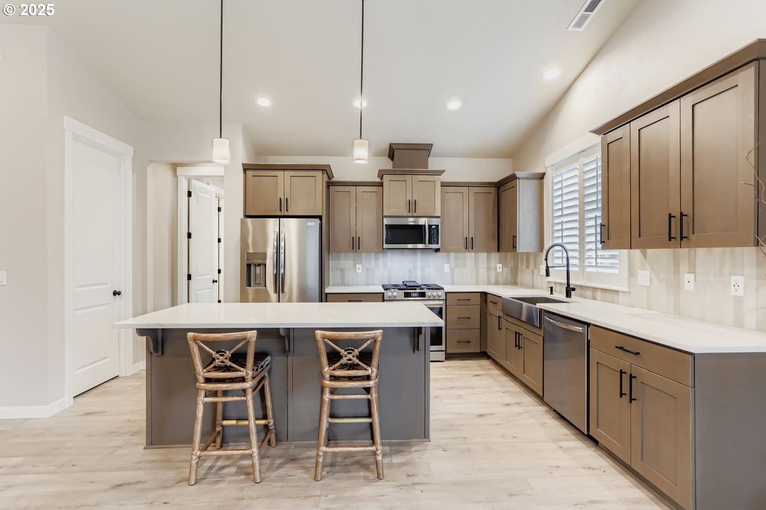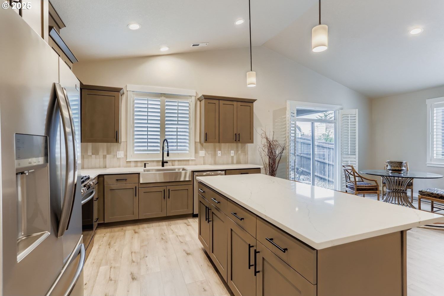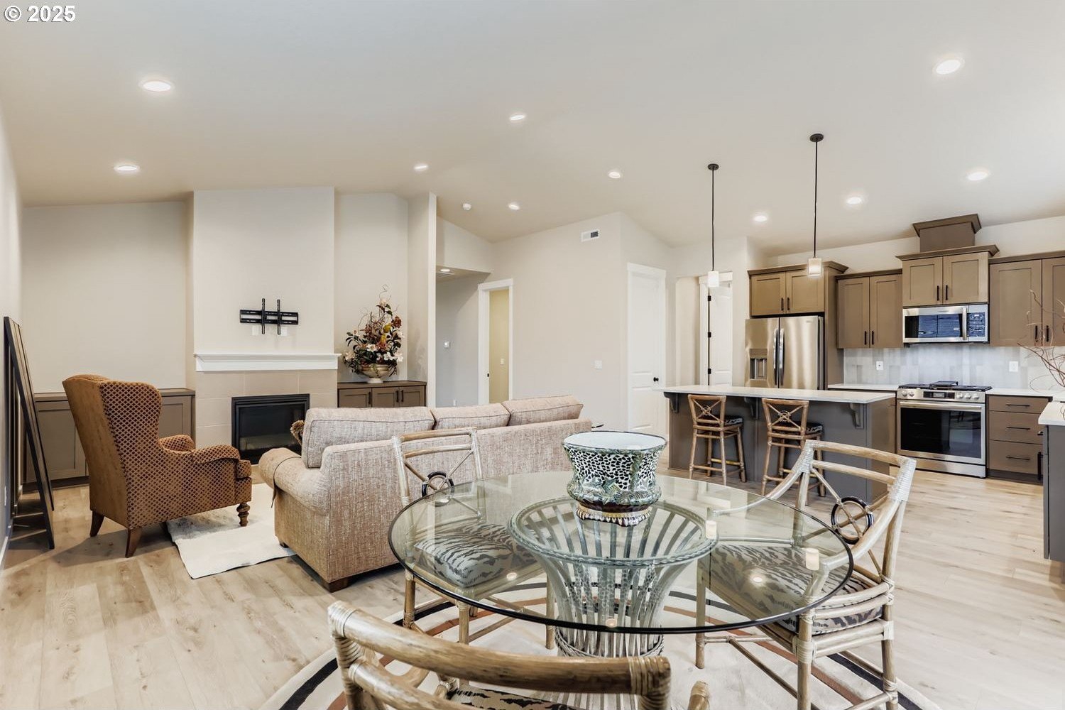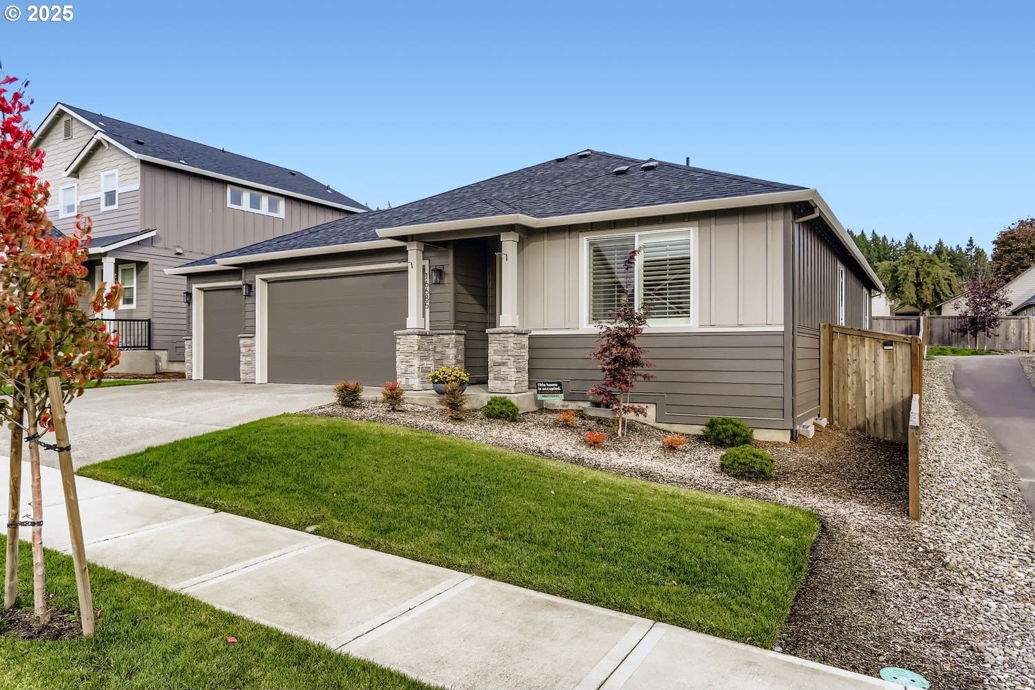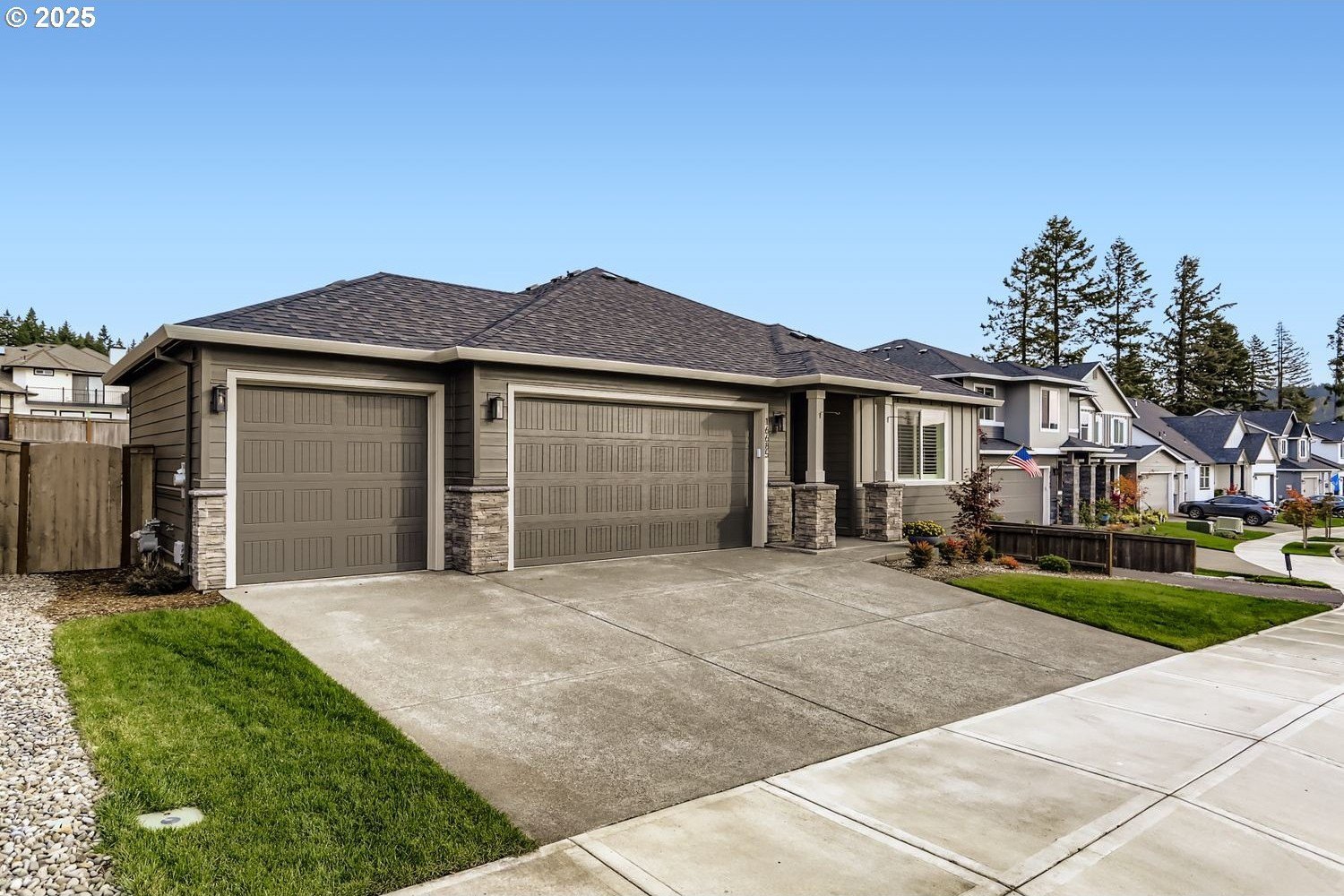 Better than new! Built just one year ago, this immaculate Happy Valley home is packed with luxury upgrades that outshine new construction—without the wait or builder markup. Enjoy plantation shutters, an extended covered patio, central vacuum system, upgraded countertops, and premium flooring throughout.The open-concept great room welcomes you with natural light and high ceilings, seamlessly connecting to a designer kitchen with a large island and elegant finishes. The primary suite offers a spa-inspired retreat with a walk-in closet and beautifully appointed bath.Step outside to the extended covered patio—perfect for entertaining or unwinding after a long day. With its low-maintenance yard, three-car garage, and upgraded features throughout, this home offers comfort, convenience, and sophistication in every detail.Located in one of Happy Valley’s most desirable neighborhoods near parks, shops, and top-rated schools, this one truly outshines new construction and is move-in ready today!