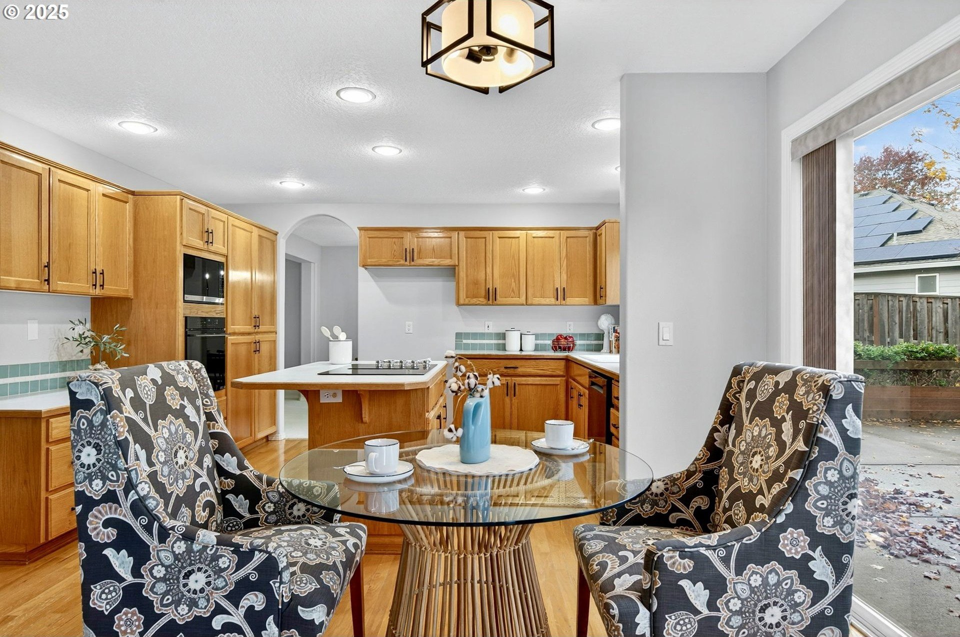 Lovingly cared for by the original owners, this home sits on a level, flat lot at the end of a cul-de-sac. A welcoming covered front porch provides a charming entrance to this move-in ready property. Inside, the entryway opens to a formal living and dining room, while the great room with a fireplace and built-ins overlooks the expansive fenced backyard. The oversized bright kitchen includes new appliances, a built-in desk and a large breakfast nook. New interior paint and light fixtures enhance the updated feel throughout the home. Upstairs, discover four bedrooms, including a primary suite with double sinks, a soaking tub and walk-in closet. The fourth bedroom is ideal for a bonus or media space. This home lives large, with spacious rooms and abundant storage throughout. The backyard offers plenty of space for gardening, entertaining and play. Additional updates include the roof, siding, furnace and water heater with a back up heat-pump included.Located in desirable Wilsonville Meadows, near schools, shopping and freeways, this move-in ready home combines elegance, comfort and functionality. Don't miss out on this outstanding opportunity.
