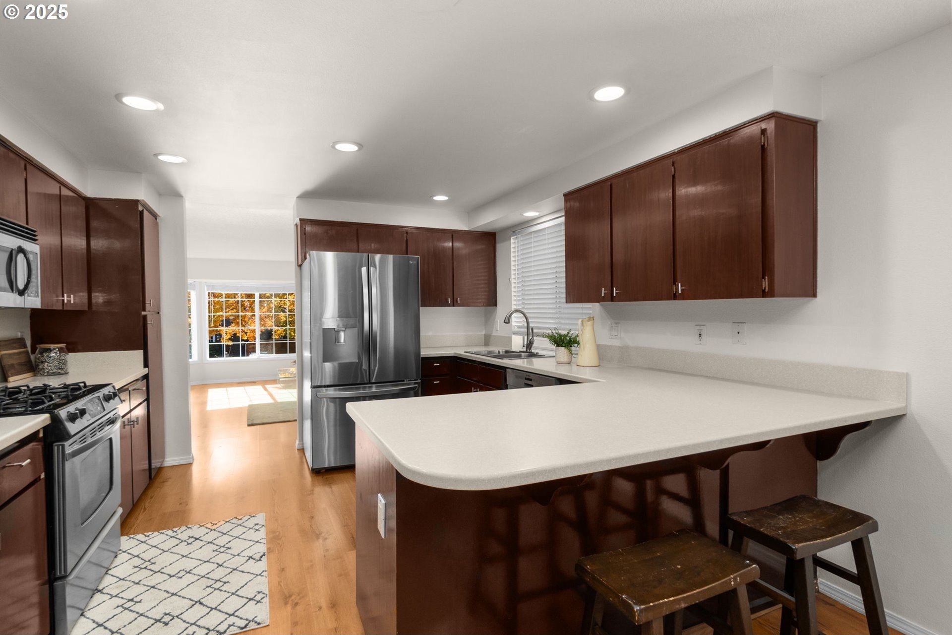 OPEN HOUSE SATURDAY 12-2pm! **Don't miss this timeless single-level home, nestled into one of SW Beaverton's most desirable neighborhoods. Curbside charm abounds on this tree-lined street: enjoy lush greenery in summer + vibrant colors in fall from your elevated, cozy living room bay window. Open-concept kitchen/dining area w/ SS appliances, gas range, Bosch dishwasher, LG refrigerator + eat-in bar flows effortlessly into indoor/outdoor living spaces. Opportunity to expand square footage or add loft storage in high-ceiling garage. So many updates have been taken care of for you: new fiber cement siding on front of house, interior + exterior paint, updated front porch and back deck, interior + exterior light fixtures, Bosch dishwasher brand-new in 2025 *PLUS* LG refrigerator (2024), new roof (November 2024), newer water heater (2022) offer maximum peace of mind. Conveniently located near Hyland Forest Park, Cooper Mountain Nature Park, Progress Ridge, Beaverton schools, shopping/dining, transportation and major employers. No HOA! See virtual tour in Link #1!