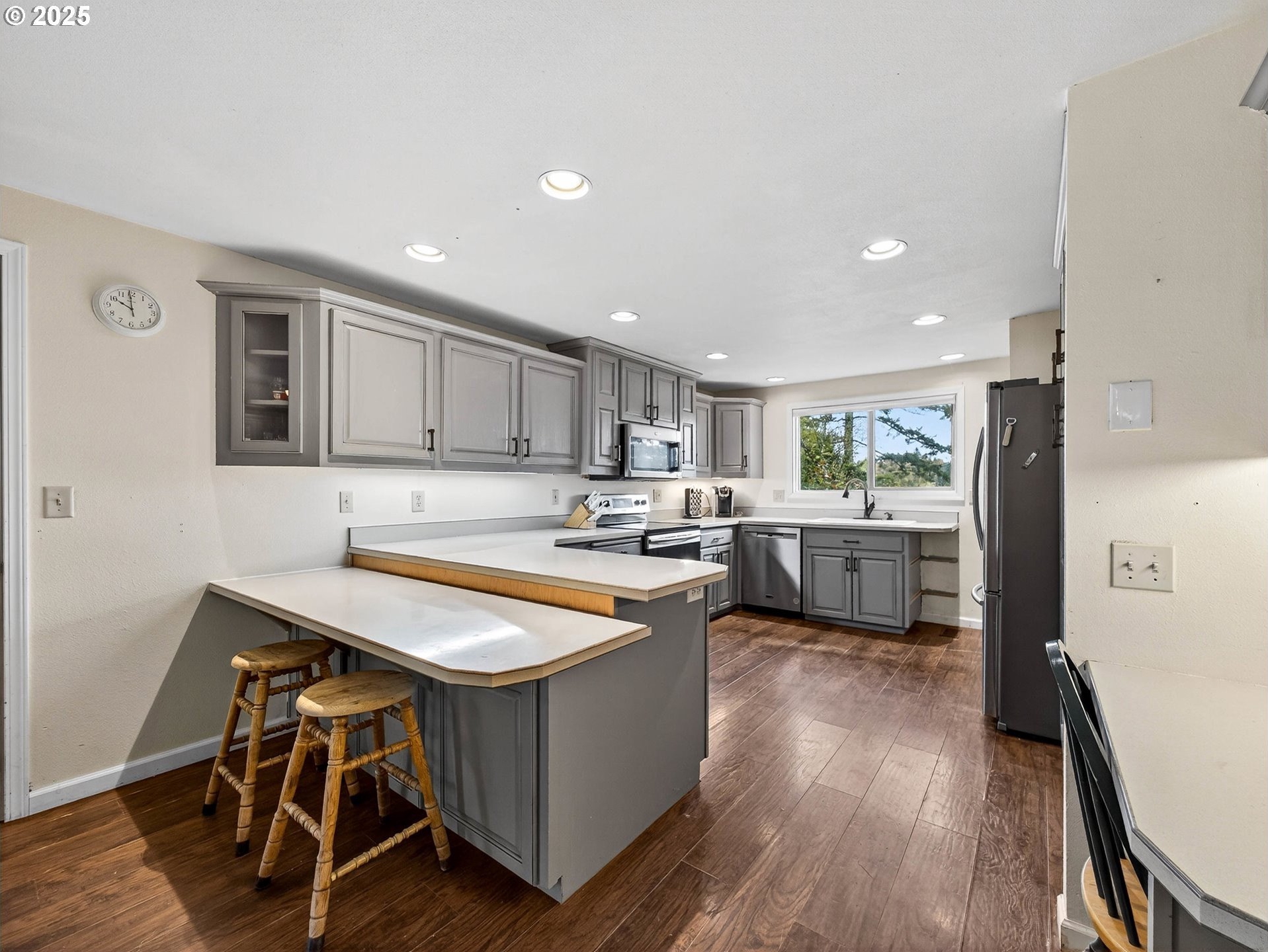 Close-in Oregon City horse property with the perfect blend of country charm and everyday convenience! Set on 5 acres, this 4-bedroom, 2.5-bath home plus den offers space to spread out and room to breathe. The 4-stall barn features a heated, insulated tack room with water and 220 power—ready for your horses or hobbies. Inside, you’ll find a welcoming layout with a cozy fireplace, wood stove, and a mother-in-law suite complete with kitchenette, walk-in shower, and Jacuzzi tub. Recent updates include a newer roof, heat pump, laminate floors, stainless steel appliances, and vinyl windows. Two decks overlook the peaceful, fenced yard with a tuff shed and bonus building perfect for art, music, or crafts. Enjoy country living just minutes from town.