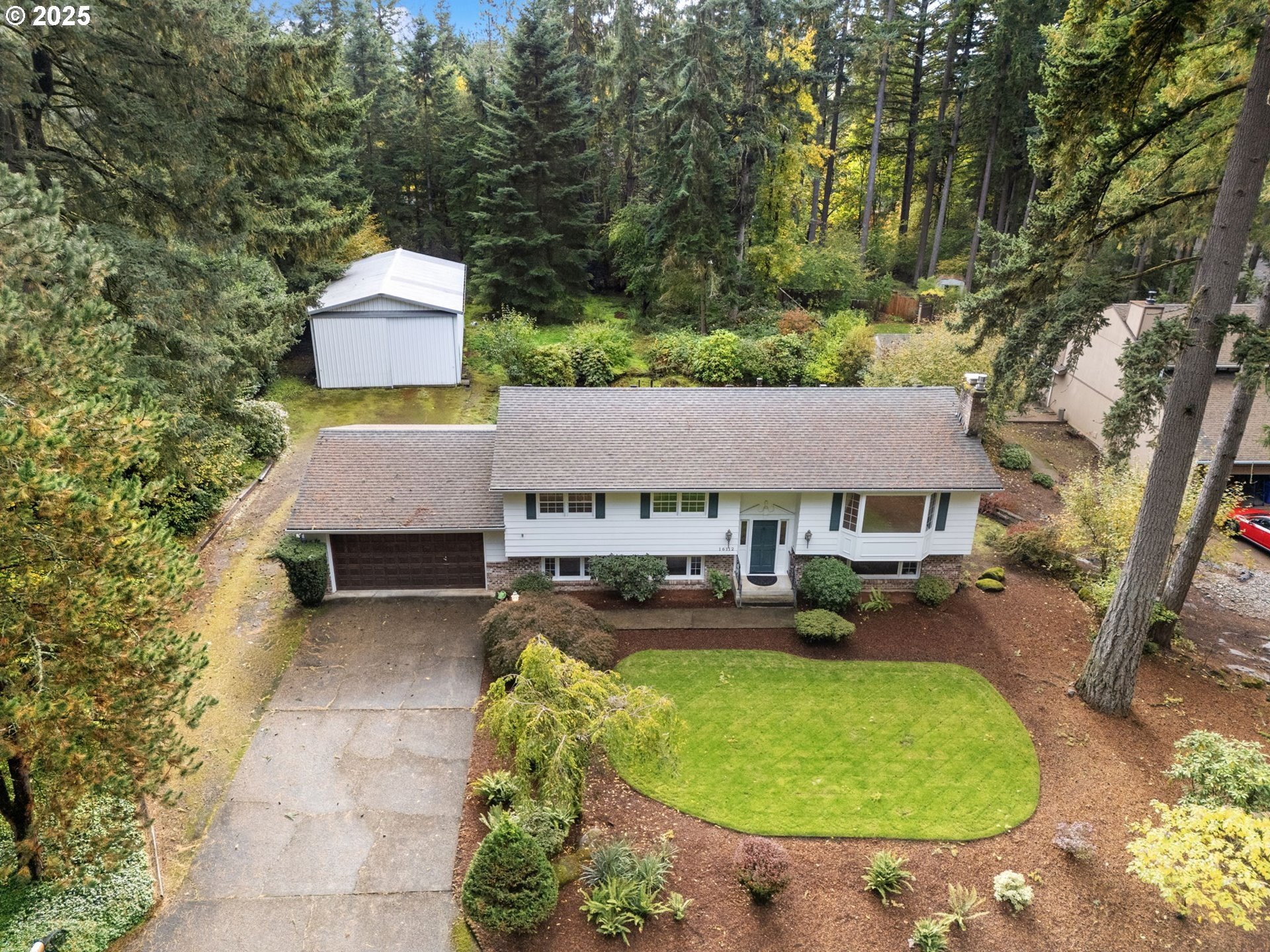 OPEN HOUSE Saturday Nov 1st--11:00-1:00. FIRST TIME EVER to hit the market! Well-maintained home in sought-after neighborhood. Just drive into this neighborhood, and you'll already be in love. It's wooded, with large lots, and quiet. This house is tucked toward the back of this neighborhood surrounded by trees and nature. Large home with loads of space for everyone. The living room has a bay window facing the front yard, a fireplace, and attaches to a formal dining room. The spacious kitchen has a eat-in breakfast area, and sliding glass door to the large back deck. Peace and privacy is yours from that back deck--overlooking the vast, wooded backyard. Three large bedrooms, and two bathrooms are also on the mainfloor, including the primary suite. Downstairs, the family room is huge, with a fireplace and another slider to the backyard. The great room is perfect for a pool table, shuffleboard, you name it. There's a third bathroom on this floor, with a large mud room with washer/dryer and area for a fridge--all leading to the garage. The large lot is manicured and meticulous up front (with sprinkler system), and natural in the back. Huge out building is 40X20 feet--perfect for storing your toys, and space for your projects. There is too much to mention in this home -- it's a MUST SEE.