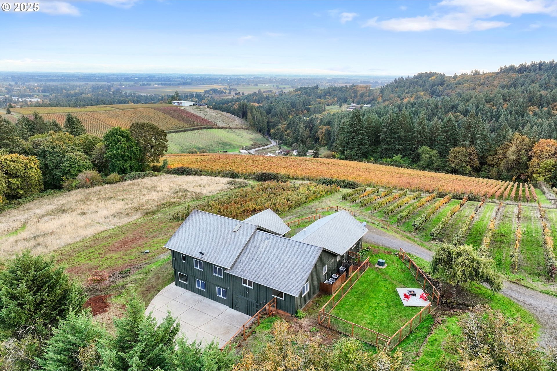 Oregon Vineyard Property is pleased to present this historically significant vineyard property with one of the best locations in wine country. Originally planted in 1970, the property features the oldest vineyard block on Worden Hill Rd. and the second oldest in Dundee following the Eyrie Vineyard's South Block. The property is 41.43 total acres with 11+ planted to vineyard and an additional 10-12 of prime vineyard ground. The 5,254 sq. ft. timber framed "retreat" is a beautiful building with vaulted ceilings, open concept main floor, oversized rooms and a lower level work space where wine could be made or other hobbies pursued. The structure could serve as either a home or hospitality center. Both the retreat and 2,484 sq. ft. farm house offer magnificent views of the Dundee Hills and Willamette Valley with Mt. Hood and Mt. Jefferson beyond. The farm house was likely the first on Worden Hill Rd., with a setting this spectacular it is no surprise this location was chosen. The farm house has been updated and modernized over the years and features an addition with master bedroom and en-suite bath. The 2,210 sq. ft. historic barn / tasting room sits amongst the vines and is both welcoming and charming. The property also features 16+ acres of forested land reminiscent of a state park. There is a year round natural spring that feeds into a concrete storage cube, water rights associated with the spring have a priority date of June 6th 1965. There is another year round spring bellow the resort that fills a small pond. The pond offers potential to pursue a surface water right and develop a reservoir for irrigation. Rarely does a property with this strong of direct-to-consumer wine sales potential come to market. This is an opportunity to launch or expand your wine business in the epicenter of the Oregon wine industry, on one of the hills where it all started.