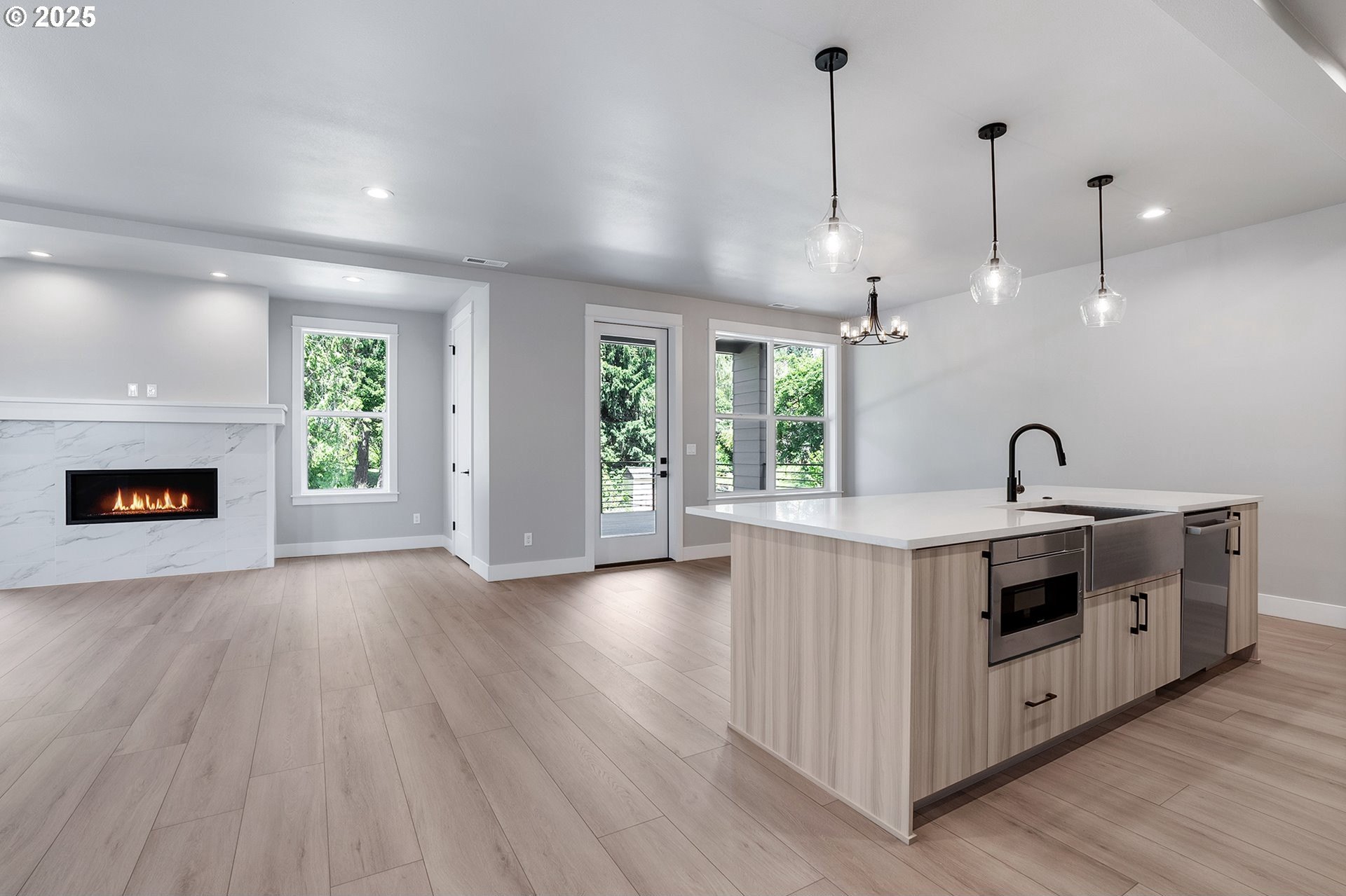 This stunning contemporary home, designed by Portland's acclaimed architect, Ralph Tahran, and built by Main Street Development, an esteemed fourth generation local builder, is at the end of a lane with nine unique homes in this exclusive development. It features 4 bedrooms (one is in the unfinished ADU) plus a den on the main floor with a full bath next to it, a covered deck with a sweeping territorial view, and an unfinished ADU with separate entrance, ideal for guests, rental income, or extended family living. The home offers high end finishes, a gourmet kitchen with premium cabinets,9 foot ceilings, an open layout, striking sight lines, abundant natural light, and beautiful territorial views. Nestled on a lane in one of Portland's best neighborhoods, it's steps from the vibrant heart of Hillsdale and Multnomah Village beyond, with downtown only a 10 minute drive away. Highlights include engineered hardwood in the main living areas, tiled bathrooms a covered deck ideal for entertaining, and a large two car garage plus additional covered parking. The spacious primary suite boasts a vaulted ceiling with fan and an impressive 9' x 15' walk-in closet. The back yard connects with a common greenspace. With a Walk Score of 86 and a Bike Score of 83, this home combines luxury with convenience.