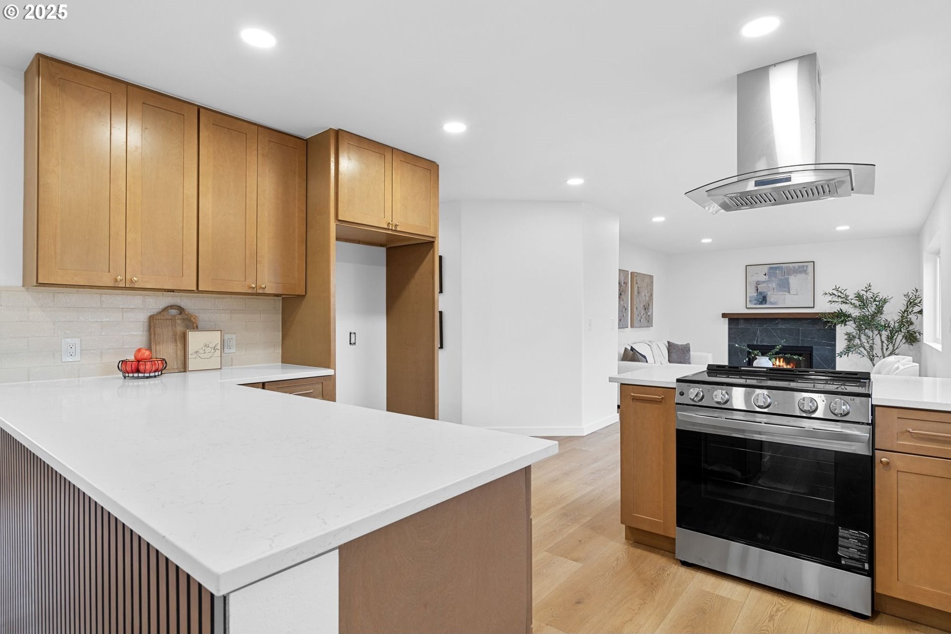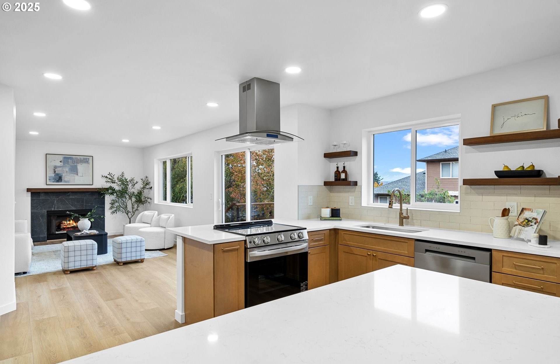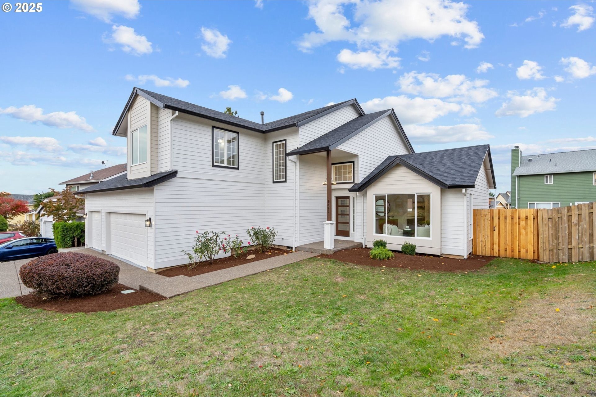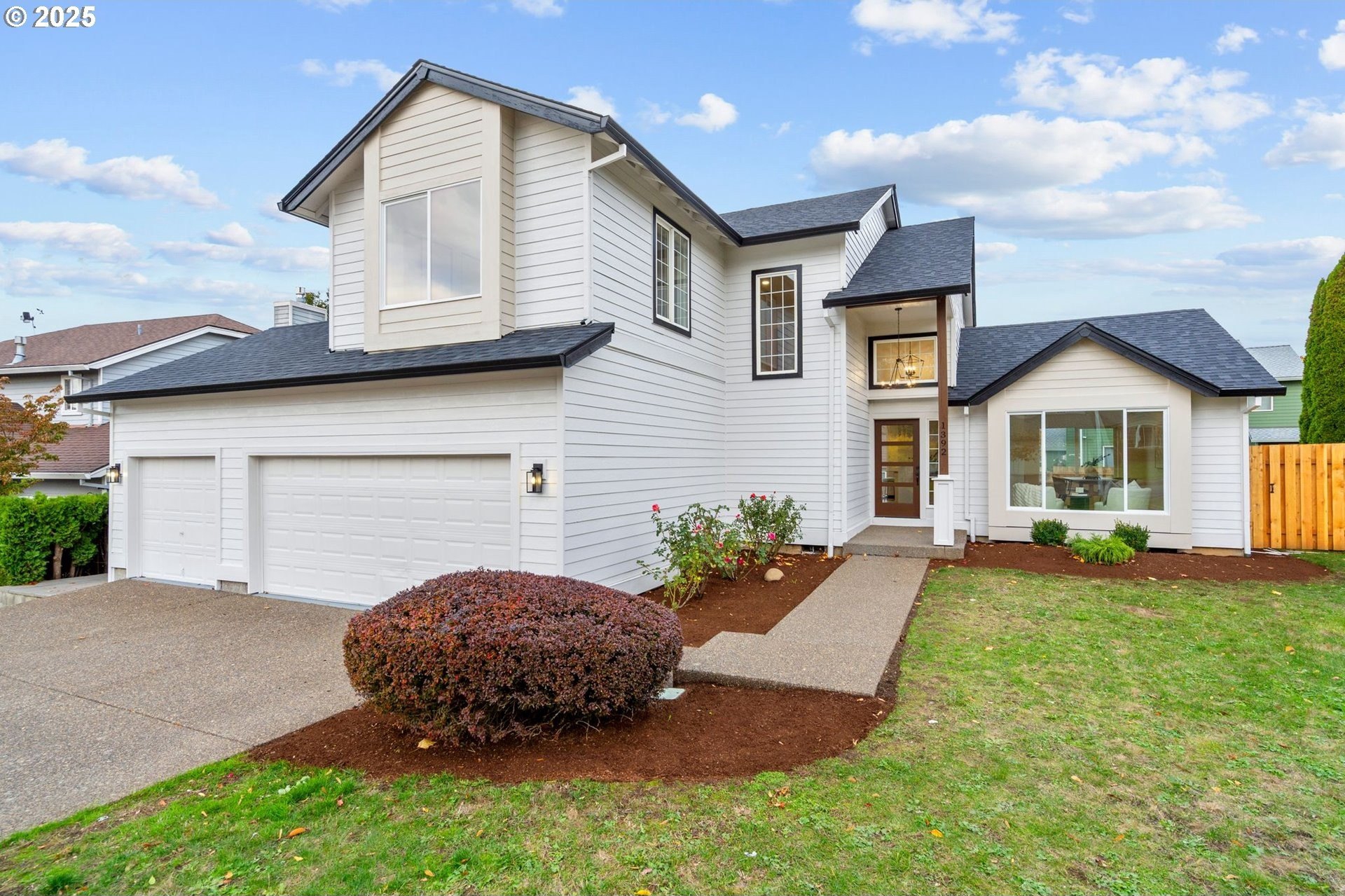 Beautifully updated from top to bottom, this 5-bedroom, 3-bath home offers style, comfort, and space. The brand-new kitchen features modern cabinets, stainless steel appliances, quartz countertops, and gold finishes. The open-concept living area includes a gas fireplace and large windows bringing in natural light.The spacious primary suite has a large walk-in closet and a beautifully tiled shower. Upgrades include a new roof, new vinyl flooring on the main level, and plush carpet upstairs.Enjoy the large backyard and expansive deck, perfect for entertaining or relaxing while taking in the beautiful views. A 3-car garage provides plenty of parking and storage.This fully remodeled home is move-in ready and offers the perfect blend of quality, functionality, and modern design.