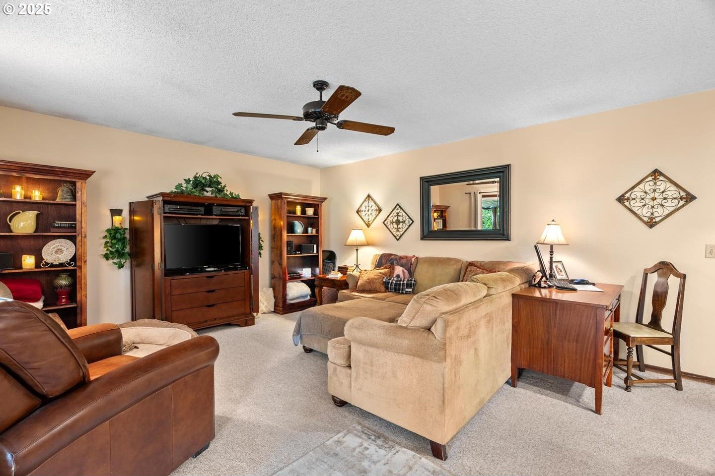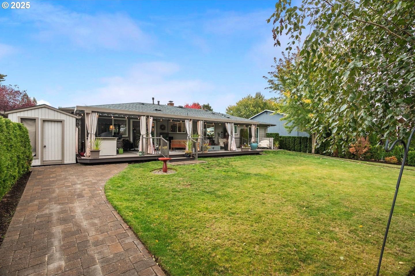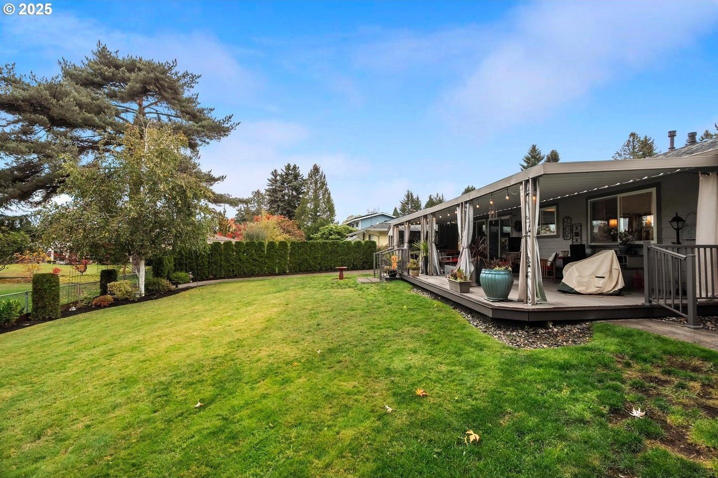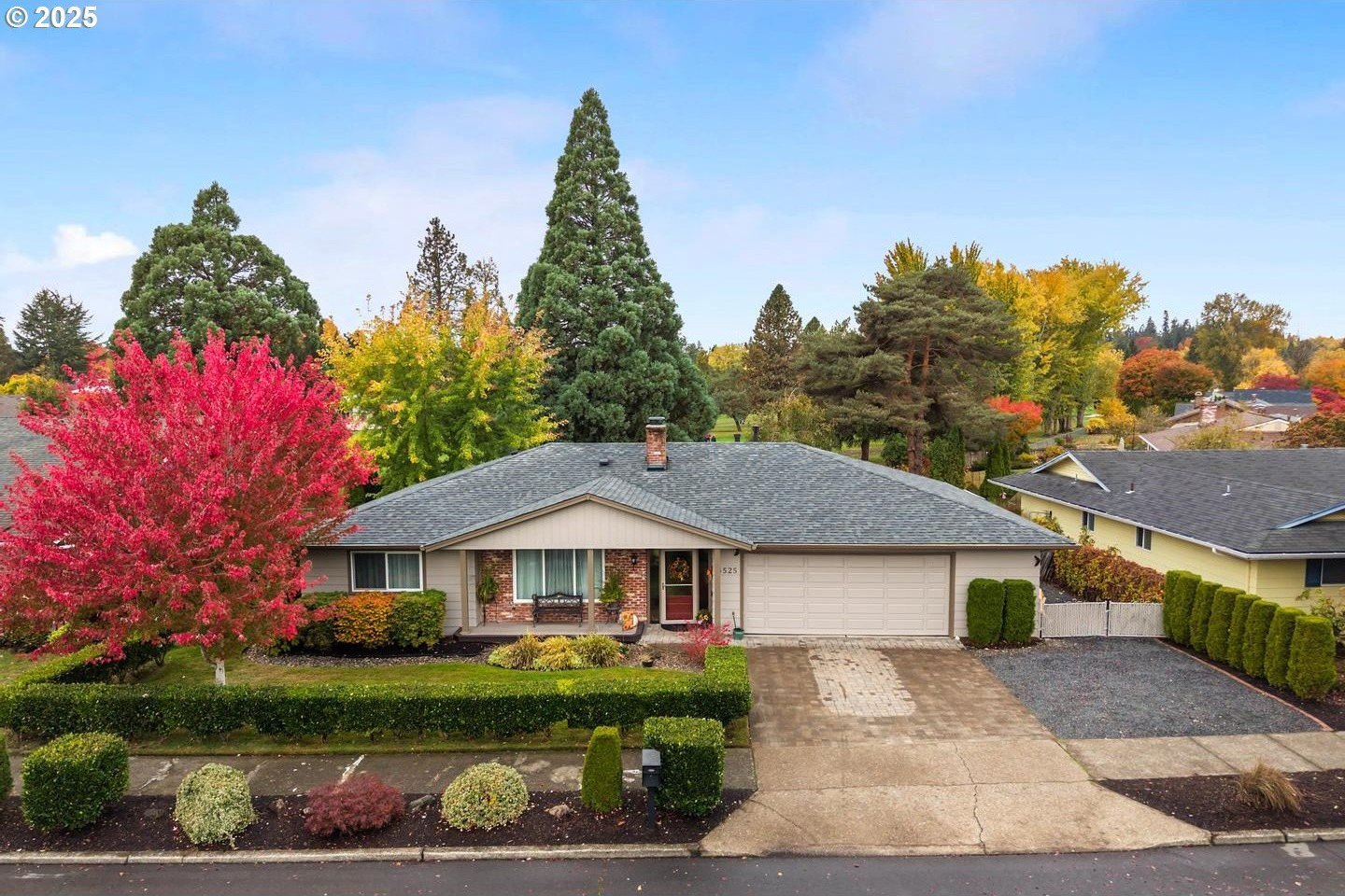 Beautifully maintained single-level rambler in sought after Rock Creek Neighborhood, backs to the 11th green on Rock Creek Golf Course. Enjoy the covered 40’ x 14’ deck—perfect for entertaining or simply watching golfers and sunsets. The front porch compliments the back deck. Inside features hardwood floors, custom window and floor trim, a cozy wood-burning fireplace, and a spacious family room with sliding doors to the fully backyard. The kitchen offers a peninsula breakfast bar, pantry, stainless appliances, and open to family room. The primary suite includes its own private patio, ensuite bath, and hardwood floors. Home has been re-piped for peace of mind. The fully fenced, mature landscaped yard provides privacy and outdoor beauty year-round. Added perks include RV parking, central A/C, sprinkler system, and proximity to parks, trails, shopping, and top-rated schools.