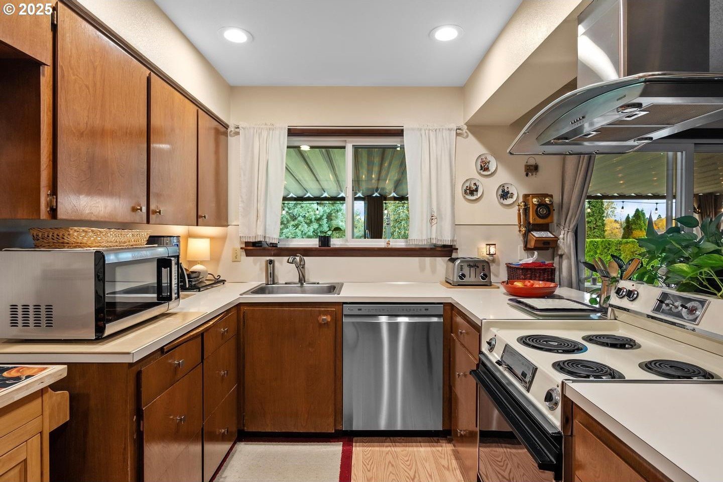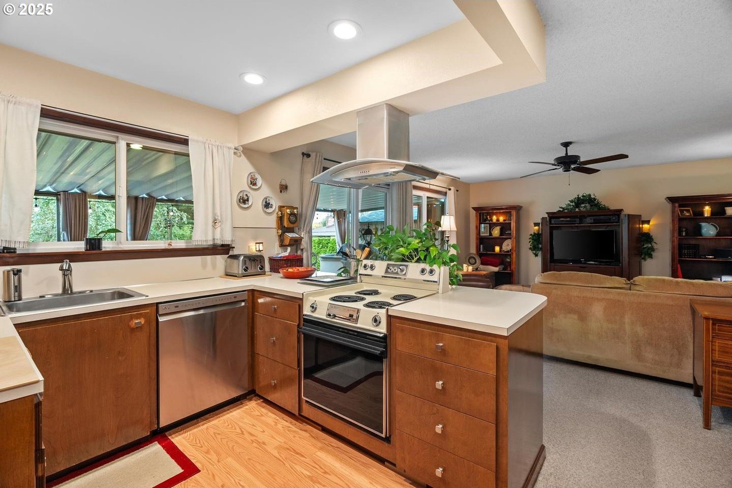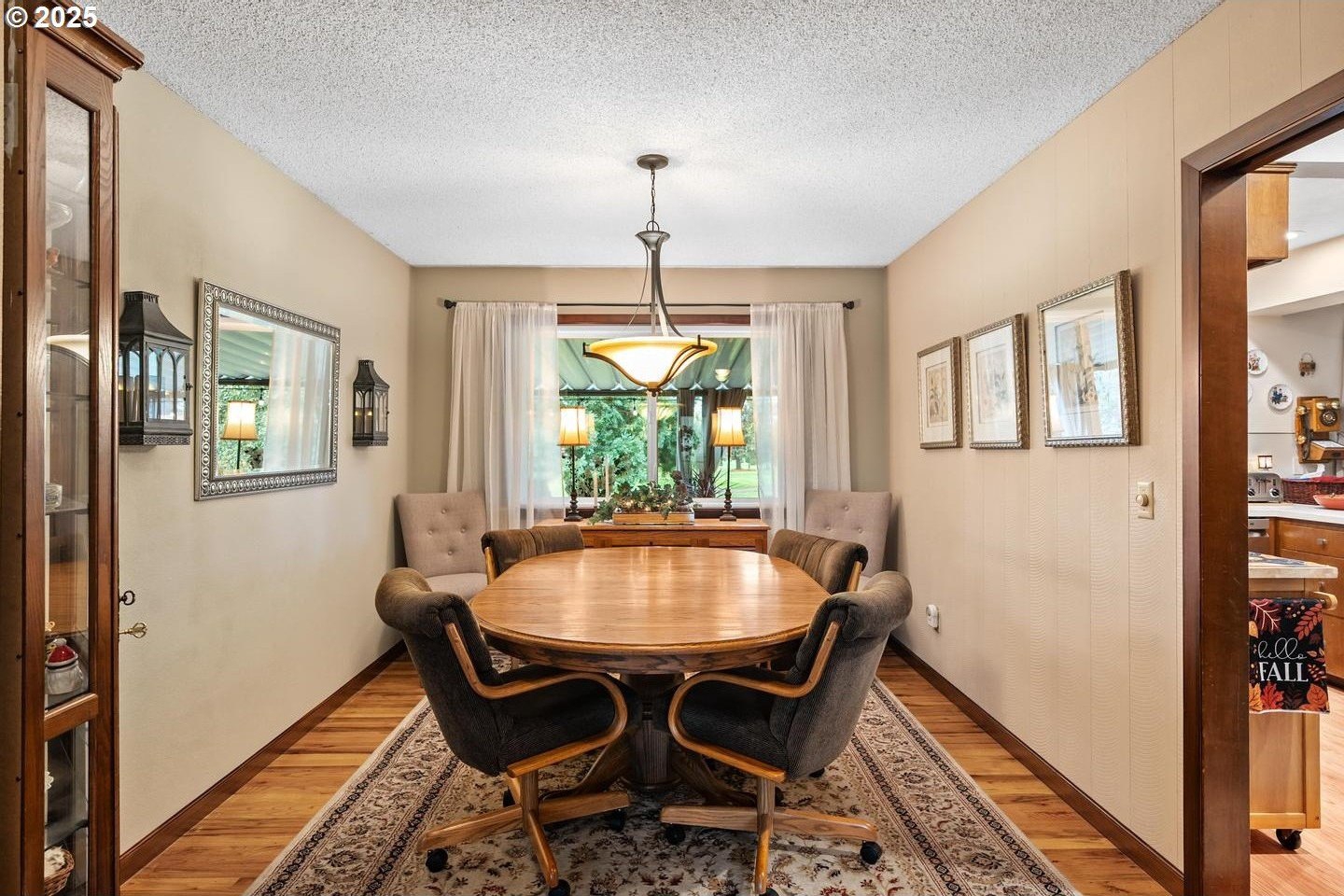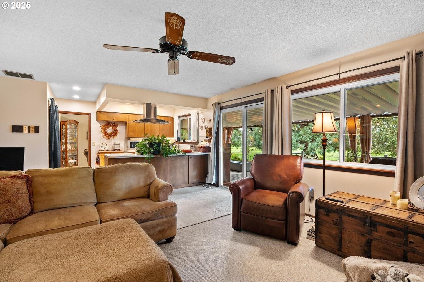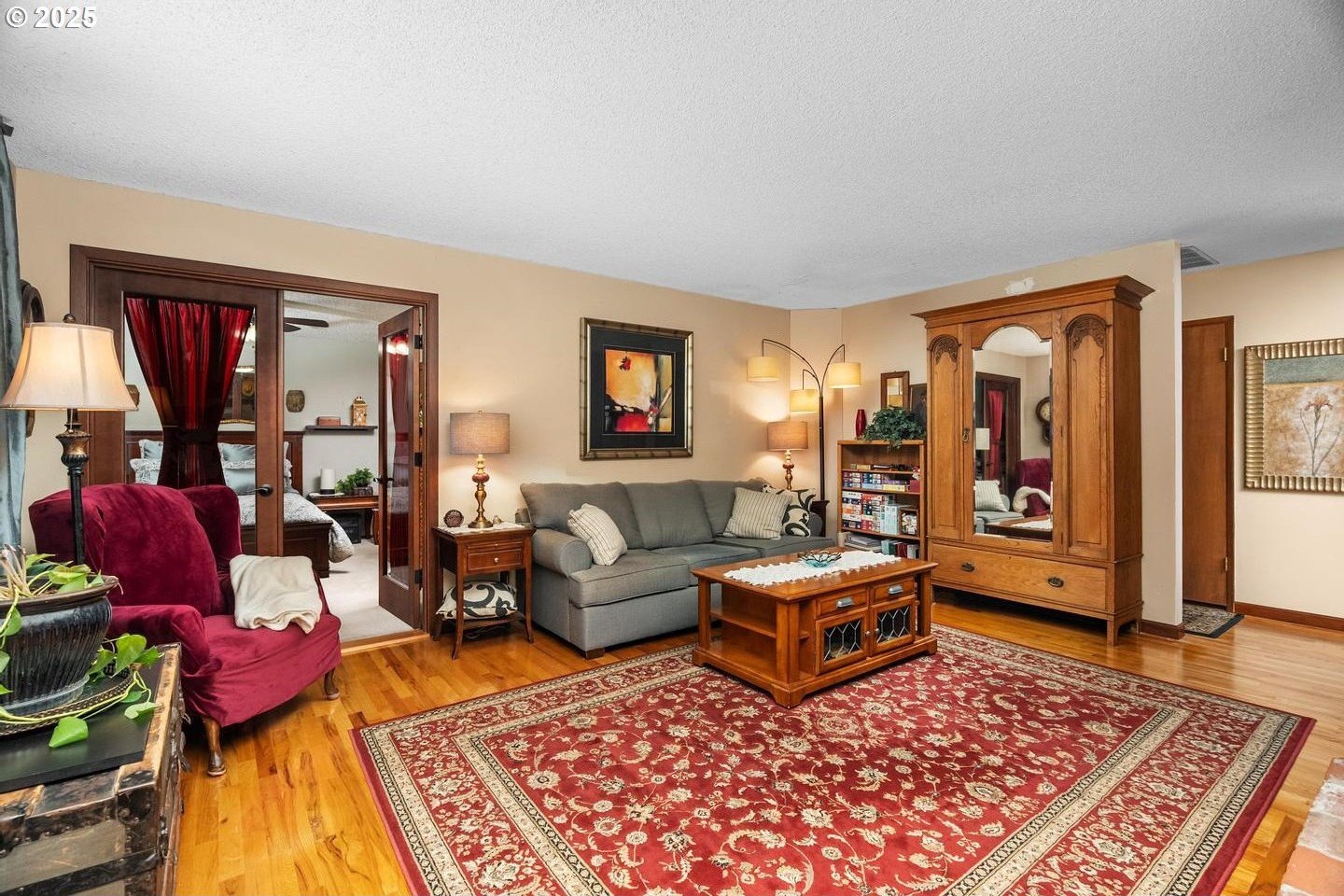 Beautifully maintained single-level rambler in sought after Rock Creek Neighborhood, backs to the 11th green on Rock Creek Golf Course. Enjoy the covered 40’ x 14’ deck—perfect for entertaining or simply watching golfers and sunsets. The front porch compliments the back deck. Inside features hardwood floors, custom window and floor trim, a cozy wood-burning fireplace, and a spacious family room with sliding doors to the fully backyard. The kitchen offers a peninsula breakfast bar, pantry, stainless appliances, and open to family room. The primary suite includes its own private patio, ensuite bath, and hardwood floors. Home has been re-piped for peace of mind. The fully fenced, mature landscaped yard provides privacy and outdoor beauty year-round. Added perks include RV parking, central A/C, sprinkler system, and proximity to parks, trails, shopping, and top-rated schools.