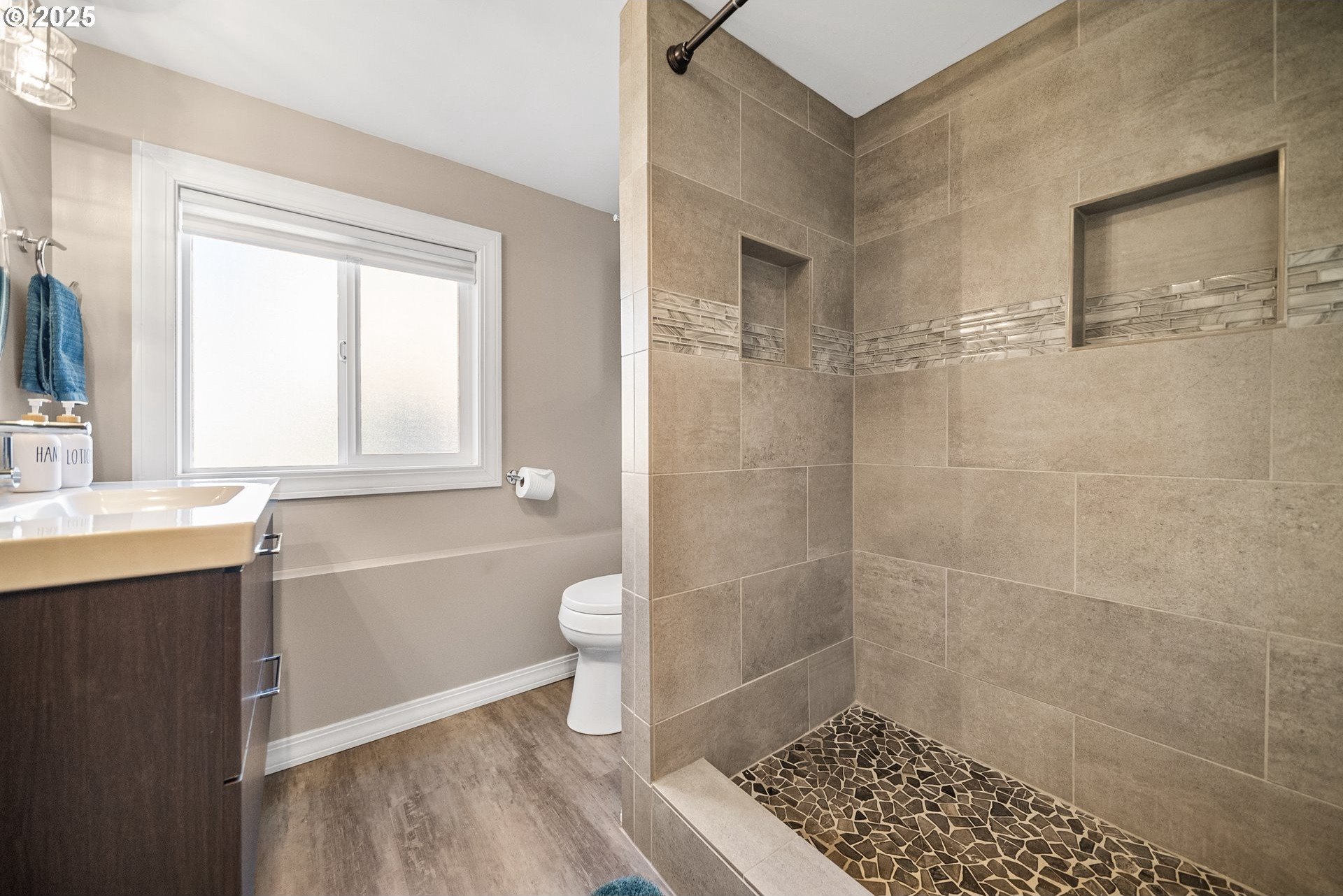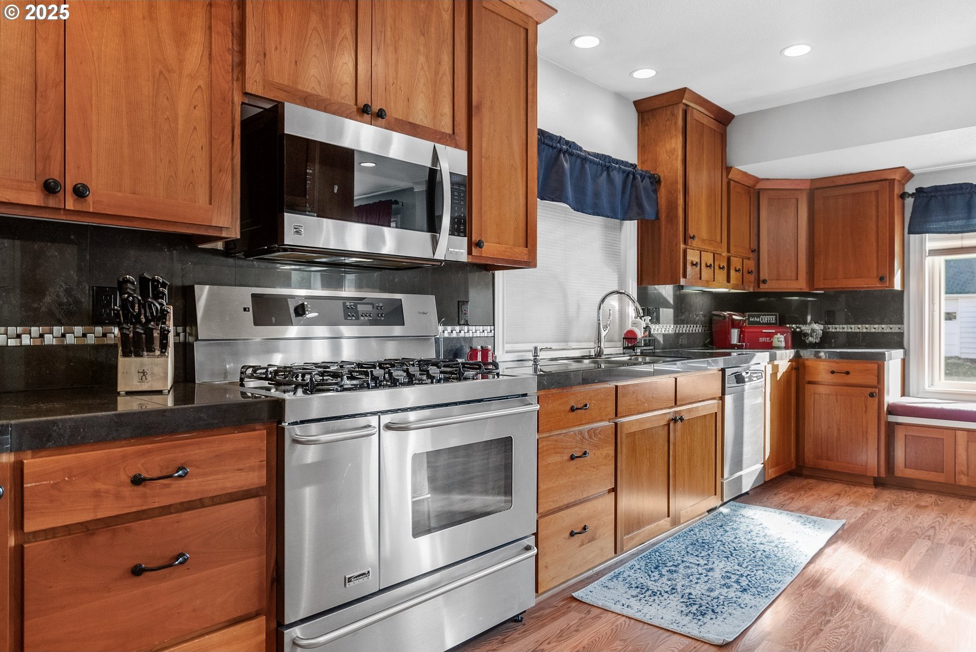 Comfort, convenience, and room to grow- welcome home! Tucked into a quiet corner lot beside a cul-de-sac, this remodeled daylight ranch offers the perfect blend of updates, spacious living, and unbeatable location. With 2,494 sq ft, 4 bedrooms, 2 bathrooms, and multiple living areas, it’s ready for everyday life and special gatherings alike.From the curb, the home makes a strong first impression. The larger lot offers a sense of space and privacy that’s hard to come by. With fewer nearby homes and minimal through-traffic, it’s a quieter setting that feels tucked away while still being close to everything.Inside, the main floor offers a smart layout for both entertaining and everyday comfort. The remodeled kitchen features modern finishes, a dual oven with gas cooktop, and flows into a bright living room ideal for relaxing or hosting. The daylight basement adds flexibility with a cozy family room, bonus space, and a separate bedroom— perfect for guests, extended stays, or a home office— with a full bath just steps away.Major system upgrades add peace of mind: the roof and gutters were replaced three years ago, and the AC unit is just one year old. All windows have been upgraded to high-quality Milgard double-pane for energy efficiency and year-round comfort.The location is a true standout—just minutes from Costco, Trader Joe’s, New Seasons, Clackamas Town Center, and other shopping essentials. You’re also close to parks, schools, medical facilities, and a neighborhood path that leads to a popular community garden. With easy access to main roads, commuting or weekend getaways are a breeze.This home is more than square footage and finishes—it’s a lifestyle. With space to grow, entertain, and relax, it offers quiet comfort and everyday convenience. Thoughtfully updated and move-in ready, it checks all the boxes: remodeled interior, updated systems, spacious layout, and a prime location. Come see it in person—it might be exactly what you’ve been waiting for.