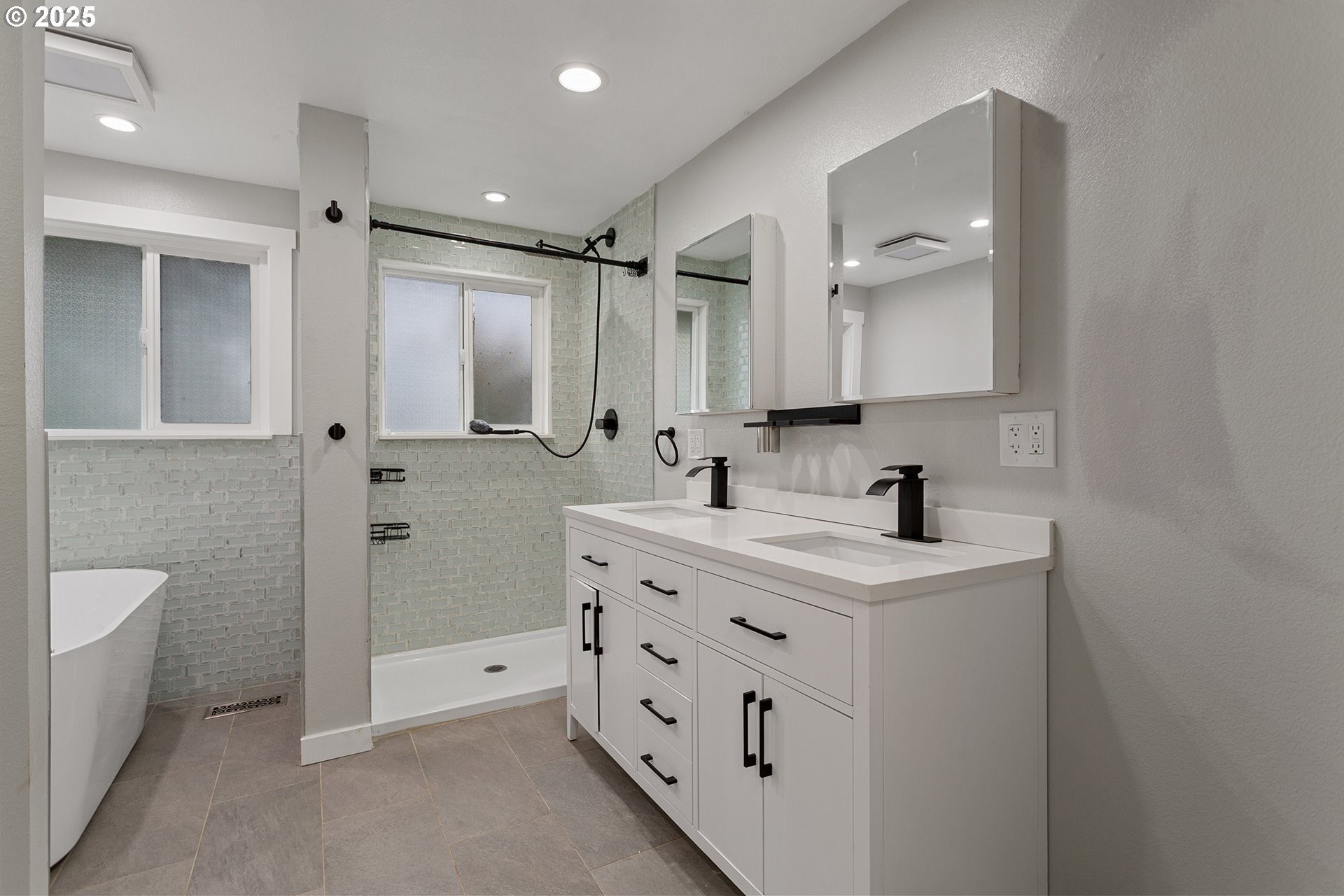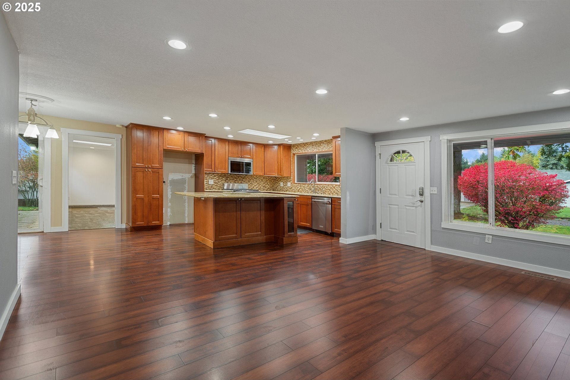 Single-level home with extensive updates and well-planned improvements throughout. New primary suite addition completed in 2024 includes large bedroom, bathroom, walk-in closet, and new Trex deck. Both bathrooms remodeled in 2024 with heated tile floors. New Hardiplank siding and full exterior paint in 2024. New flooring in the rear of the home (2024) and new carpet in the bonus room (2025). Dimmable lighting throughout. New furnace and air conditioner installed December 2022. Kitchen updated with new stainless appliances—dishwasher, stove, and microwave hood (2024). Vinyl windows throughout. Roof well maintained. Automatic outdoor sprinkler system and lighting. Water feature in front yard. Fenced backyard with new iron gate (2024). Large concrete patios around home and garage/shop. Two-car garage/shop includes storage above, power, and a fiberglass basketball backboard. Ample off-street parking for RV, boat, or recreational vehicles. Large fire pit area. Yard has been serviced with quarterly pest control for approximately 10 years. Situated on nearly half an acre at the end of a quiet street bordering the urban growth boundary. Surrounded by larger parcels providing open views and privacy. Level driveway and single-level floor plan for easy access. Open layout with large windows and three skylights for natural light. Fully sprinkled yard and landscaped grounds. Convenient location approximately two miles from freeway access. Safe, established neighborhood with long-term residents. This updated single-level home combines modern improvements with a practical layout and nearly half an acre of private space. A new primary suite addition completed in 2024 includes a spacious bedroom, walk-in closet, and private bath. Both bathrooms were remodeled in 2024 with heated tile floors. Exterior updates include new Hardiplank siding and full paint in 2024. Interior updates feature new flooring in the rear of the home (2024) and new carpet in the bonus room (2025). Much more!