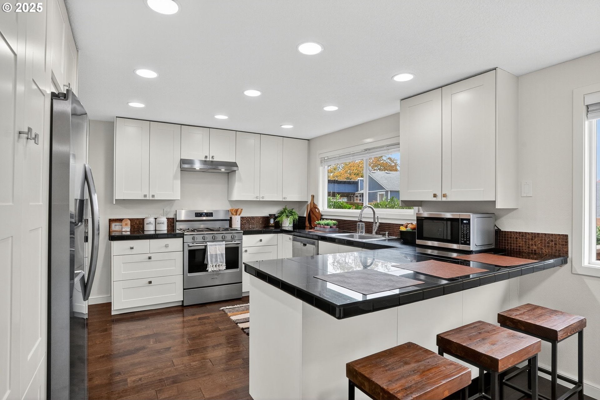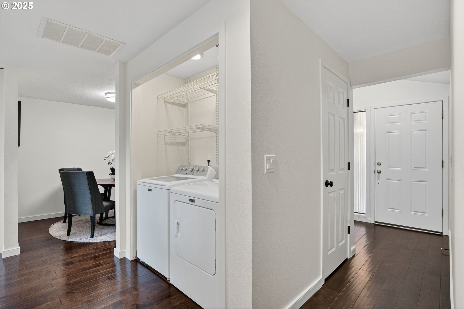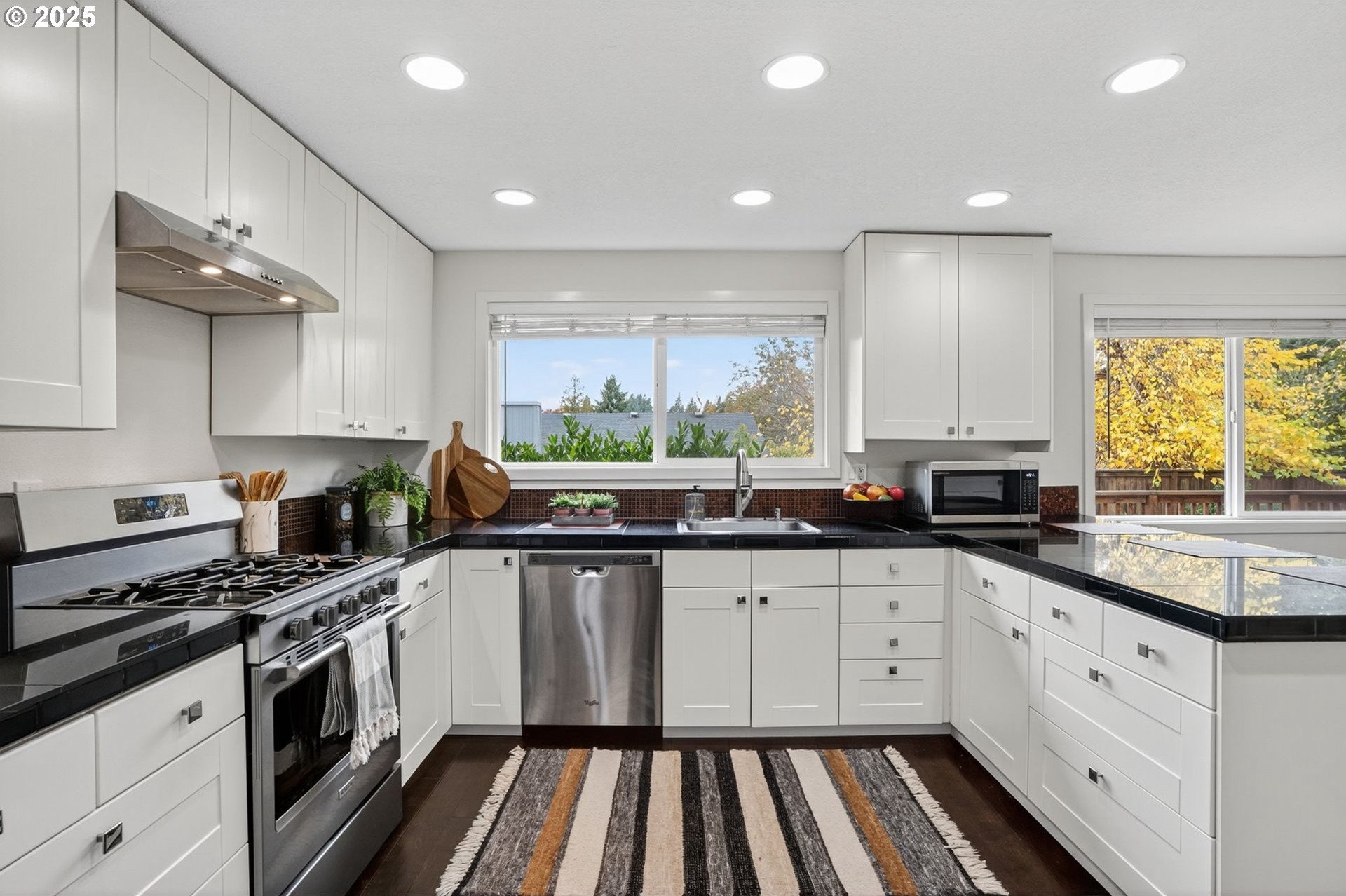 In the heart of a coveted Tualatin neighborhood, this beautifully updated one-level home sits on a peaceful cul-de-sac and shows true pride of ownership. The living room features vaulted ceilings, a wood-burning fireplace, and newer carpet, creating a warm, inviting space. Enjoy the modern kitchen with granite countertops, tile backsplash, stainless steel appliances including a gas range, a pantry, and an eating bar open to both the dining area and family room for easy entertaining. The family room’s sliding door leads to a spacious deck and landscaped yard with mature rhododendrons and a sprinkler system. Three bedrooms include a comfortable primary suite with a walk-in closet, granite-topped vanity, and private shower. Additional highlights include a second full bath, laundry closet with a new washer and dryer (less than a year old), and an attached two-car garage. Recent updates within the last three years include a Presidential roof, kitchen appliances, furnace, A/C, gutters, downspouts, and new attic insulation. Truly move-in ready!