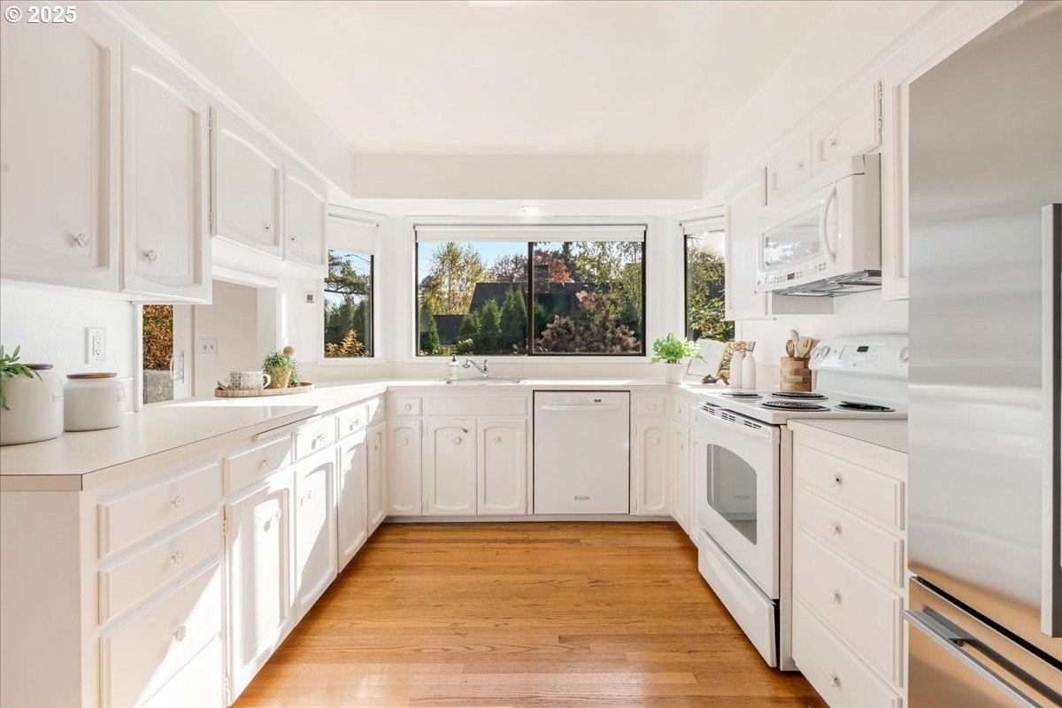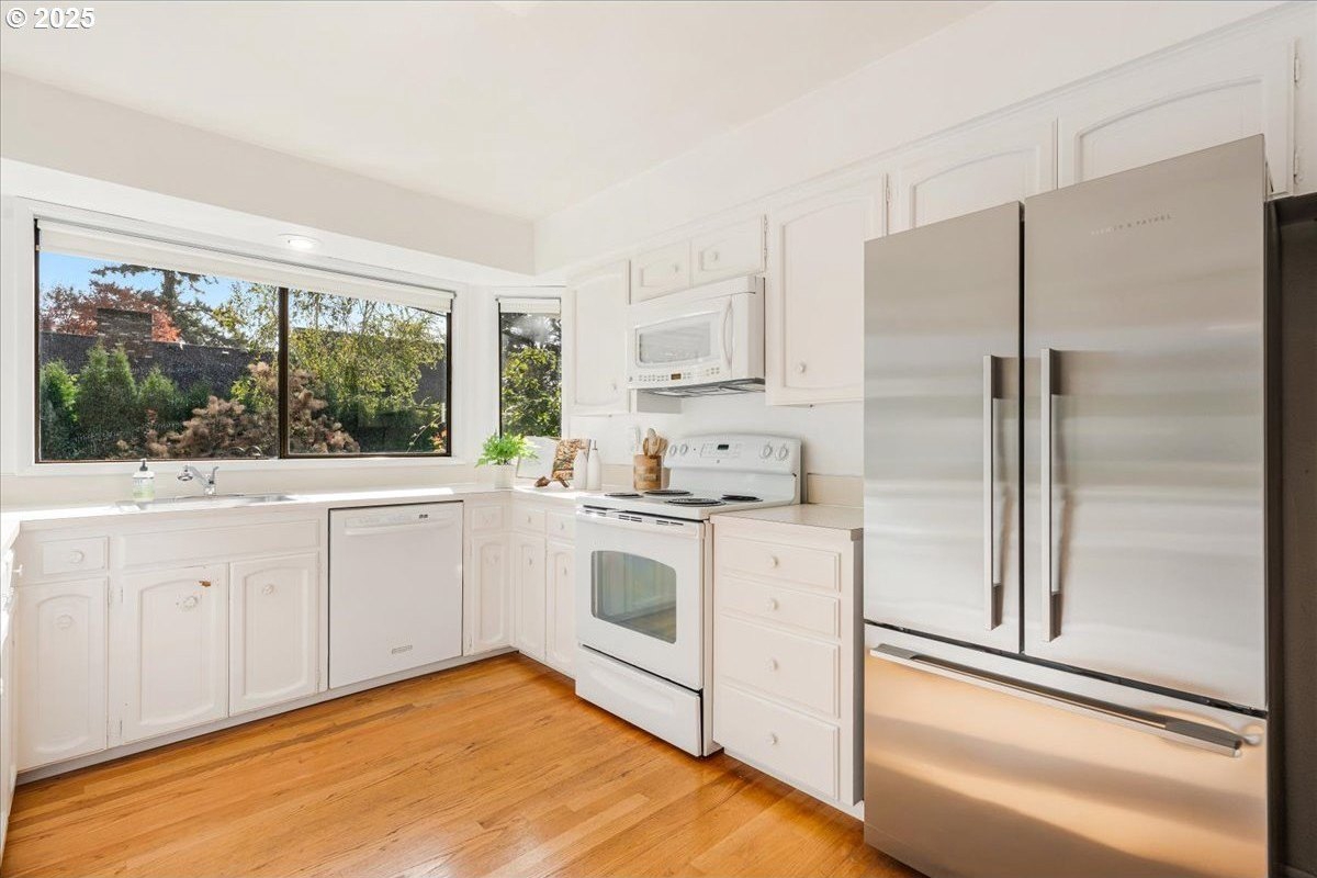 Great one-level home in Raleigh Hills featuring two primary suites, each with double closets and plantation shutters. The open, light-filled floor plan offers a seamless flow, while the kitchen with island overlooks the garden and inviting patio for easy indoor-outdoor living. Oak hardwood floors throughout add warmth and character. Designed for comfort with ADA-friendly features and well-planned separation of space. Recent updates include a new roof (2025), furnace (2019), air conditioner (2015), and water heater (2016). The seller completed a pre-listing inspection and addressed minor items for peace of mind. An APHW home warranty is included for the buyer.