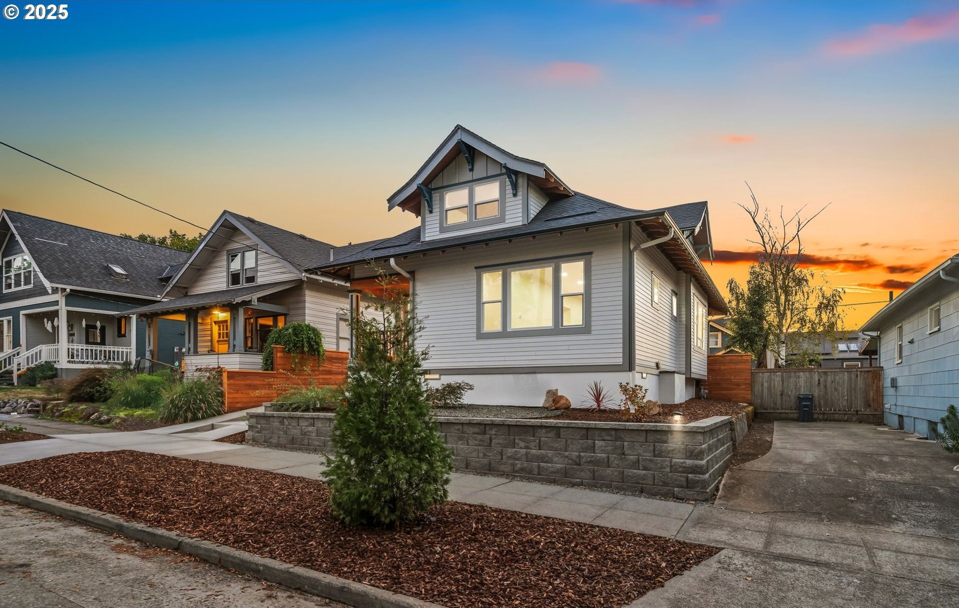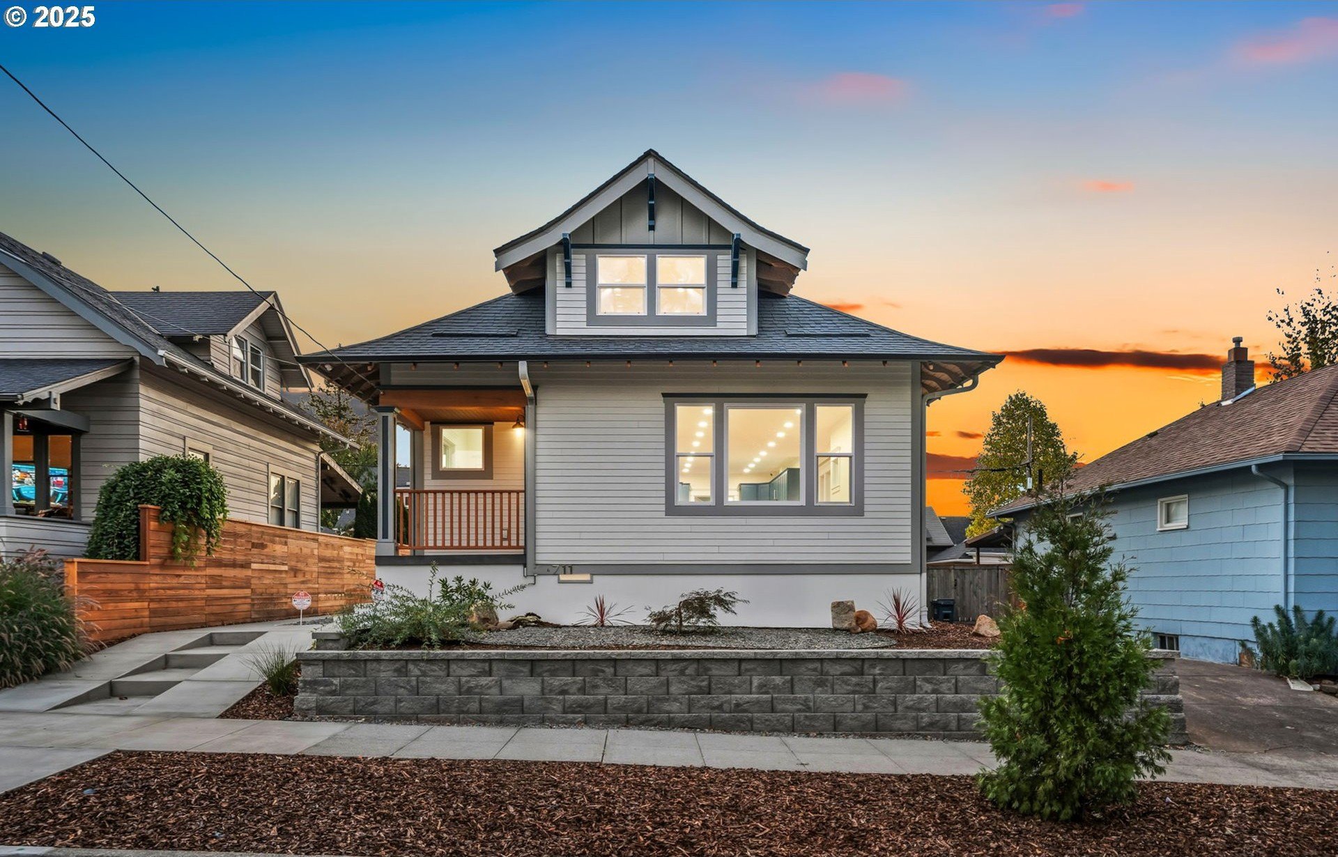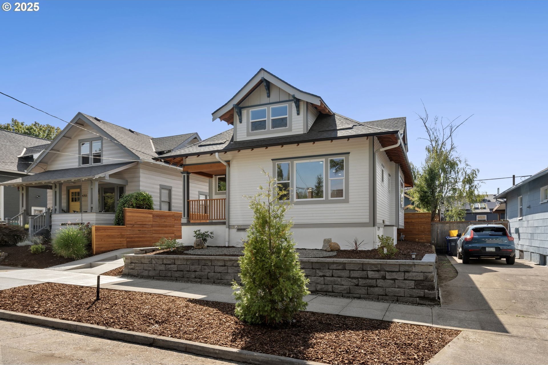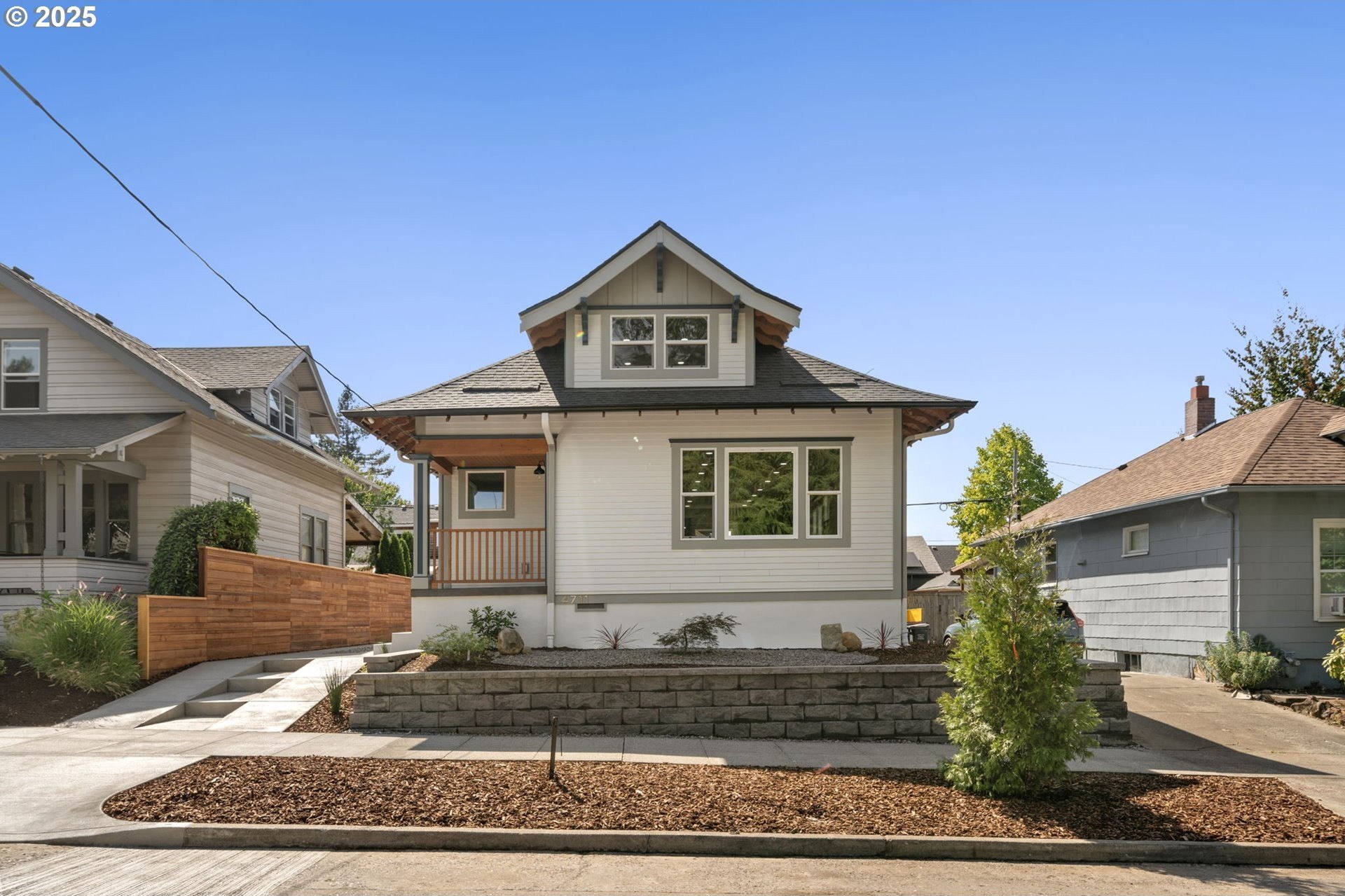 Do you love historical architecture but dread the snowball of repairs it can entail? Search no further. This charming 1916-built Craftsman home, situated in Portland's vibrant Alberta Arts neighborhood, has been extensively and strategically remodeled to provide all the modern comforts without compromising its architectural roots. A new roof, sewer lateral line, foundation and structural reinforcements, as well as updated electrical, plumbing, and HVAC systems, account for only a fraction of the massive scope of work that leaves nothing untouched. This encompasses every essential and non-essential interior and exterior system, performed with a design and building methodology that is deeply aware of the site’s macro and micro tectonics while prioritizing exceptional craftsmanship. This yields a luxurious, modern, and seamless living experience, characterized by a cohesive architectural blend of modern and historically congruent elements. Large open spaces feature a modern color palette in the millwork, walls, tiles, and carefully chosen quartz countertops that complement the cozy hardwood floors and stain-grade millwork. In the basement, there are no partition walls—just a large open space with durable, low-maintenance flooring that combines functionality and style. On the second floor, a spacious master bedroom is equipped with a large, beautifully designed bathroom and closet with custom cabinetry. All three levels are enveloped by abundant recessed lighting, delivering a bright, contemporary ambiance. Moving outside, we observe a continuation of the same theme with different components. A similar color palette on the brand-new cement lap siding harmoniously complements the hand-carved, stained rafter tails adorning the entire structure’s perimeter. In the landscaping, we see a low-maintenance but visually appealing blend of aggregates, vegetation, and hardscaping, contrasting with the freshly poured concrete driveway. [Home Energy Score = 4. HES Report at https://rpt.greenbuildingregistry.com/hes/OR10202327]
