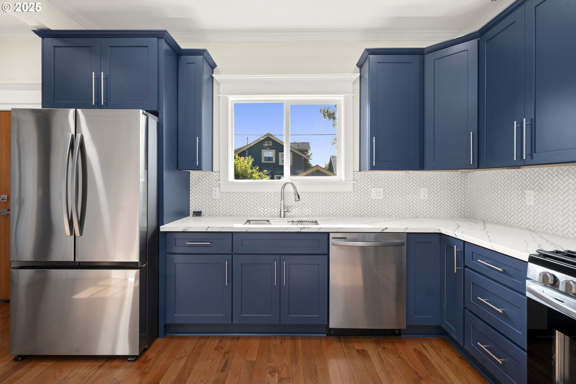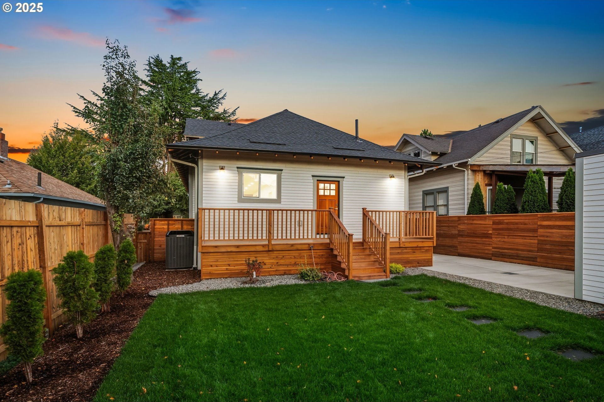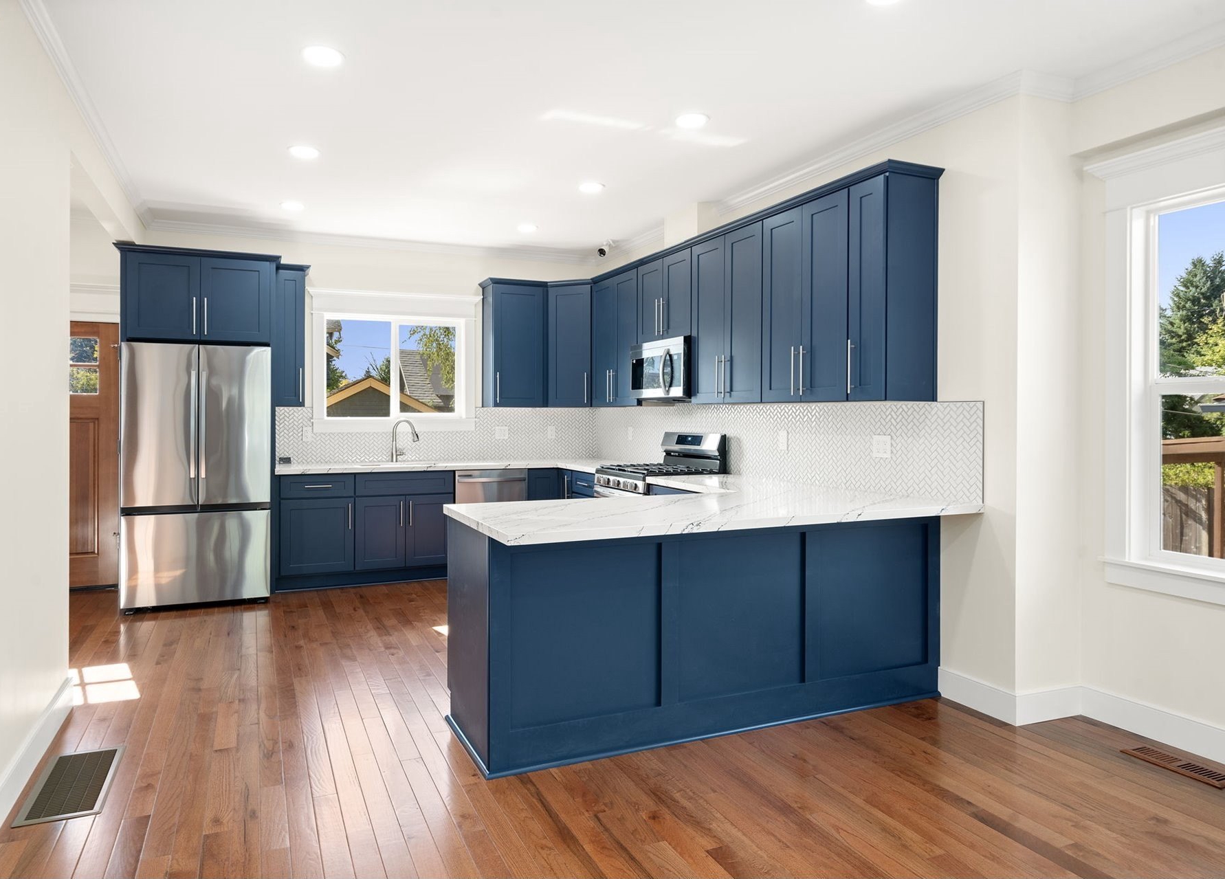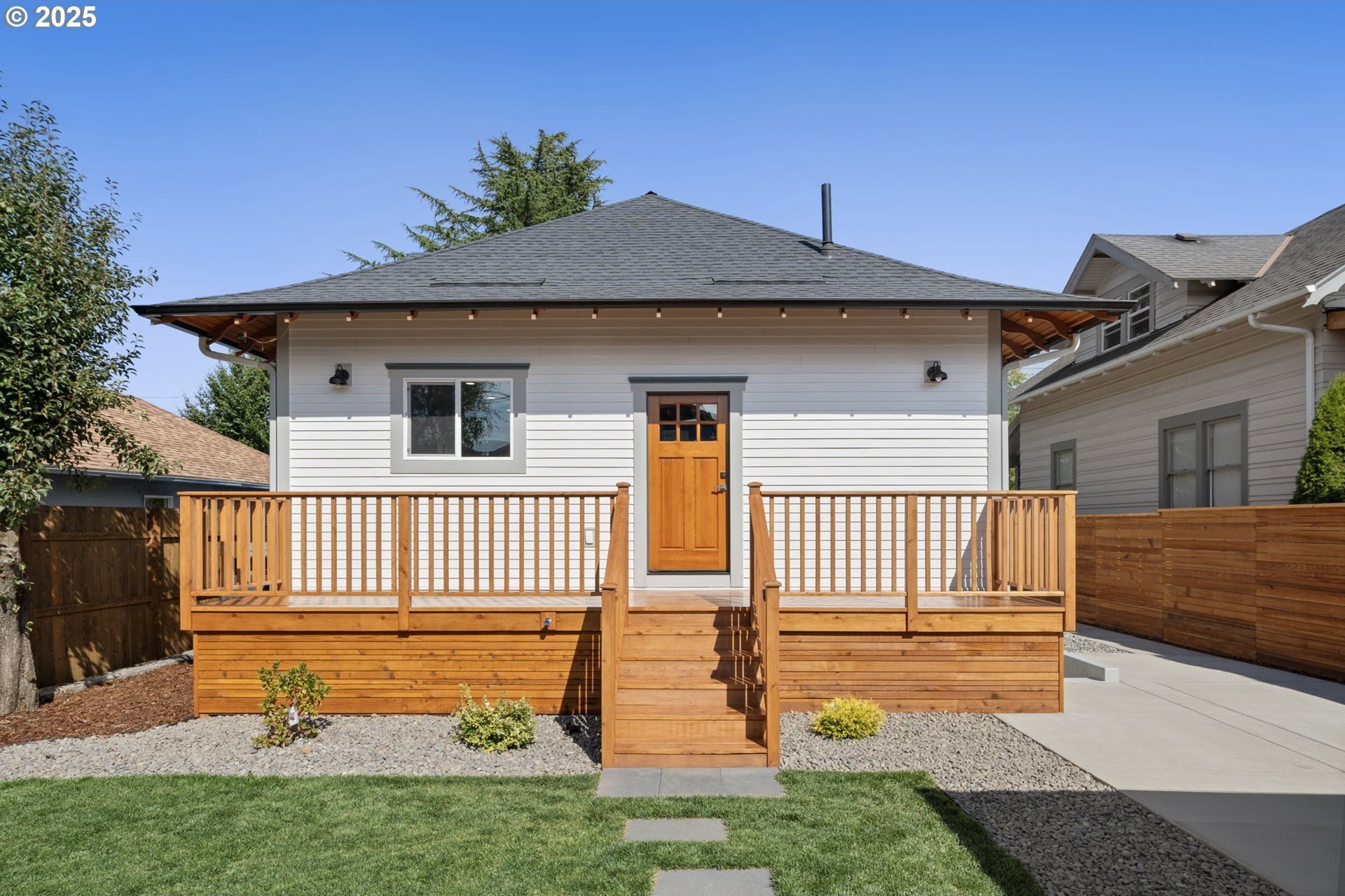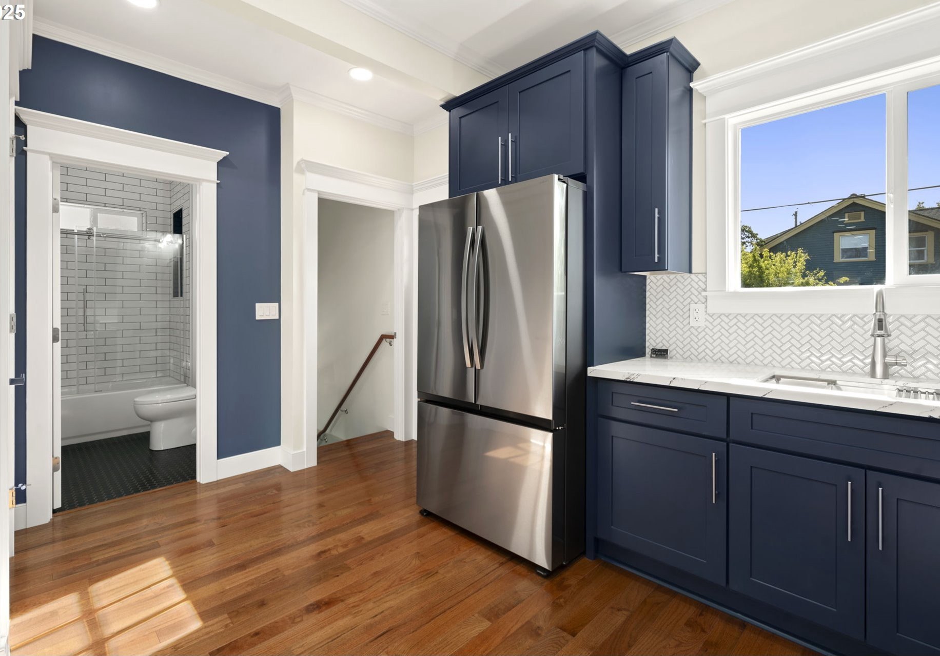 Do you love historical architecture but dread the snowball of repairs it can entail? Search no further. This charming 1916-built Craftsman home, situated in Portland's vibrant Alberta Arts neighborhood, has been extensively and strategically remodeled to provide all the modern comforts without compromising its architectural roots. A new roof, sewer lateral line, foundation and structural reinforcements, as well as updated electrical, plumbing, and HVAC systems, account for only a fraction of the massive scope of work that leaves nothing untouched. This encompasses every essential and non-essential interior and exterior system, performed with a design and building methodology that is deeply aware of the site’s macro and micro tectonics while prioritizing exceptional craftsmanship. This yields a luxurious, modern, and seamless living experience, characterized by a cohesive architectural blend of modern and historically congruent elements. Large open spaces feature a modern color palette in the millwork, walls, tiles, and carefully chosen quartz countertops that complement the cozy hardwood floors and stain-grade millwork. In the basement, there are no partition walls—just a large open space with durable, low-maintenance flooring that combines functionality and style. On the second floor, a spacious master bedroom is equipped with a large, beautifully designed bathroom and closet with custom cabinetry. All three levels are enveloped by abundant recessed lighting, delivering a bright, contemporary ambiance. Moving outside, we observe a continuation of the same theme with different components. A similar color palette on the brand-new cement lap siding harmoniously complements the hand-carved, stained rafter tails adorning the entire structure’s perimeter. In the landscaping, we see a low-maintenance but visually appealing blend of aggregates, vegetation, and hardscaping, contrasting with the freshly poured concrete driveway. [Home Energy Score = 4. HES Report at https://rpt.greenbuildingregistry.com/hes/OR10202327]