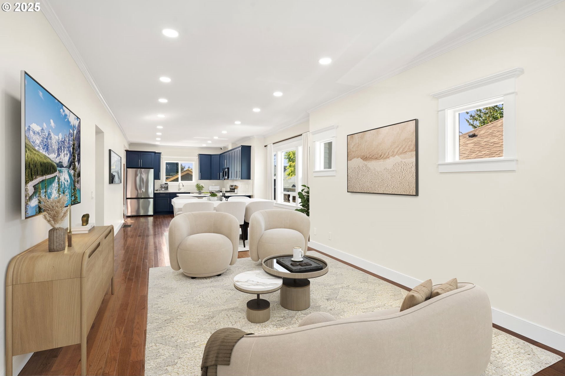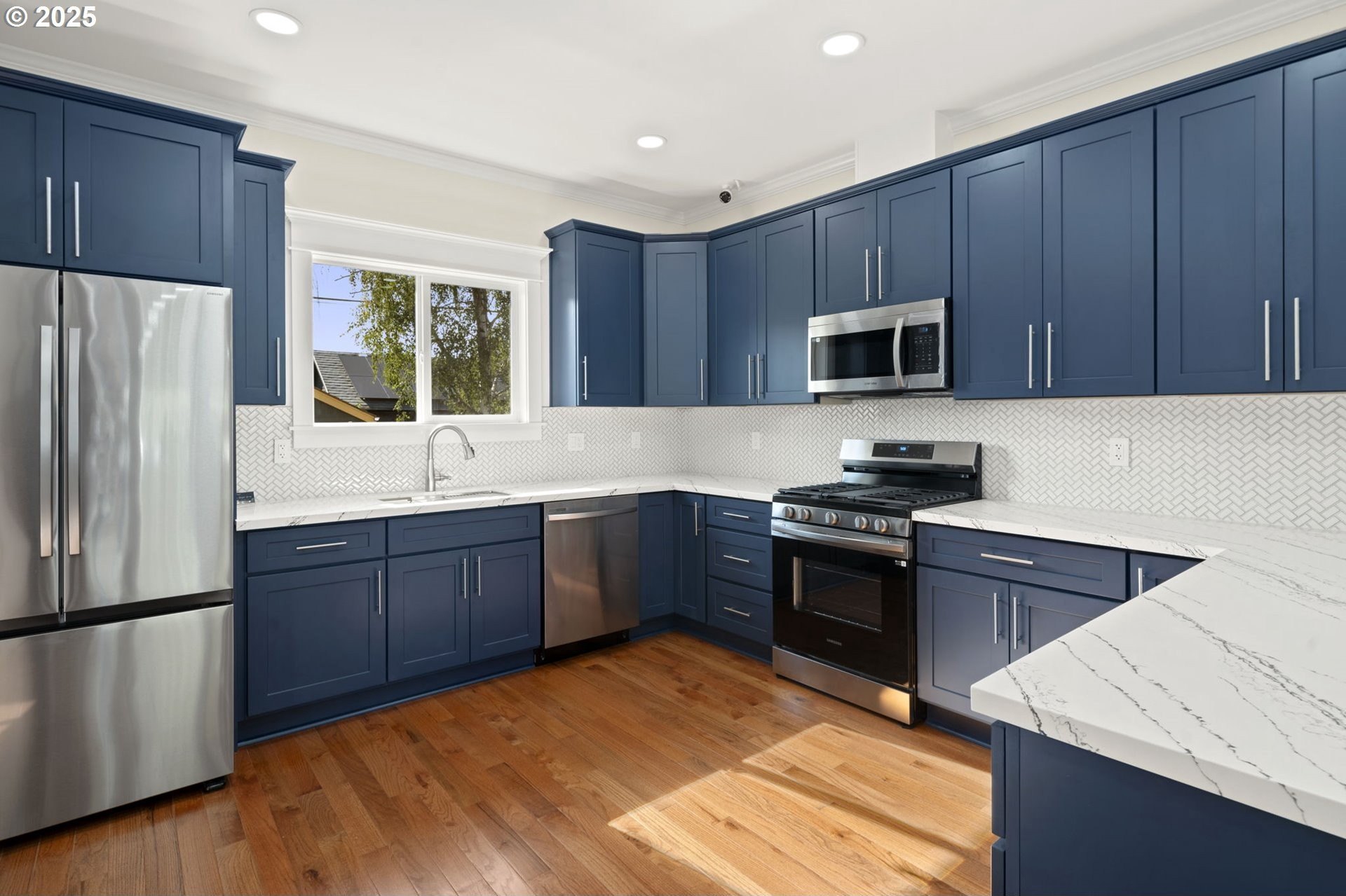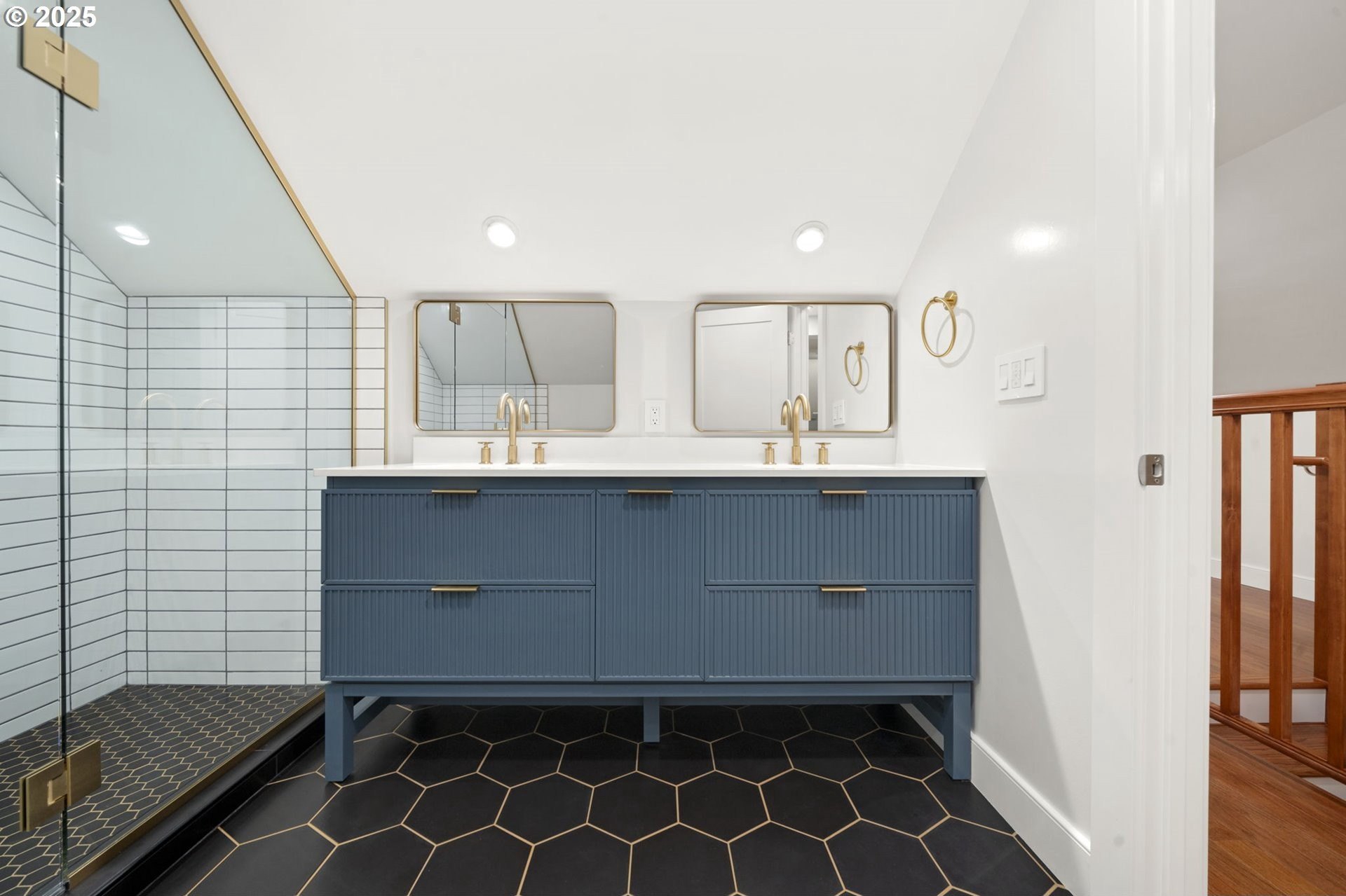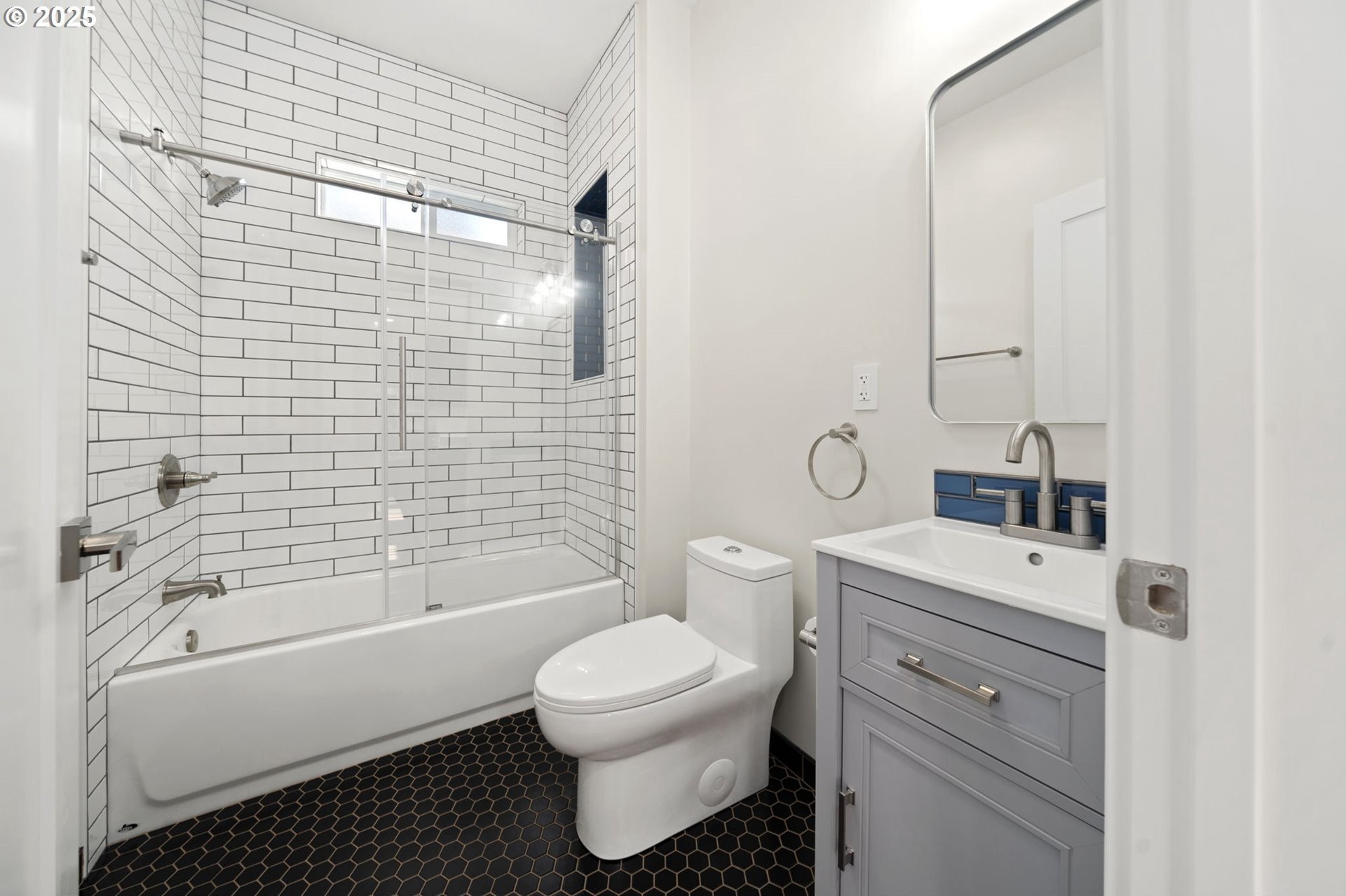 Do you love historical architecture but dread the snowball of repairs it can entail? Search no further. This charming 1916-built Craftsman home, situated in Portland's vibrant Alberta Arts neighborhood, has been extensively and strategically remodeled to provide all the modern comforts without compromising its architectural roots. A new roof, sewer lateral line, foundation and structural reinforcements, as well as updated electrical, plumbing, and HVAC systems, account for only a fraction of the massive scope of work that leaves nothing untouched. This encompasses every essential and non-essential interior and exterior system, performed with a design and building methodology that is deeply aware of the site’s macro and micro tectonics while prioritizing exceptional craftsmanship. This yields a luxurious, modern, and seamless living experience, characterized by a cohesive architectural blend of modern and historically congruent elements. Large open spaces feature a modern color palette in the millwork, walls, tiles, and carefully chosen quartz countertops that complement the cozy hardwood floors and stain-grade millwork. In the basement, there are no partition walls—just a large open space with durable, low-maintenance flooring that combines functionality and style. On the second floor, a spacious master bedroom is equipped with a large, beautifully designed bathroom and closet with custom cabinetry. All three levels are enveloped by abundant recessed lighting, delivering a bright, contemporary ambiance. Moving outside, we observe a continuation of the same theme with different components. A similar color palette on the brand-new cement lap siding harmoniously complements the hand-carved, stained rafter tails adorning the entire structure’s perimeter. In the landscaping, we see a low-maintenance but visually appealing blend of aggregates, vegetation, and hardscaping, contrasting with the freshly poured concrete driveway. [Home Energy Score = 4. HES Report at https://rpt.greenbuildingregistry.com/hes/OR10202327]