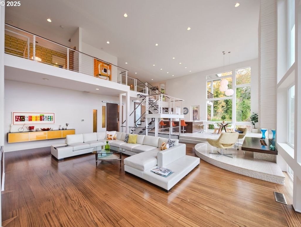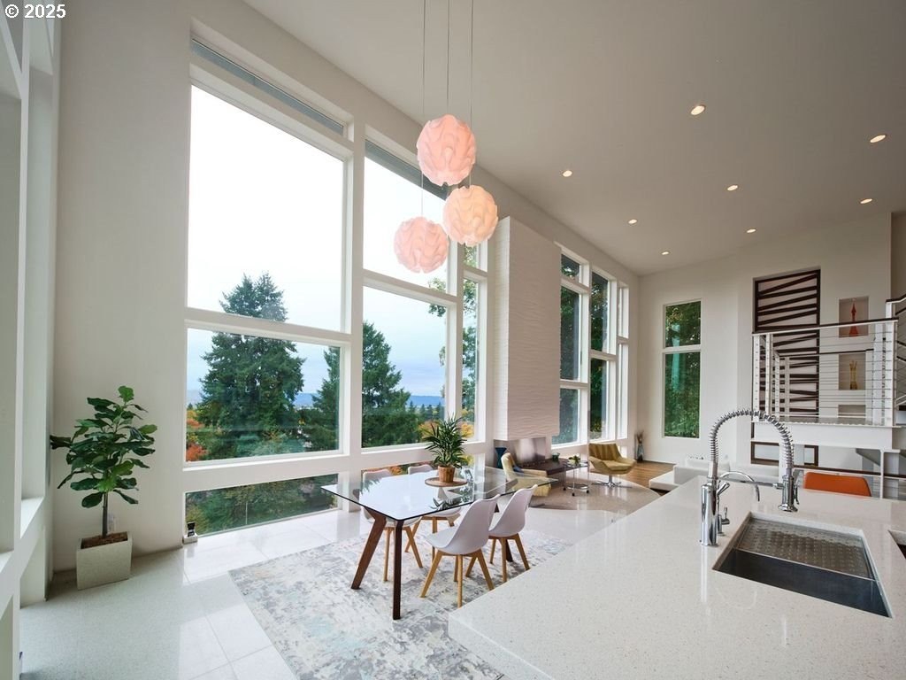 Perched high in the Vancouver Heights, this timeless modern home captures the best of Northwest living. From the moment you walk in, the views take your breath away—stretching across the Columbia River to the sparkling lights of Portland. The open kitchen and living spaces flow effortlessly, filled with natural light that pours through walls of windows and dramatic ceilings. Every detail has been thoughtfully designed, from the elegant staircase with its sleek built-in bar to the mid-century modern touches that give this home its character. The owner’s suite feels like a retreat, offering both luxury and tranquility. Step outside to your private oasis—perfect for quiet mornings, sunset gatherings, or watching the Christmas ships drift by in December. Sold fully furnished and beautifully decorated, this home is turnkey and move-in ready. Immaculate, stylish, and unforgettable.