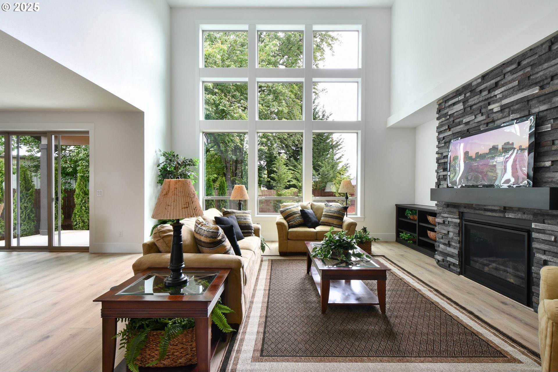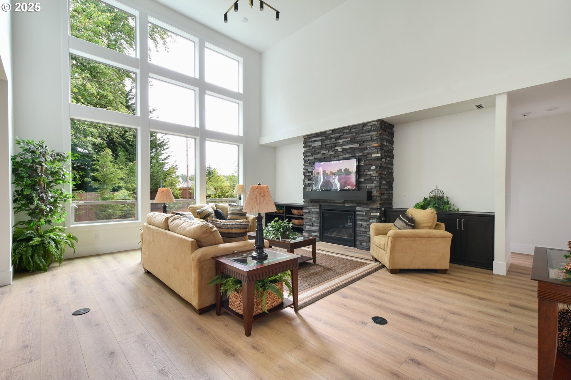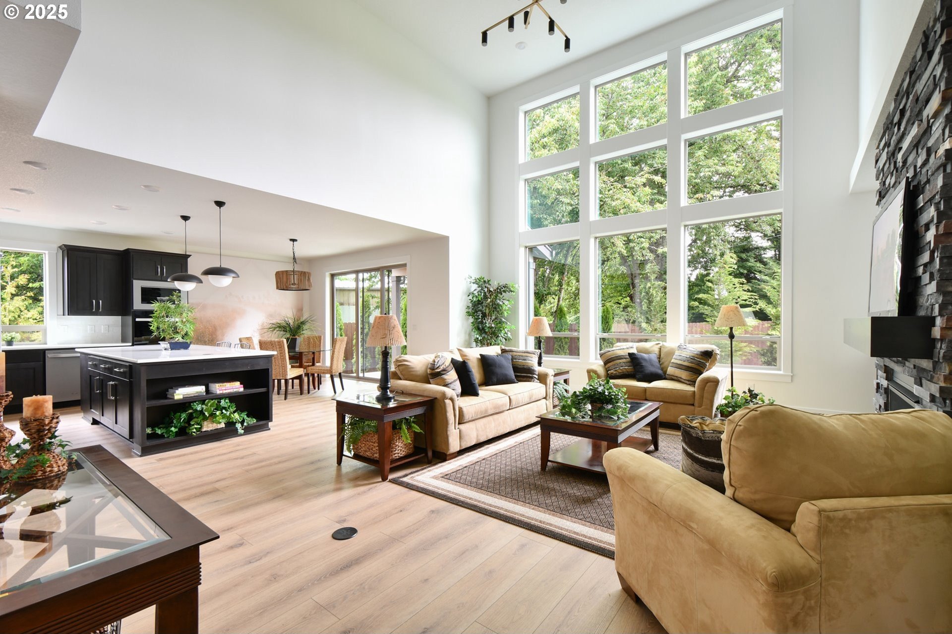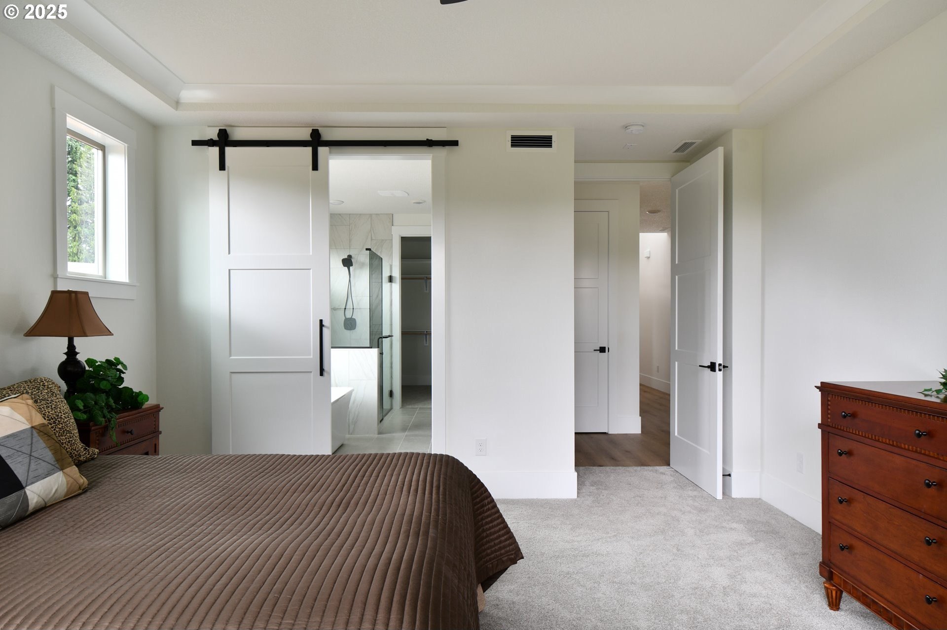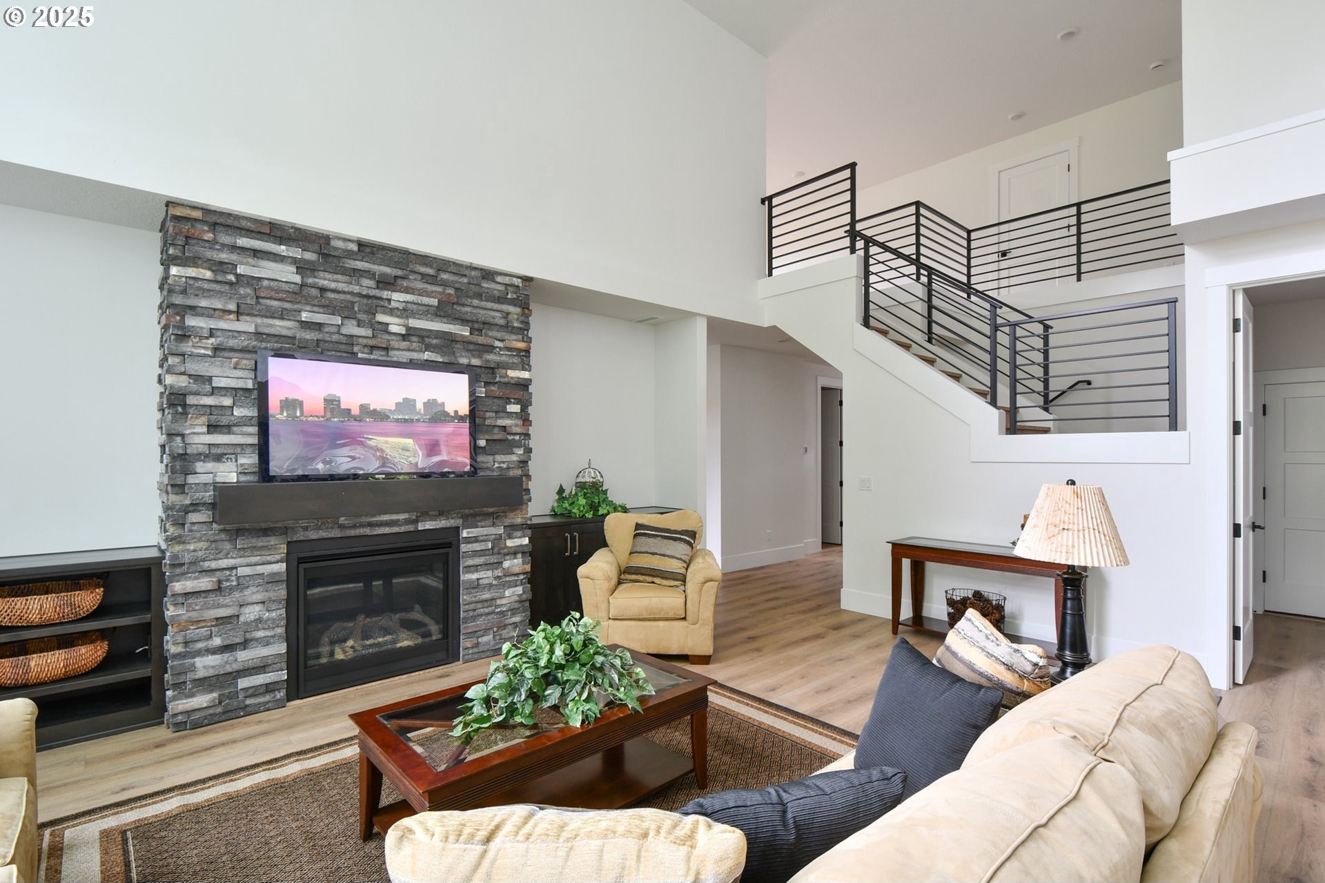 STUNNING new construction in the prestigious gated community, The Crossing at Pleasant Valley! Impressive from the moment you arrive, this spacious 4-bedroom, 3.5-bath, 2,847 Sq Ft home blends luxurious design with exceptional functionality. From the foyer, you will be instantly captivated by the breathtaking great room, where soaring two-story ceilings, a dramatic wall of windows, and a floor-to-ceiling stacked stone fireplace with custom built-ins create a striking architectural centerpiece. The gourmet kitchen is a true showpiece, featuring slab quartz countertops, rich shaker-style cabinetry, a large center island with eating bar, oversized walk-in pantry, and high-end stainless-steel appliances - all included. Thoughtful upgrades such as chic pendant lighting and soft-close cabinetry with integrated lighting enhance the home’s refined feel. The dining area includes expansive glass sliders to a covered patio, seamlessly connecting indoor and outdoor living. The main-level owner’s suite offers a private retreat with near floor-to-ceiling windows, tray ceiling, and barn doors leading to a luxurious spa-inspired ensuite complete with dual sinks, soaking tub, walk-in shower, and a huge custom closet. A second main-level suite with its own private bath provides ideal guest quarters or multi-generational flexibility. Gorgeous Luxury Vinyl Plank flooring extends throughout much of the open-concept main level, while plush new carpet adds warmth and comfort in the bedrooms. Upstairs, two additional bedrooms, a full bath, and a spacious bonus room offer versatile space for guests, work, or recreation. Situated on a huge lot with a large, fully fenced backyard, lush new landscaping, and full irrigation in both front and back, plus an oversized attached three-car garage – this home truly has it all! This exceptional home delivers contemporary elegance, thoughtful design, and effortless comfort in one of Pleasant Valley’s most desirable new communities. Welcome Home!