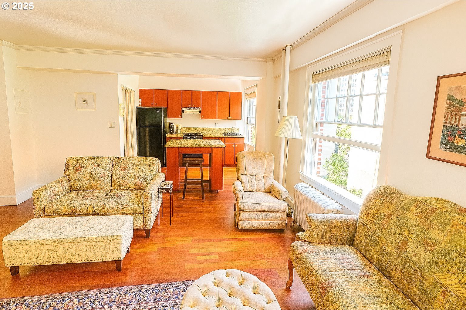 Nestled in one of Portland’s most iconic historic buildings, Unit #707 at The Roosevelt offers timeless character in the heart of the Cultural Arts District. Just steps from the Park Blocks, MAX line, the Portland Art Museum, concert halls, theaters, and vibrant downtown shops and dining, this condo puts you at the center of it all.The Roosevelt is beloved for its vintage charm, strong community feel, and unbeatable walkability. Similar units in the building have attracted homeowners and almost all units are owner-occupied seeking reliable, well-located spaces with enduring appeal. With pricing often below newer construction and HOA dues that cover most essentials, The Roosevelt offers excellent value downtown.This upper-floor 1-bedroom enjoys great light and city views to the east and west, and sits within a building known for its classic architecture and rich history. This unit presents a unique opportunity to own in one of Portland’s best-preserved addresses.