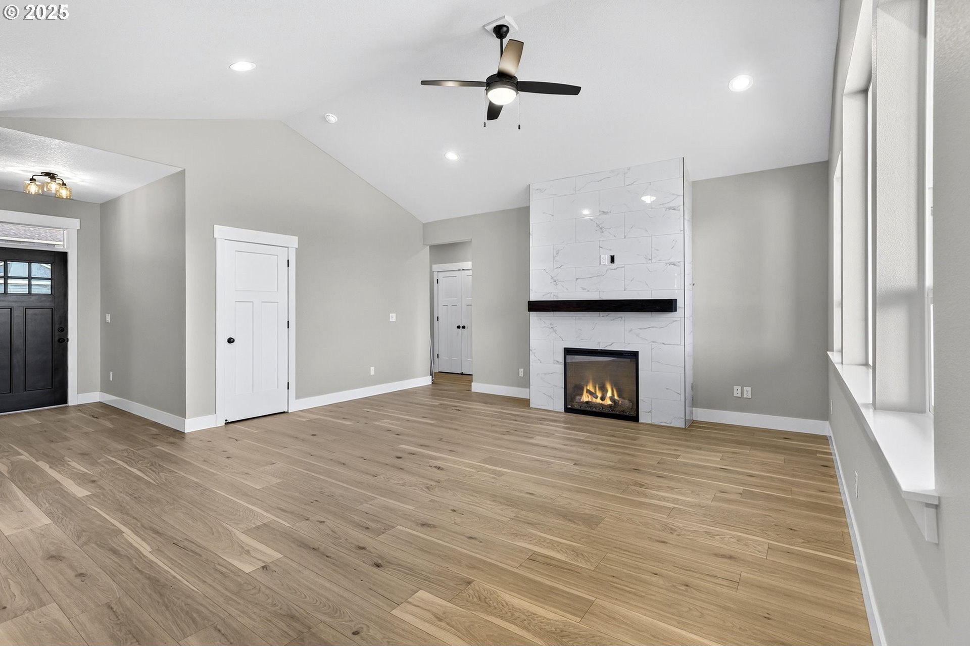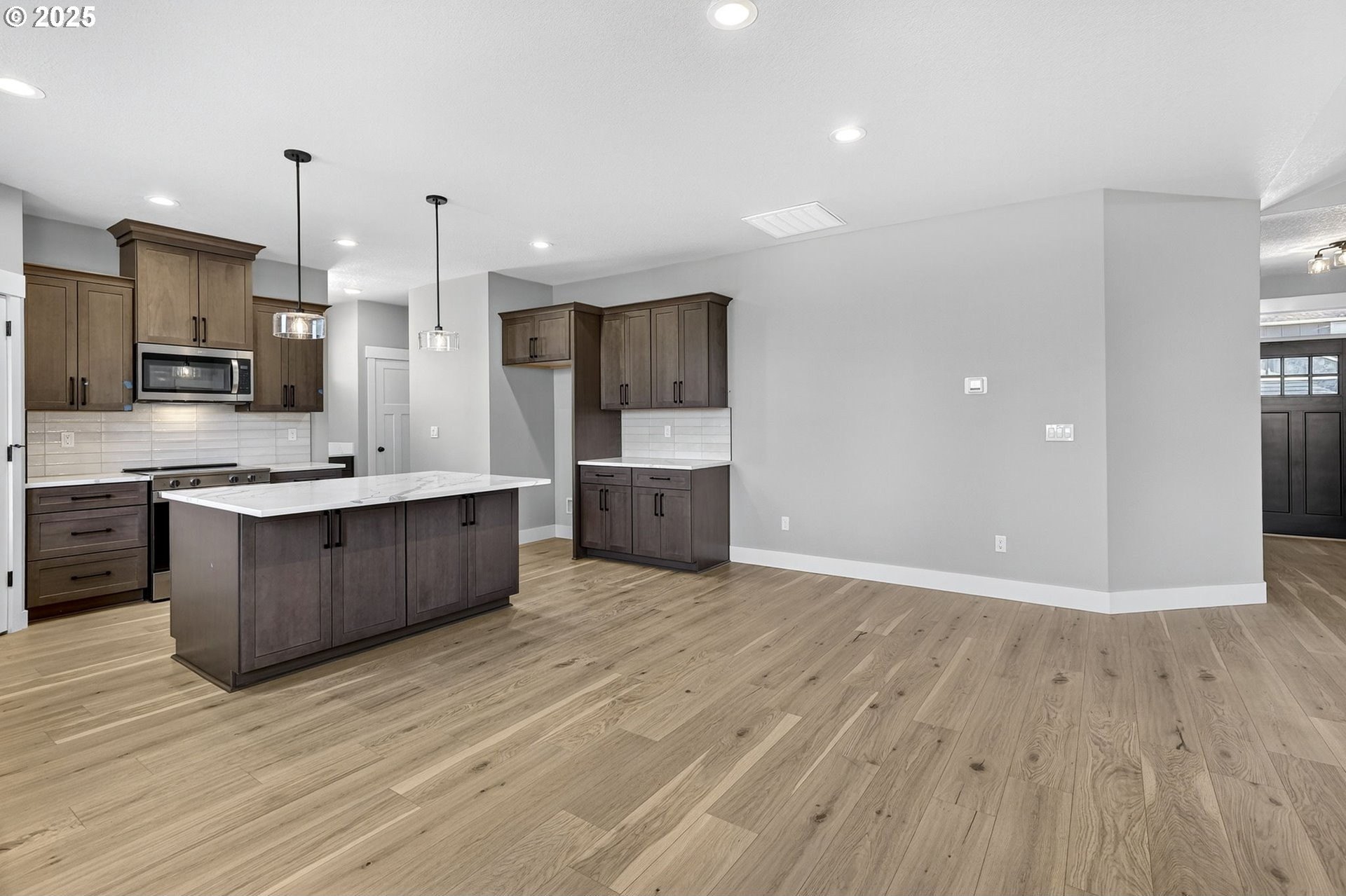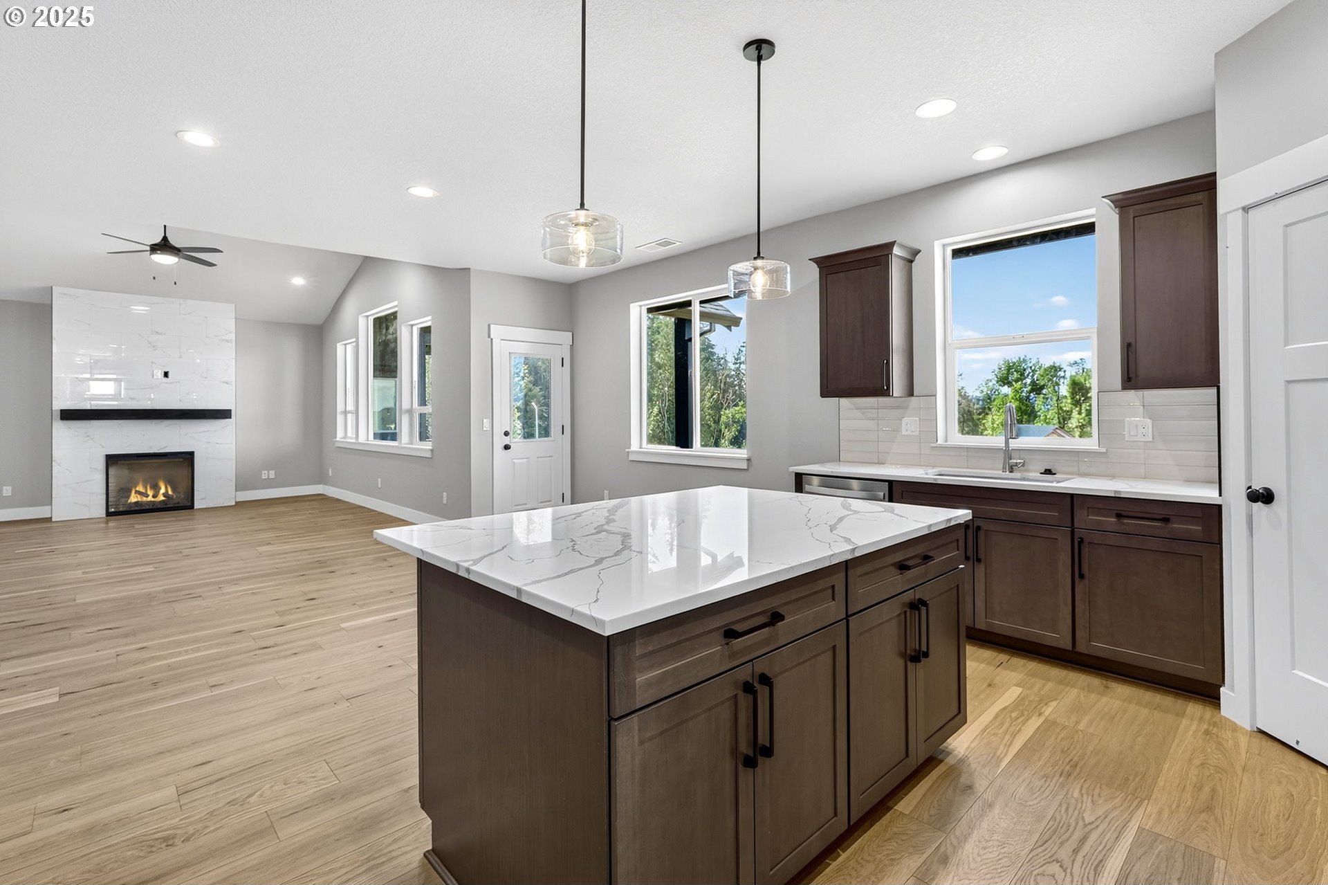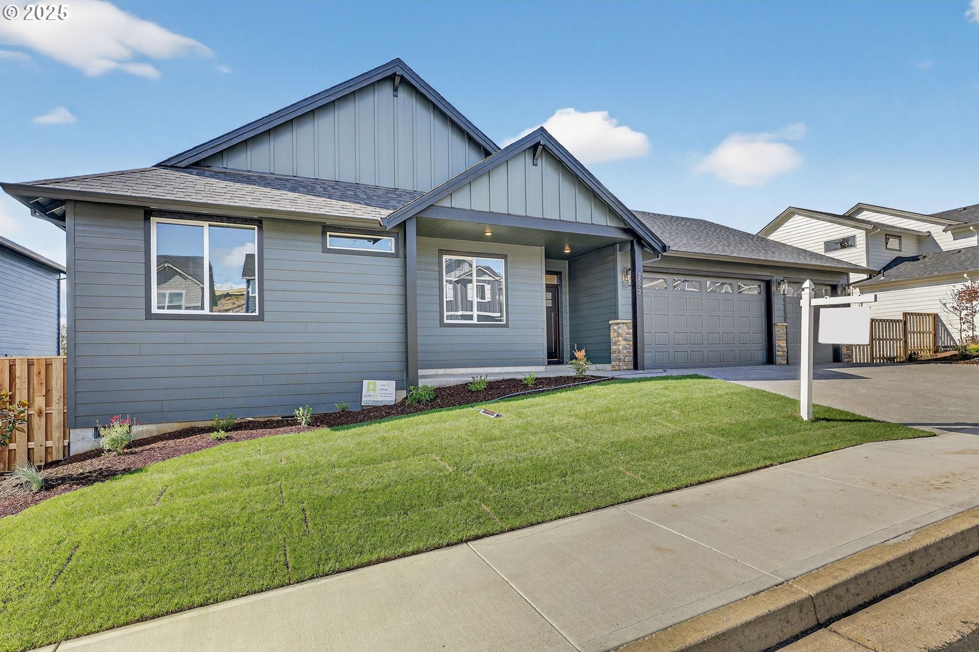 HUGE SELLER INCENTIVES! This single-level ranch home features a smart, open layout with 3 spacious bedrooms and 2 beautifully appointed bathrooms. At the center of the home, the expansive great room offers a warm and inviting atmosphere with a cozy fireplace, ideal for both everyday living and entertaining. The gorgeous kitchen is equipped with stainless steel Energy Star Whirlpool appliances, quartz countertops, a generous island, built-in microwave and dishwasher, free-standing range, and a convenient pantry. The private primary suite includes an ensuite bath with a double vanity, shower and large walk-in closet. Durable laminate flooring flows throughout the main living areas, combining style and practicality. Step outside to enjoy the covered deck and fully fenced backyard, with full front and back landscaping already completed. Located in desirable Dugan Estates—come see these stunning new homes! Refrigerator and washer/dryer not included. ATTACHED PHOTOS ARE FOR EXAMPLE PURPOSES ONLY. Visit Dugan Estates Wednesdays through Sundays 1 to 4!