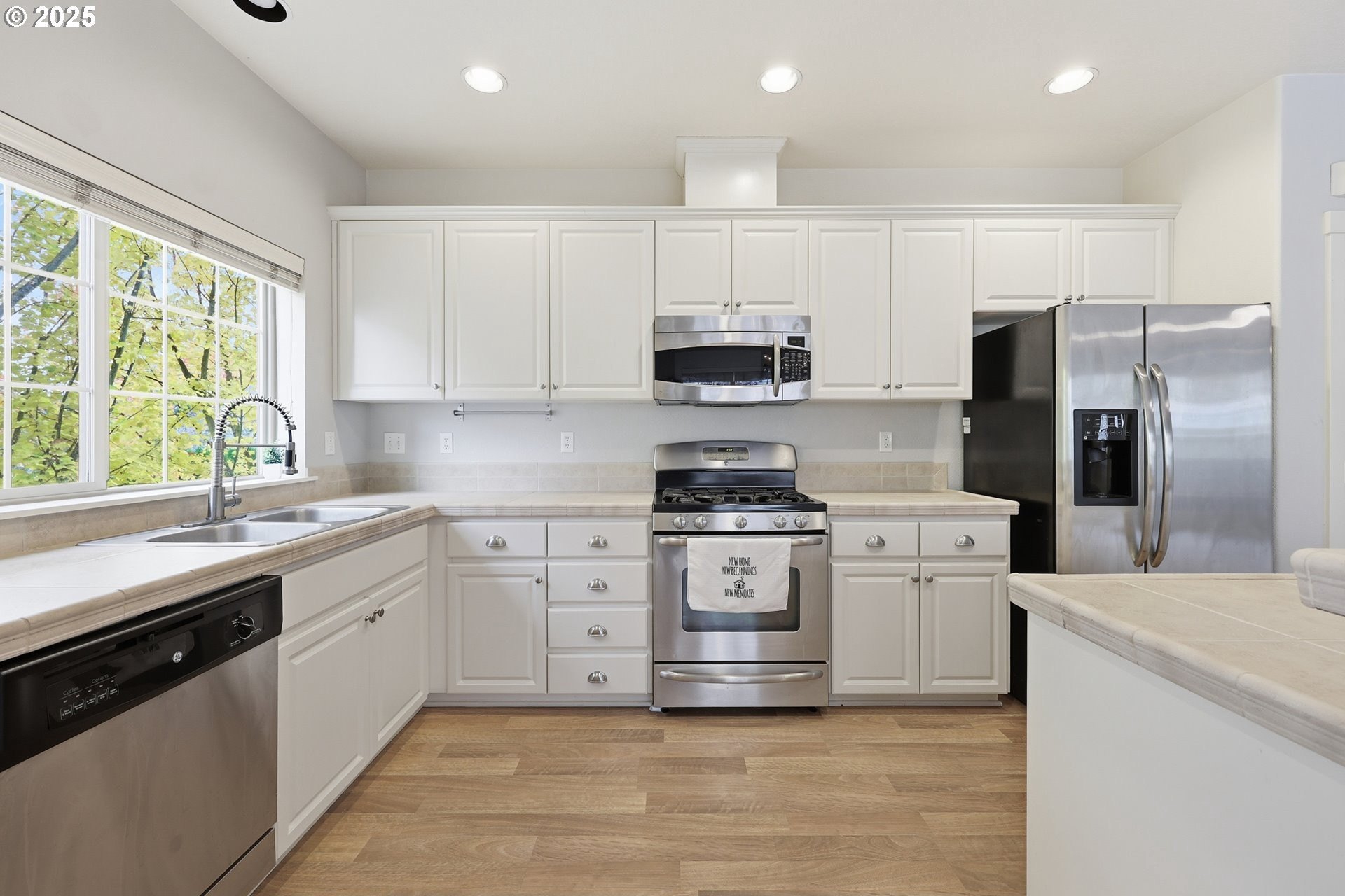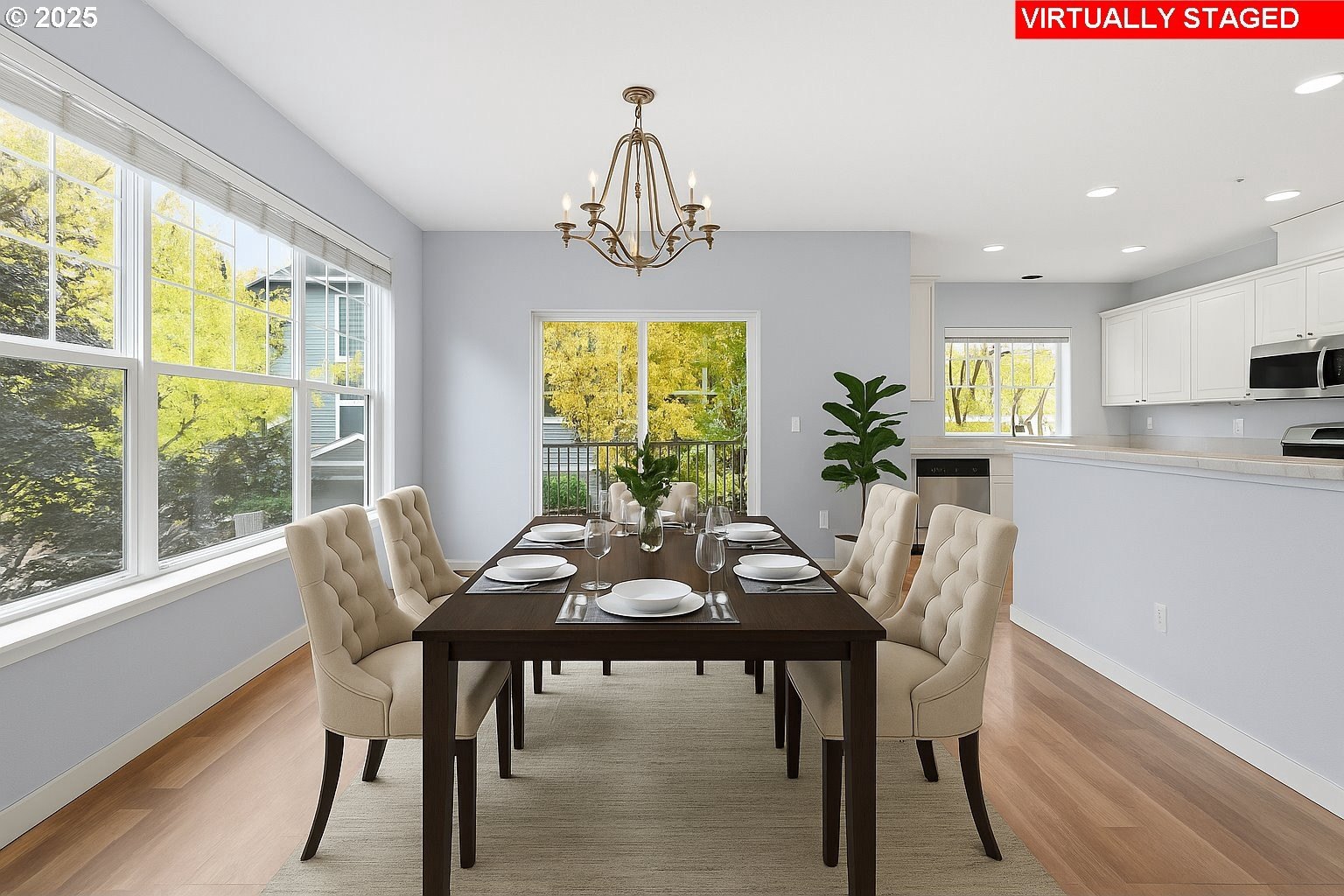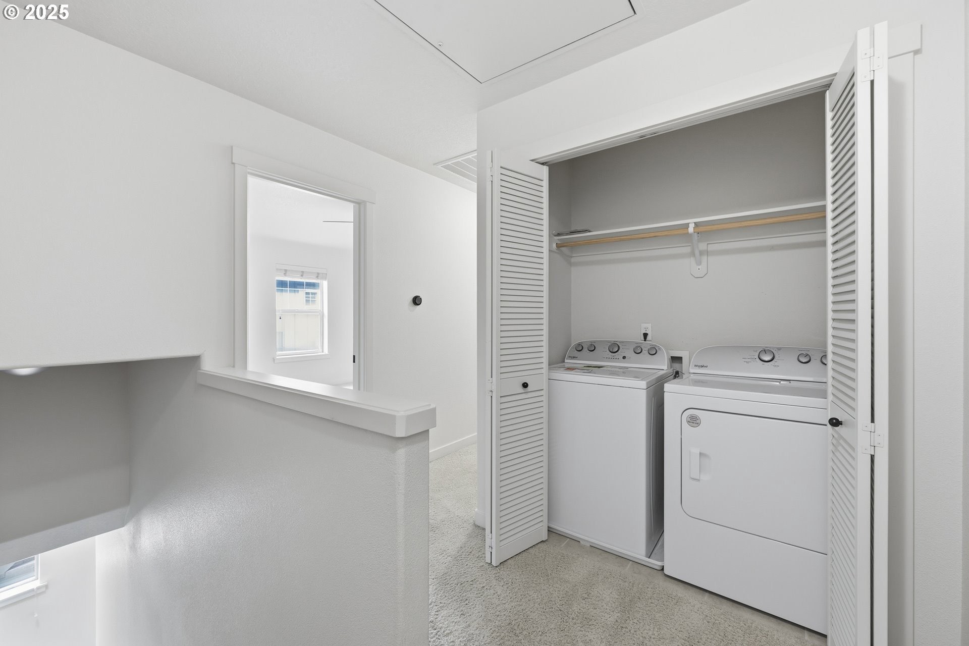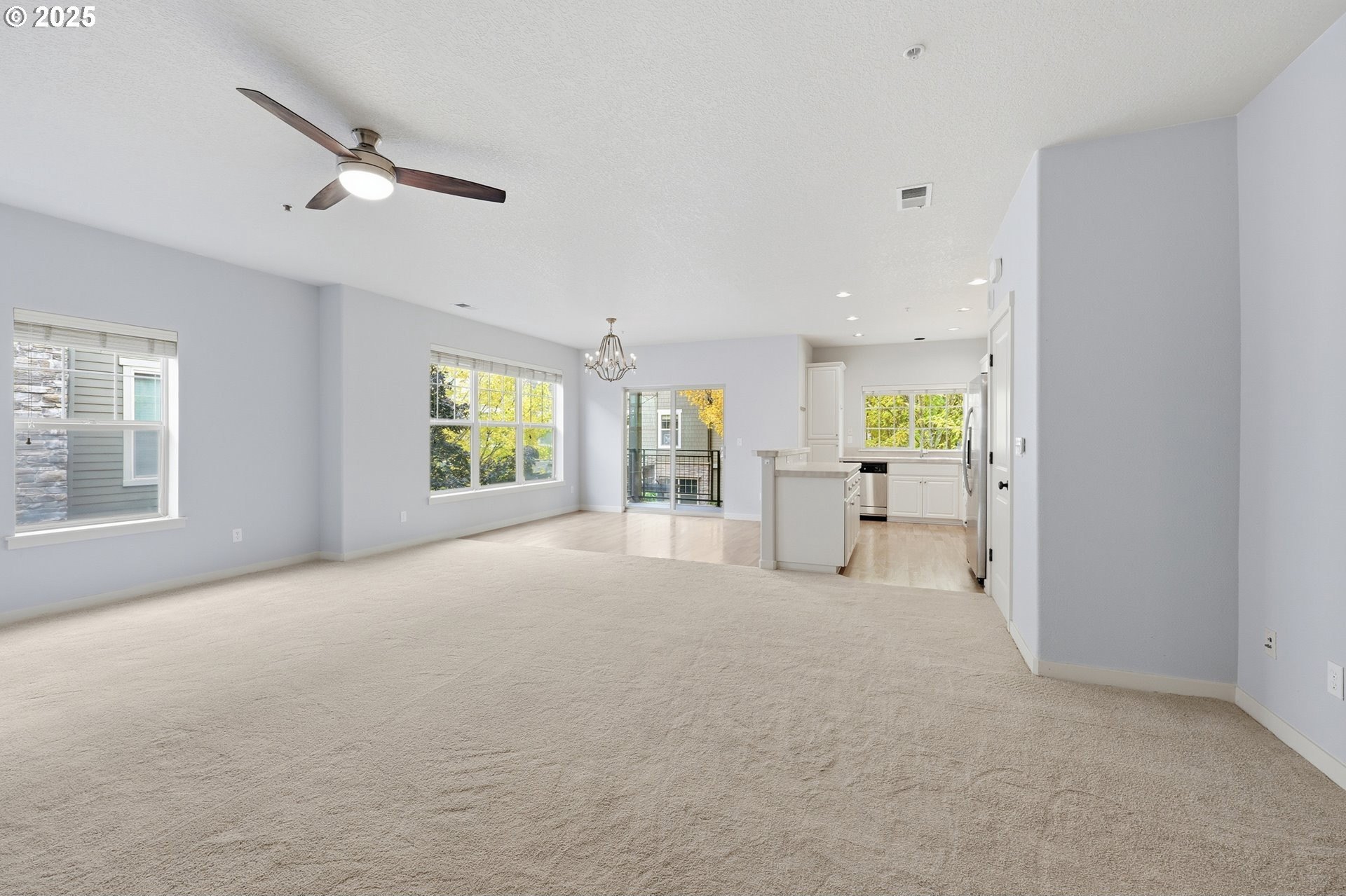 Welcome to this thoughtfully designed and well maintained 3-bedroom, 2.5-bathroom home that seamlessly blends comfort, functionality, and natural light throughout. Step into a fully equipped kitchen featuring stainless steel appliances, pull out drawers in the pantry and a wonderful open floorplan into the dining area & living room. Just off the kitchen/dining area features a balcony overlooking the greenspace across from the pool and playground. This unit is located away from the busy street, in a beautiful park like setting, close enough to the Max line; without the noise and offloading congestion. Enjoy the comfort of brand new carpet and fresh paint. This unit includes a newer washer/dryer in upstairs hallway by the bedrooms. This light & bright layout offers versatile living space with high ceilings on the main level and vaulted or high ceilings in the bedrooms. Every room comes equipped with a ceiling fan to keep cool, comfortable style throughout. A spacious 1-car garage and deeded parking spot #228 located directly across from the garage/Bld #38. The community is packed with amenities: a beautiful pool, fitness center, clubhouse with event space, and a children's play area nestled in a peaceful, park-like setting. The path directly to the MAX line that makes commuting very convenient with easy access to the city, local parks, shopping, and dinning. This home puts everything you need within easy reach. HOA includes water, sewer, garbage, internet, pool, gym, exterior upkeep, and more! No rental cap!