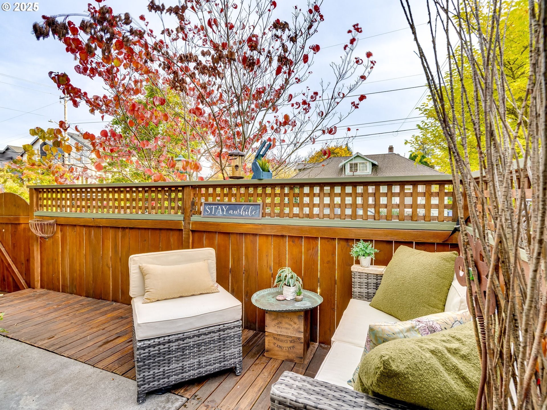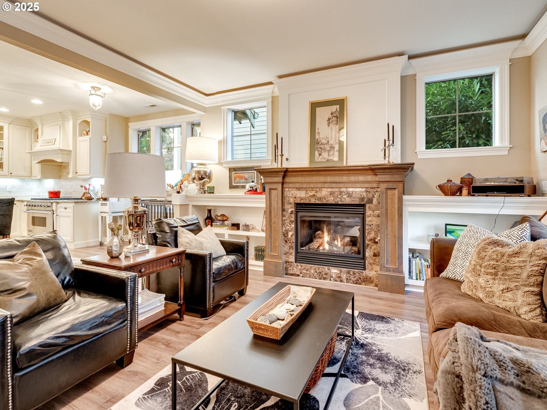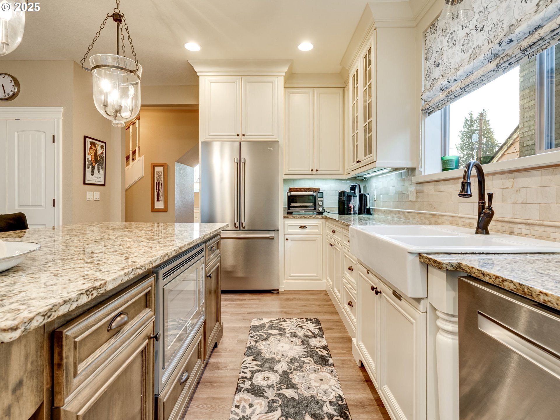 This custom-built home in Sellwood stands out w/its European style. Attention to details like dental molding, timber from the property & a copper roof make it unique. Start your day on the spacious covered front porch, perfect for morning coffee & watching the sunrise. Inside, the great room combines a bright living area & a gourmet kitchen. Natural light fills the space & the granite fireplace w/built in bookshelves adds warmth. The kitchen features a large island, granite slab counters, high-end appliances, & a pantry w/a custom wine rack. With a Viking range, Bosch dishwasher and custom range hood, you have everything you need to prepare memorable meals. The Dining Room has glass french doors, a box beam ceiling & a bay window that fills the room w/light. The main level has newly installed Luxury Vinyl Plank over the original hardwoods. The upstairs has new kid & pet proof carpet. The interior & exterior of this lovely home were painted in 2024. The second story has a large Primary Bedroom which includes an ensuite bathroom. Vaulted ceilings, Granite slab counter, double sinks,walk-in shower, soaking tub & two closets as well! You will feel like you stepped into your own hotel suite. Two additional bedrooms w/vaulted ceilings, a guest bathroom & laundry room complete the upper floor. The lower level offers a spacious guest suite or in-law apartment, complete w/a large bathroom w/a walk-in shower, a separate bedroom & roomy living area w/a kitchenette. This space is ideal for hosting holiday visitors. Energy efficiency was built into the gorgeous home. These features include: 96% AFUE Gas Forced Air Furnace, Tankless Water Heater, Blown in Fiberglass insulation & energy efficient AC Unit. The corner lot is beautifully landscaped w/an irrigation system. The backyard has a fully fenced patio & yard perfect for entertaining. The area under the front porch has been enclosed for all your gardening tools. Raised beds are included too! HES 9!! [Home Energy Score = 9. HES Report at https://rpt.greenbuildingregistry.com/hes/OR10242657]